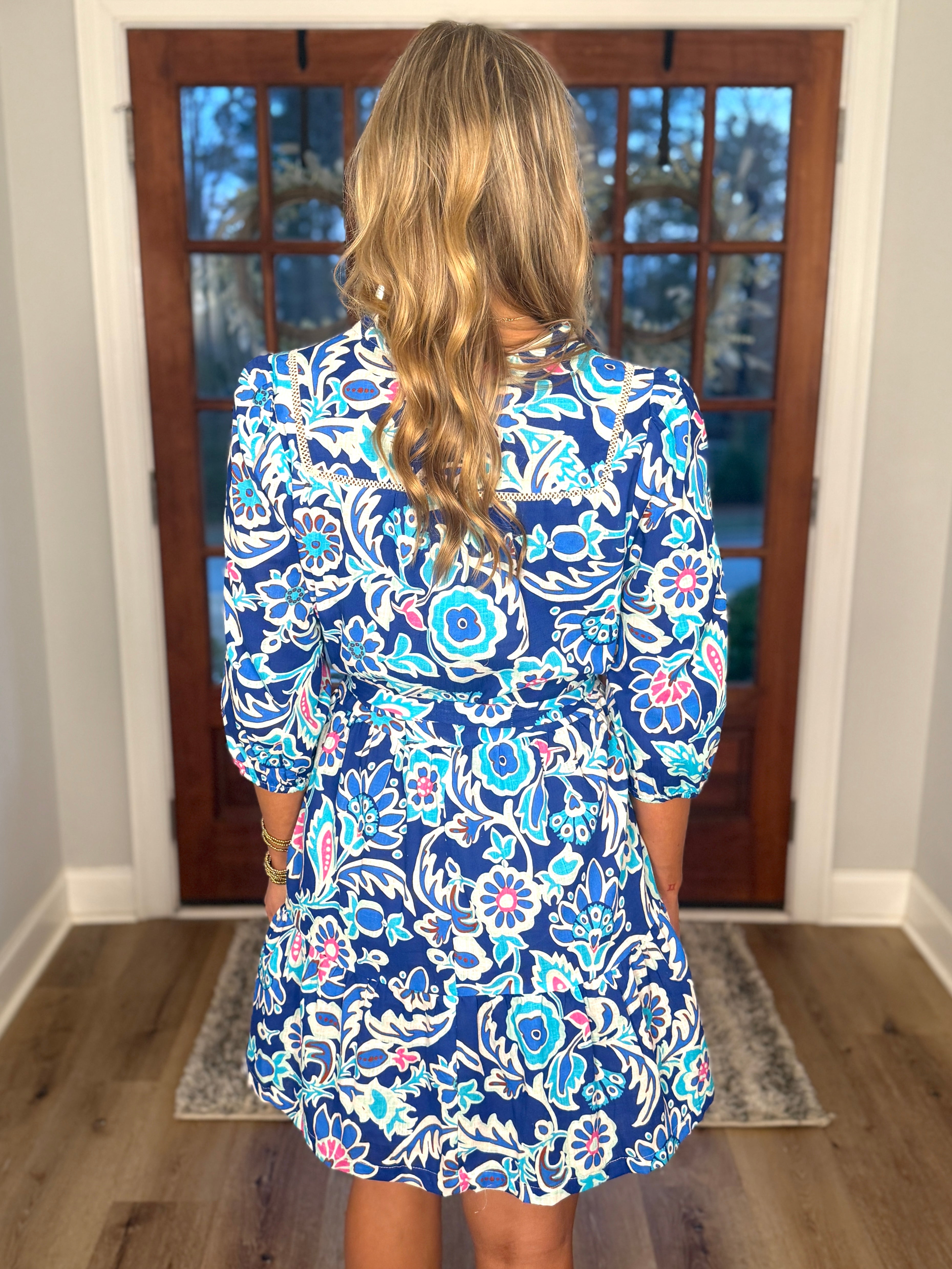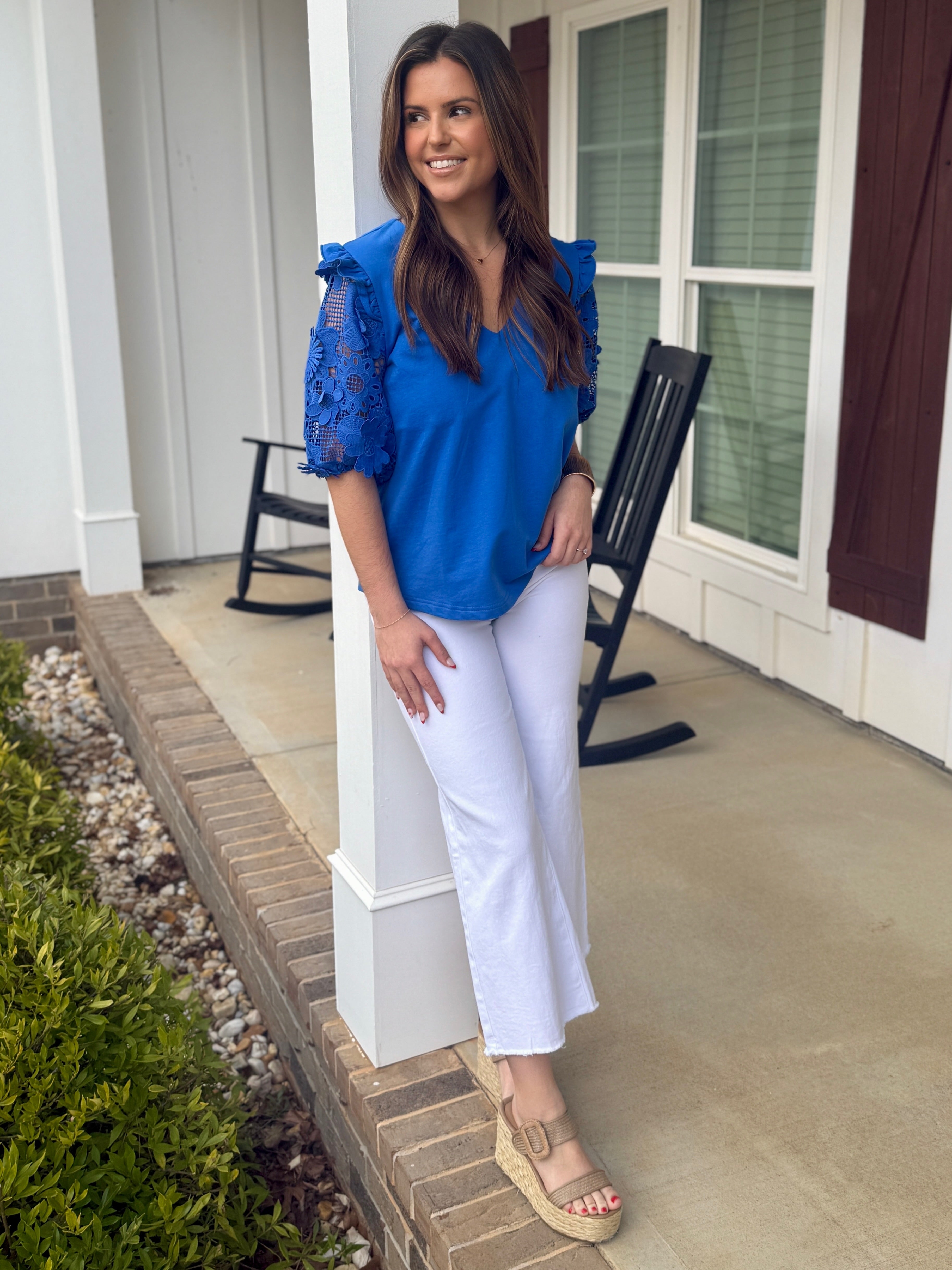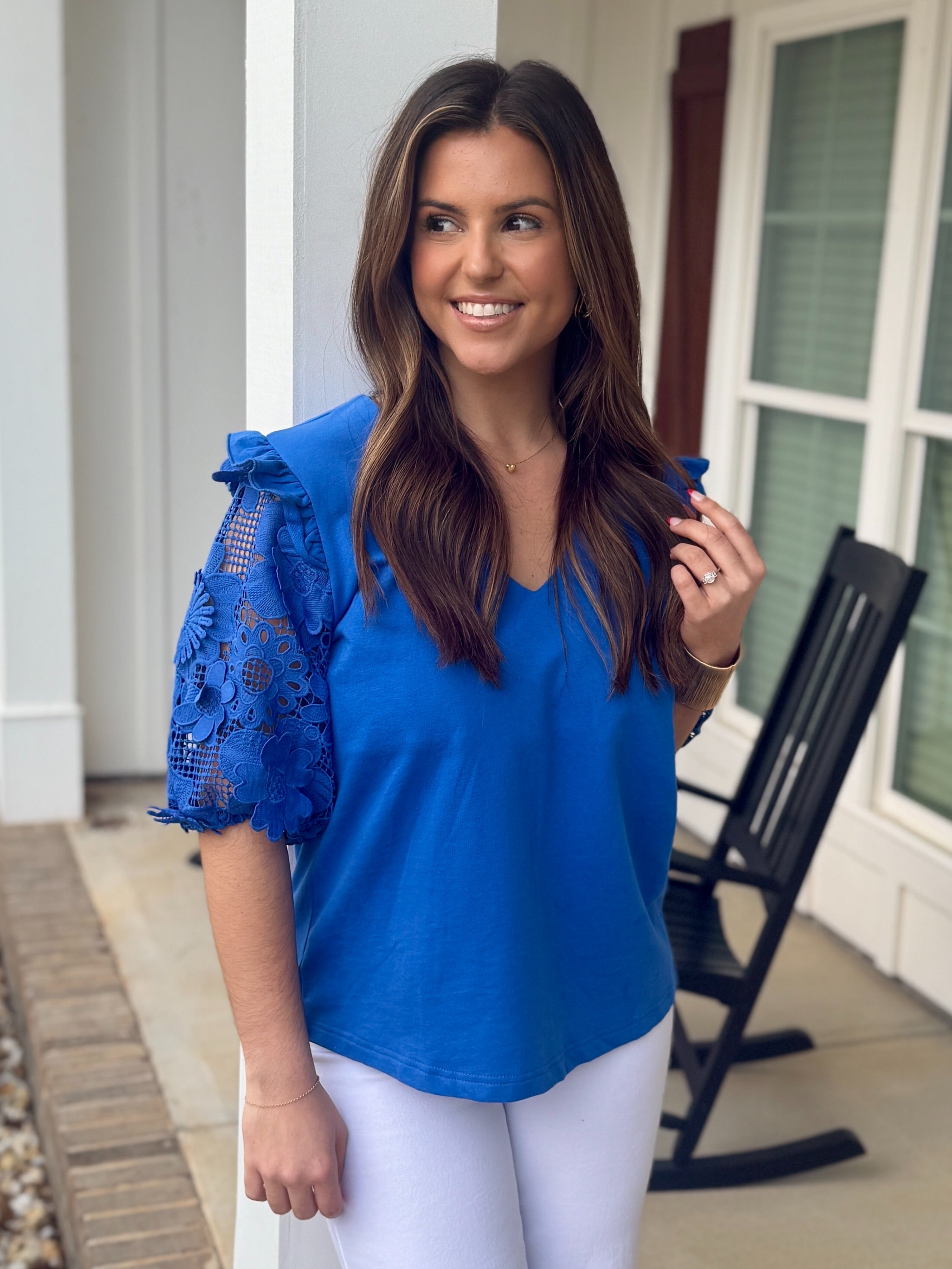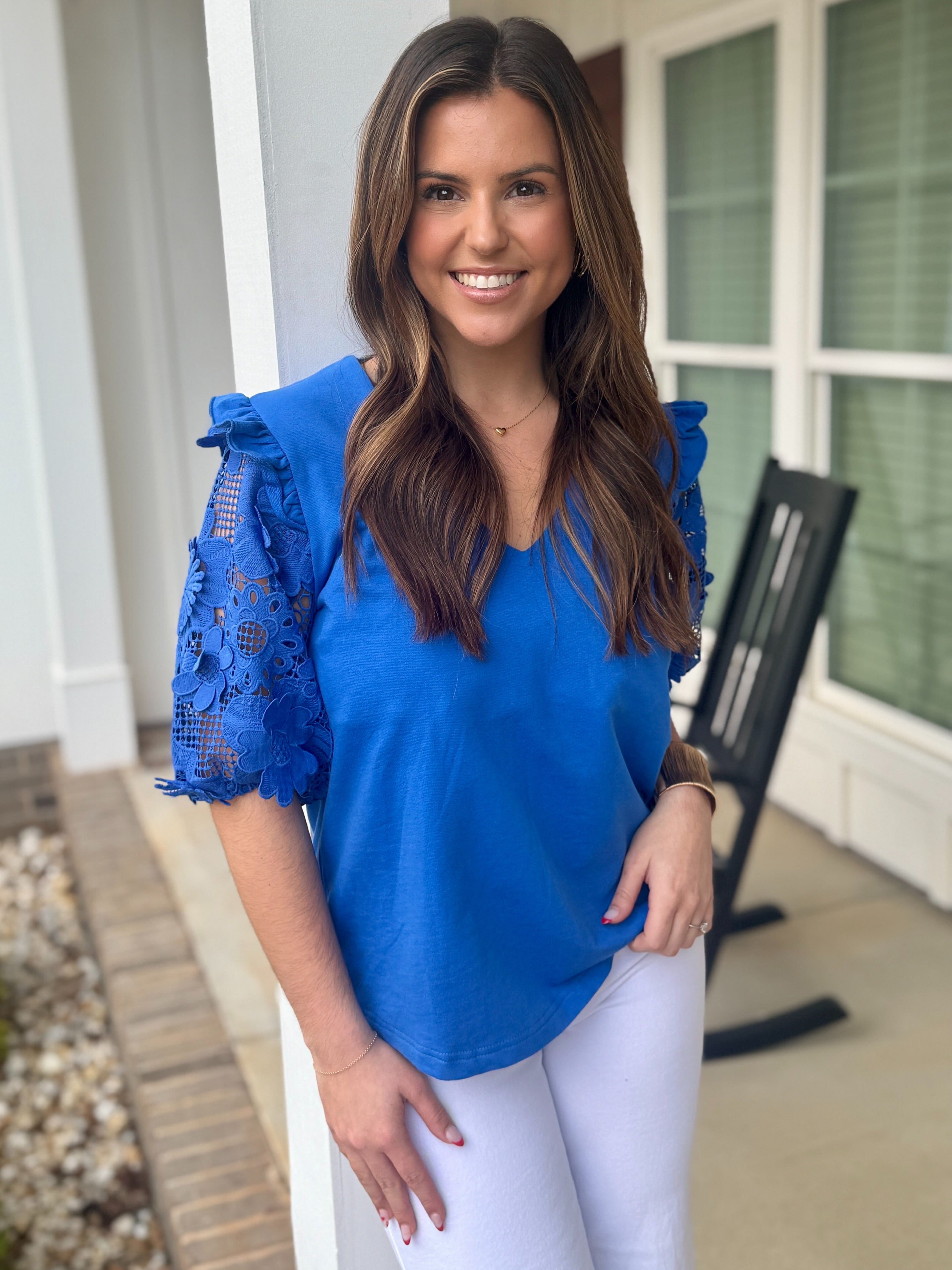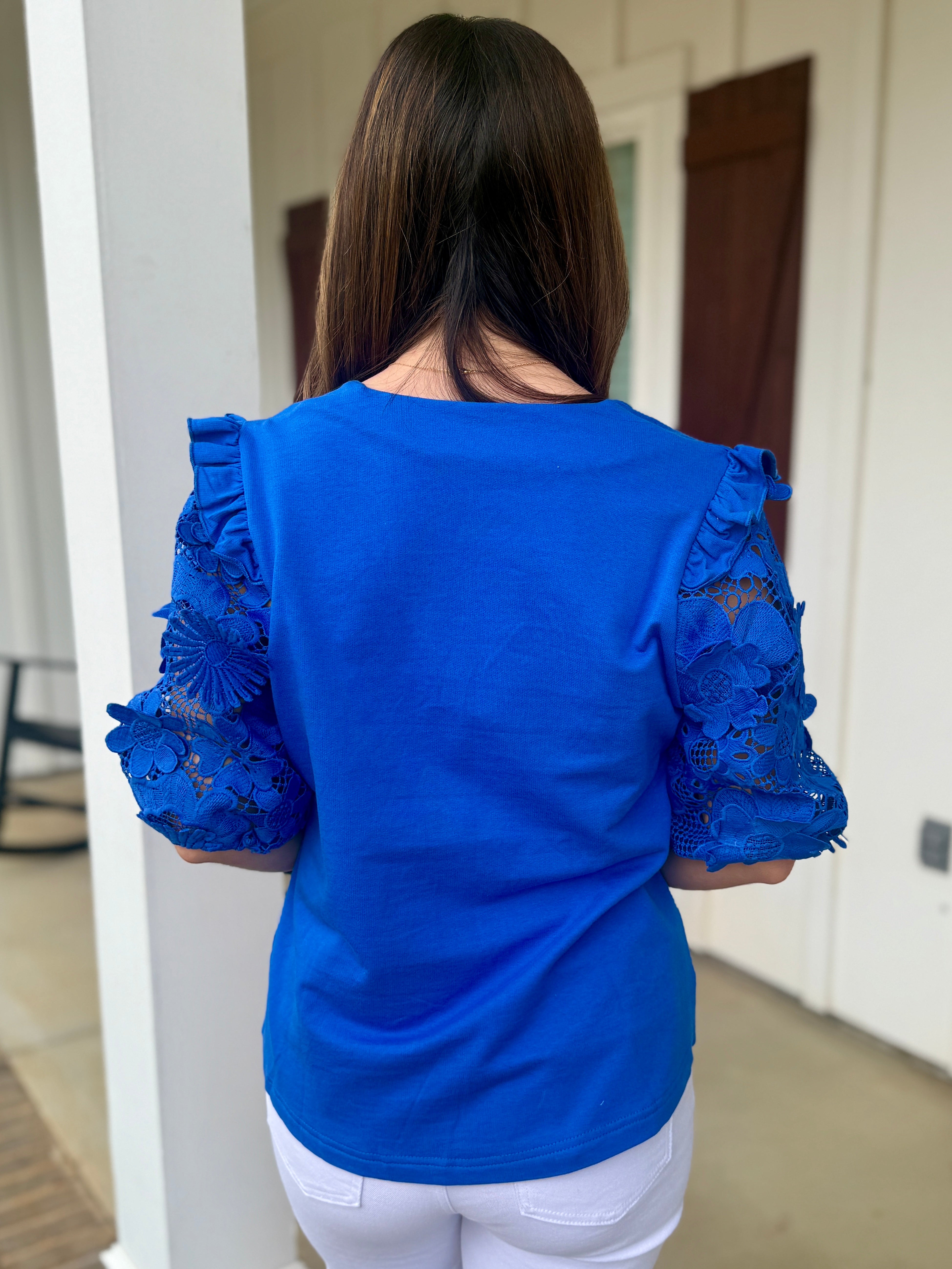 JANE Floral 3D Lace Sleeve Top (Blue)