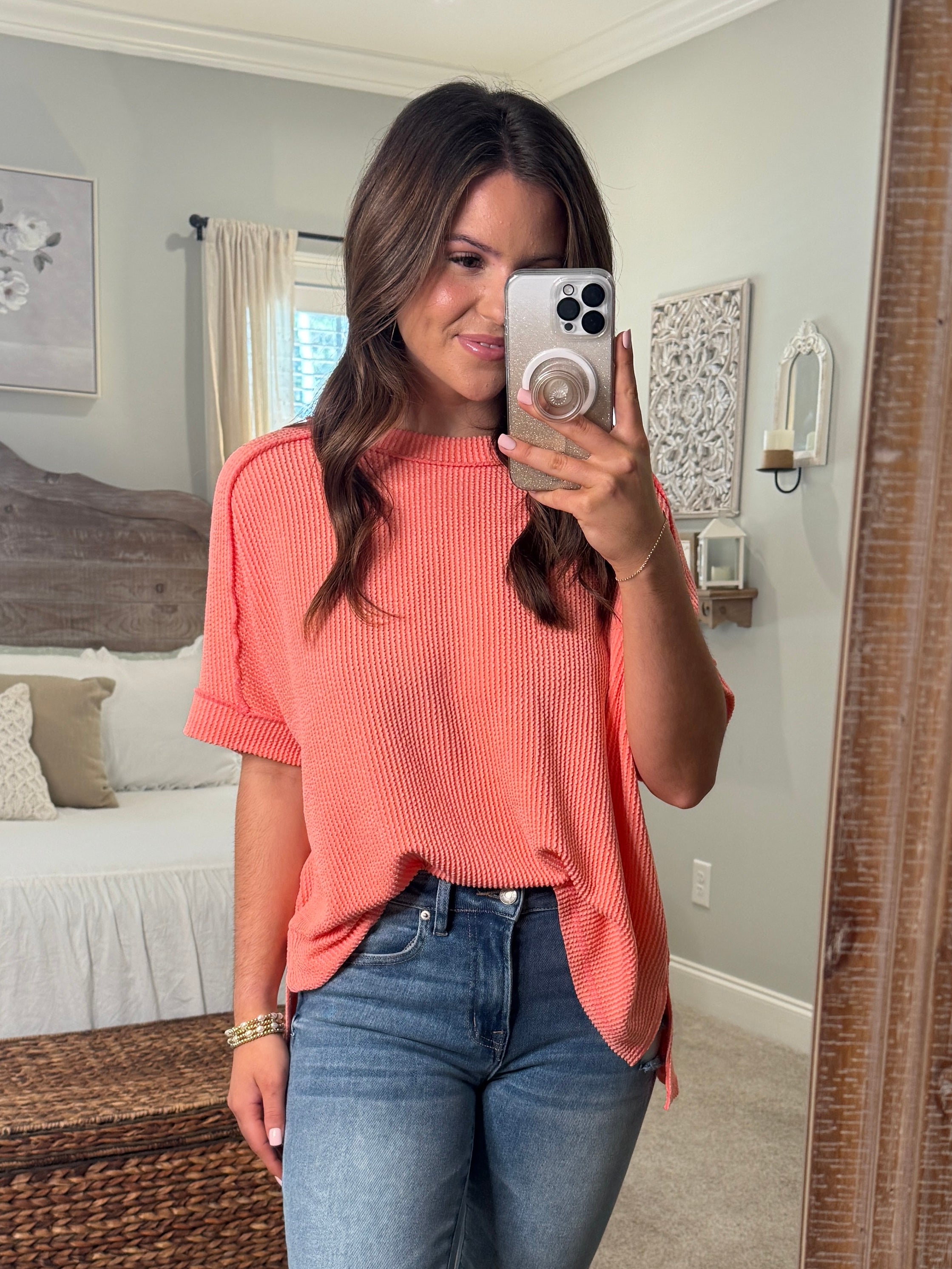 PRESLEY Ribbed Raw Edge Top (Peach)