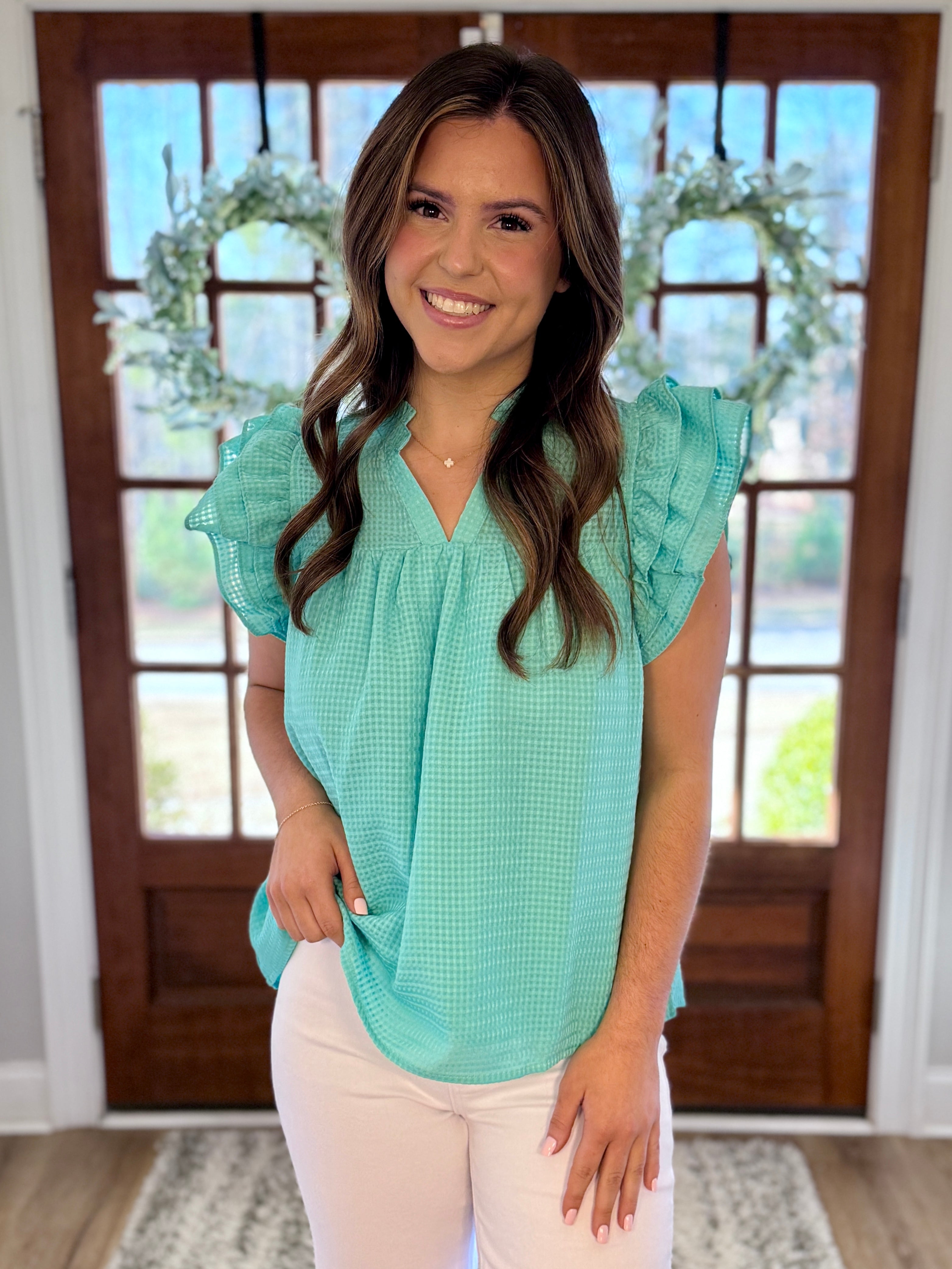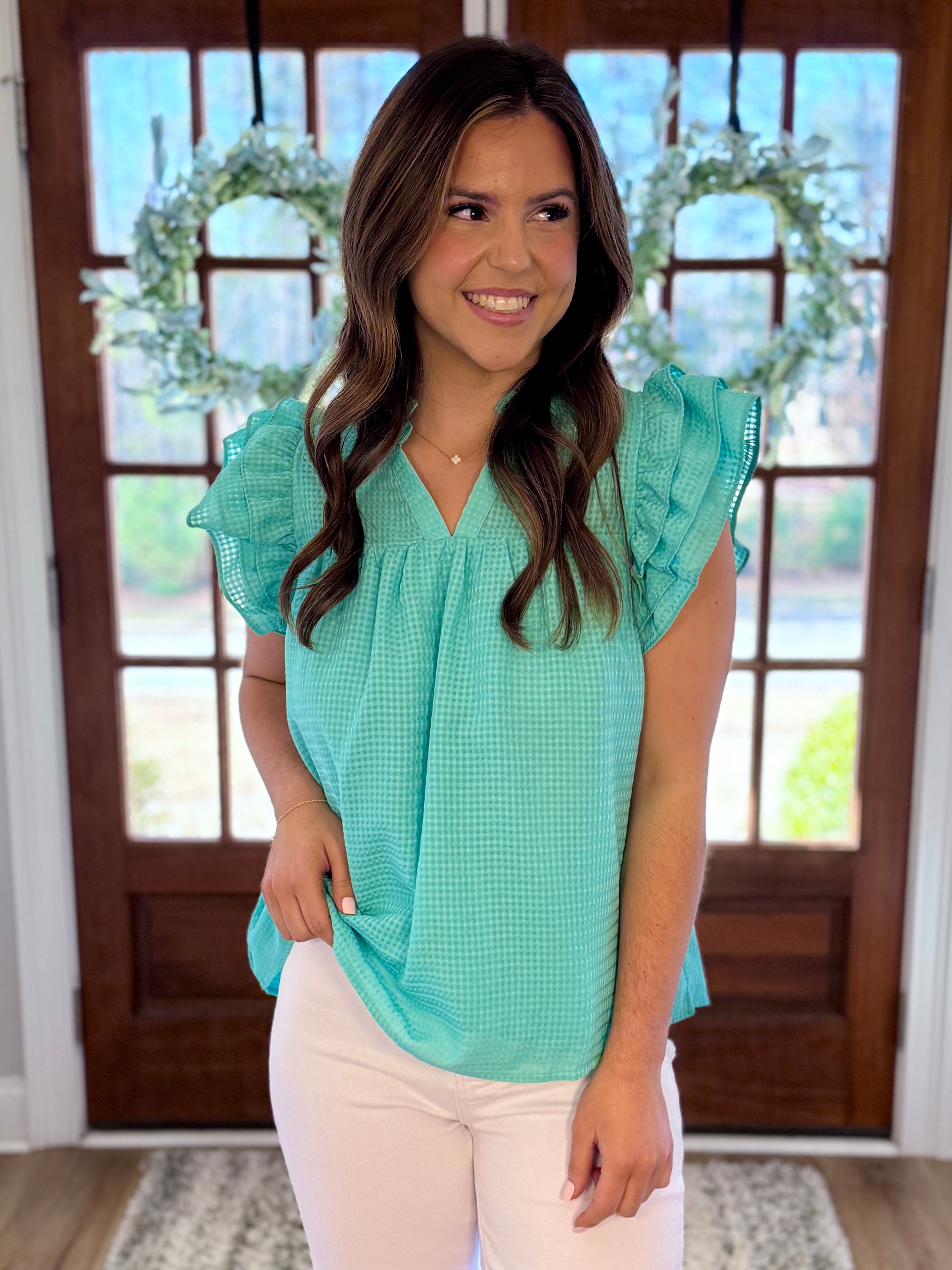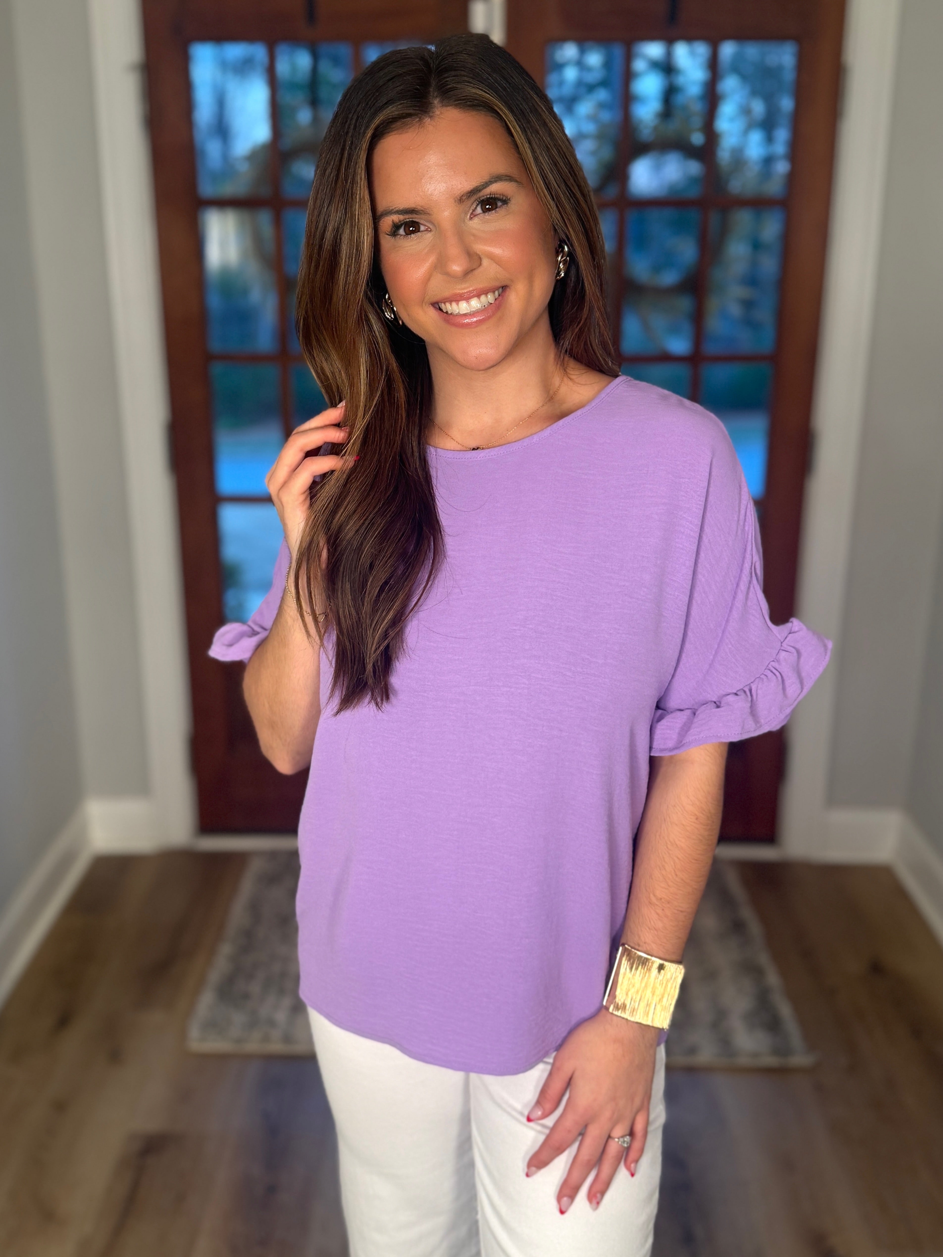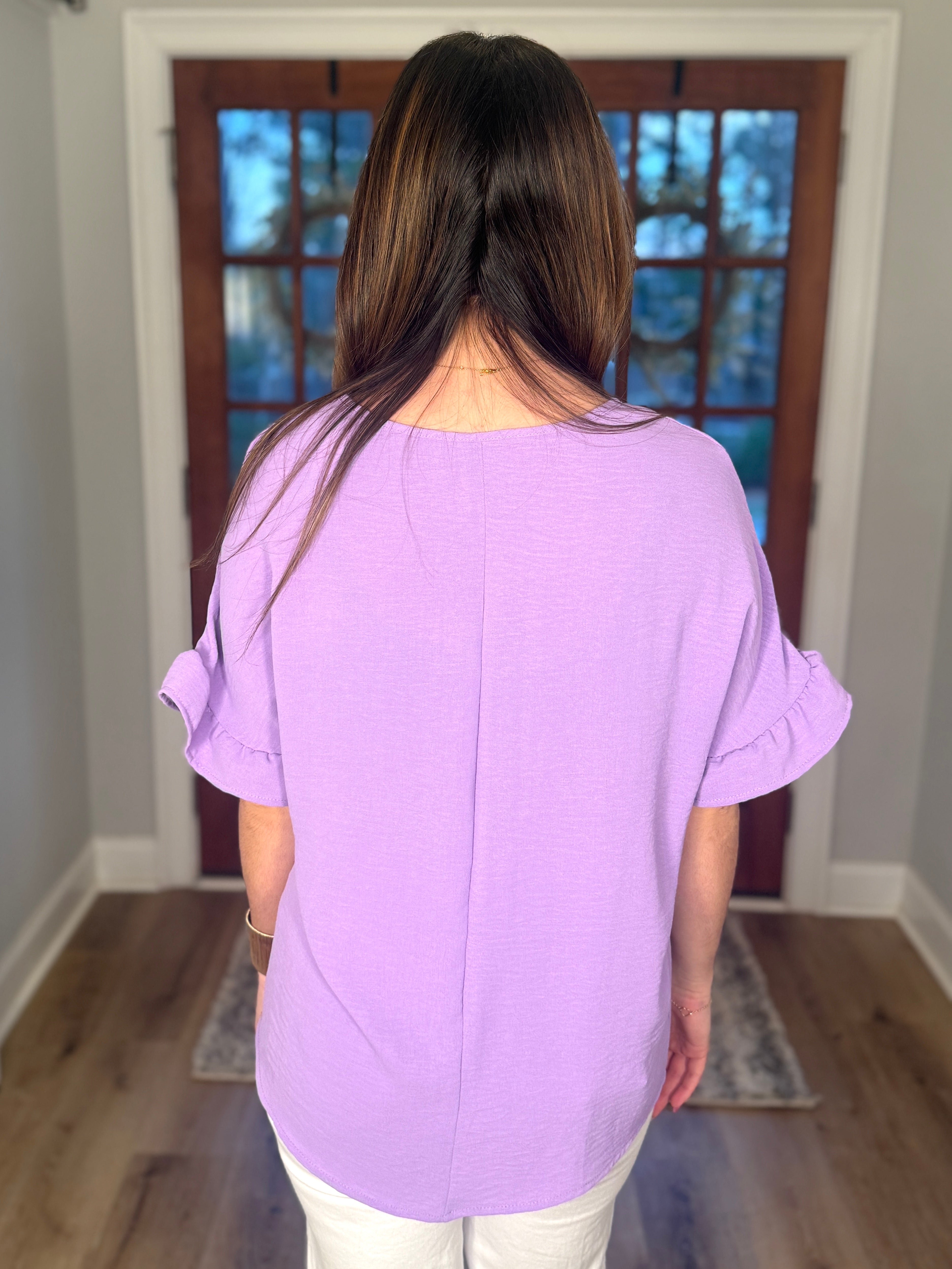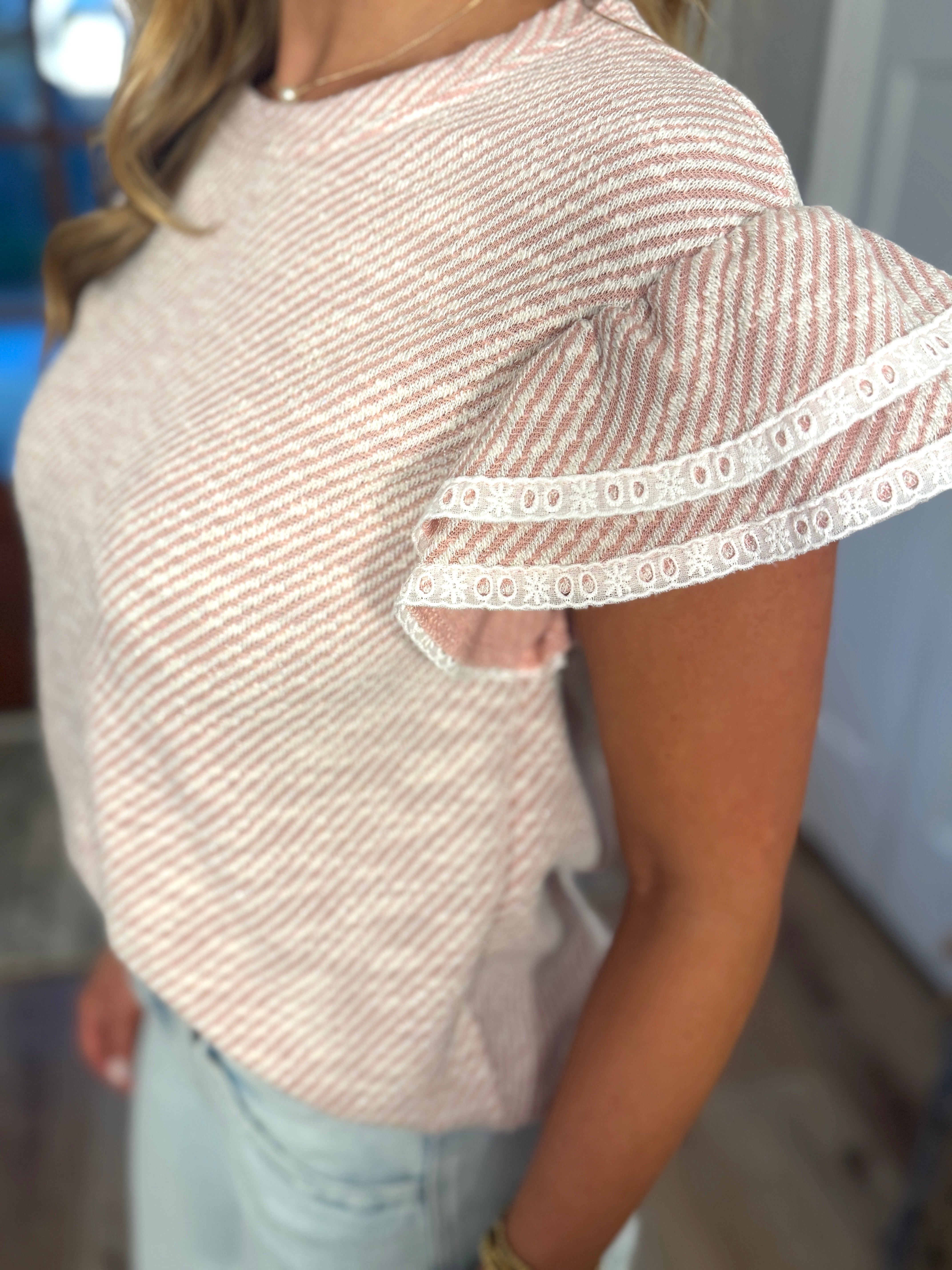 STEVIE Red Embroidered Sleeve Ruffle Top (S-2X)