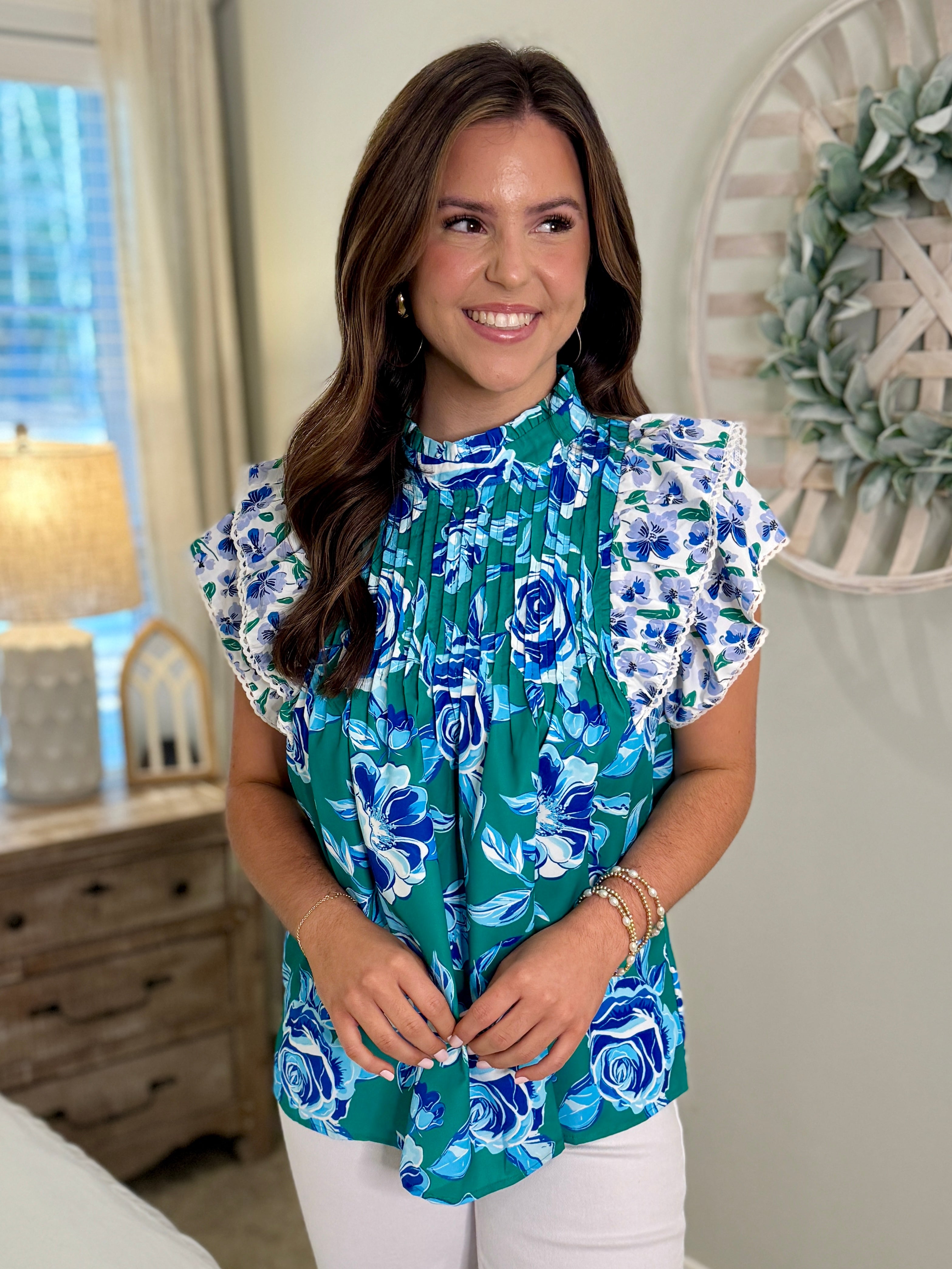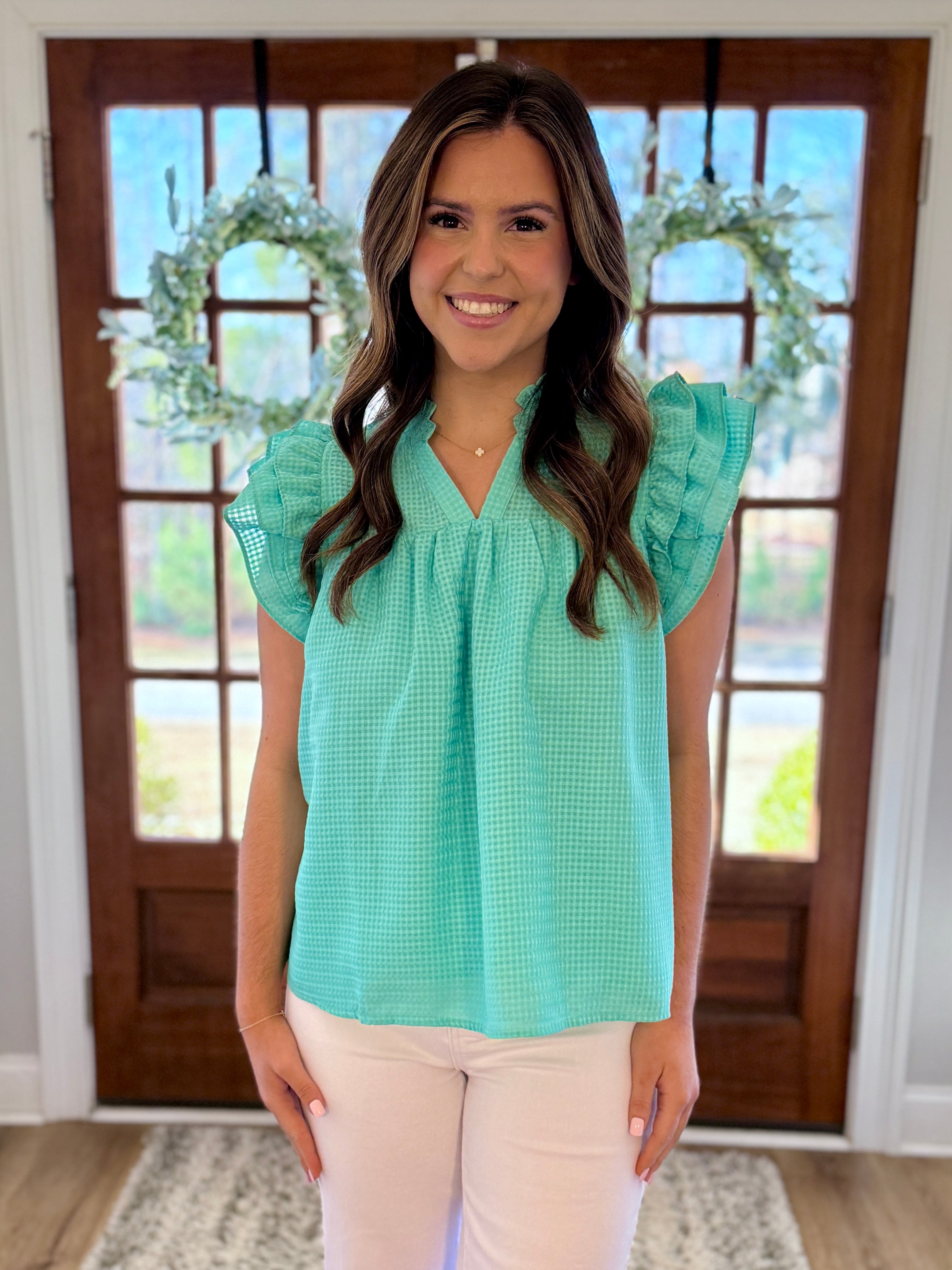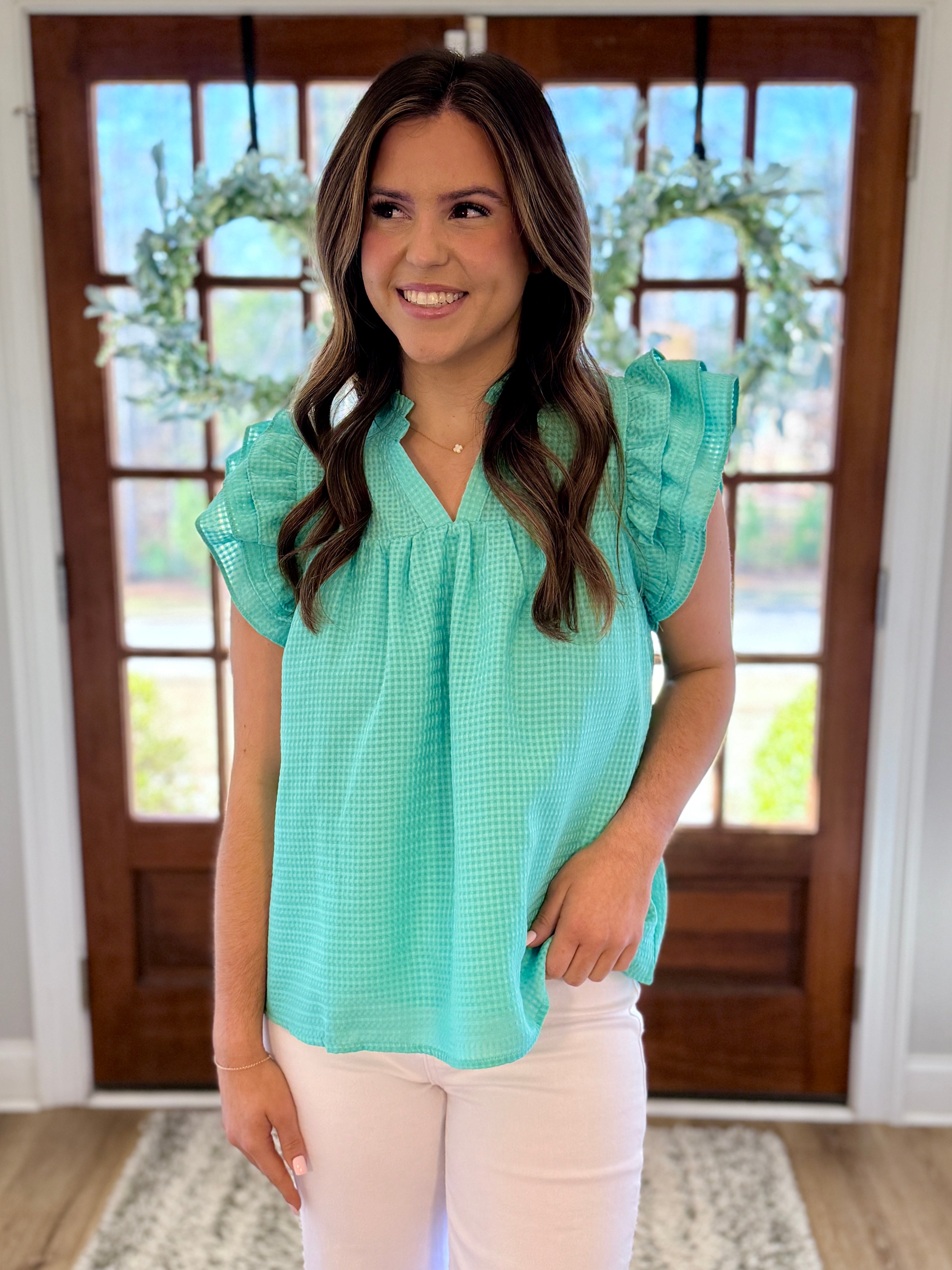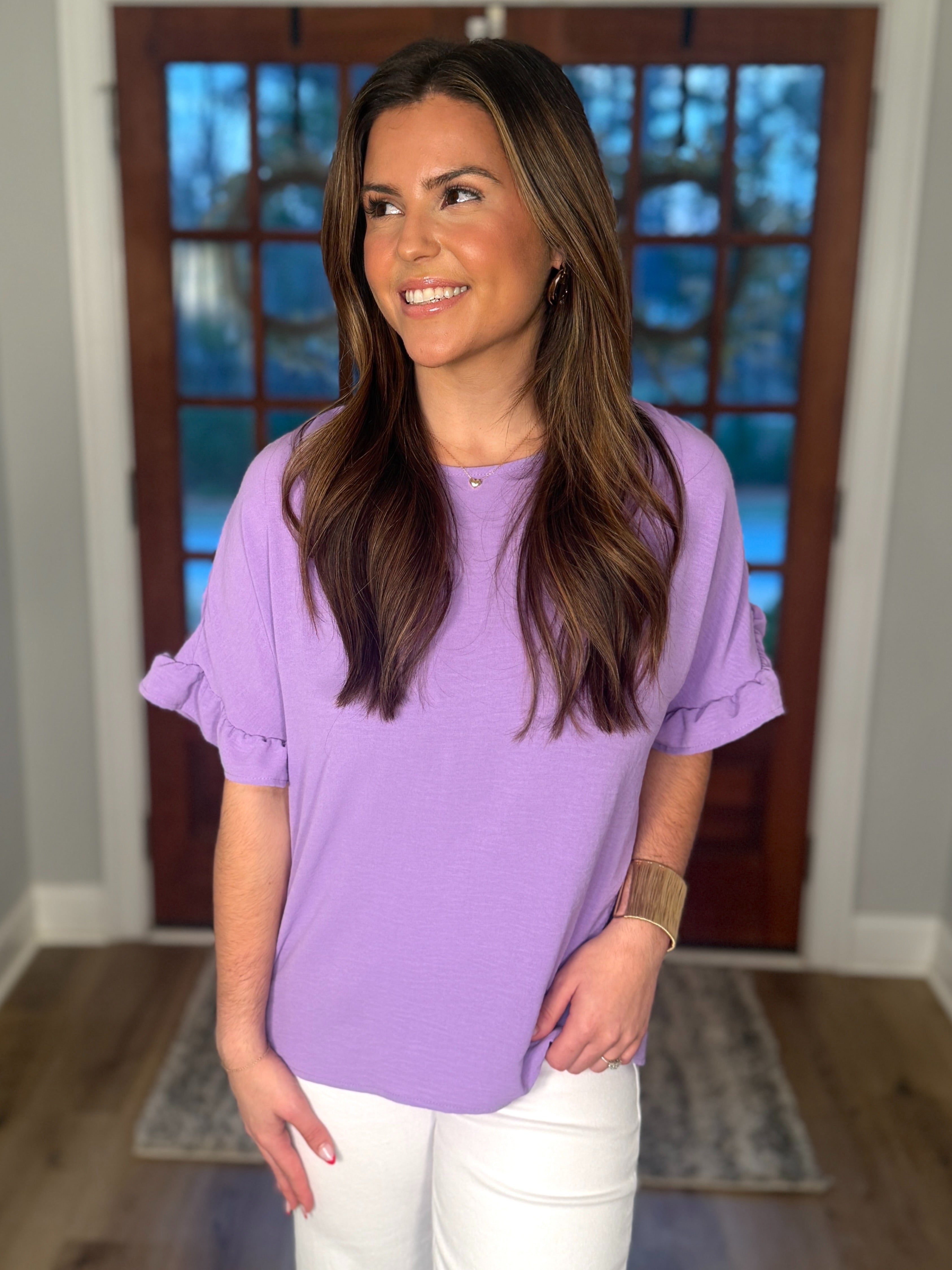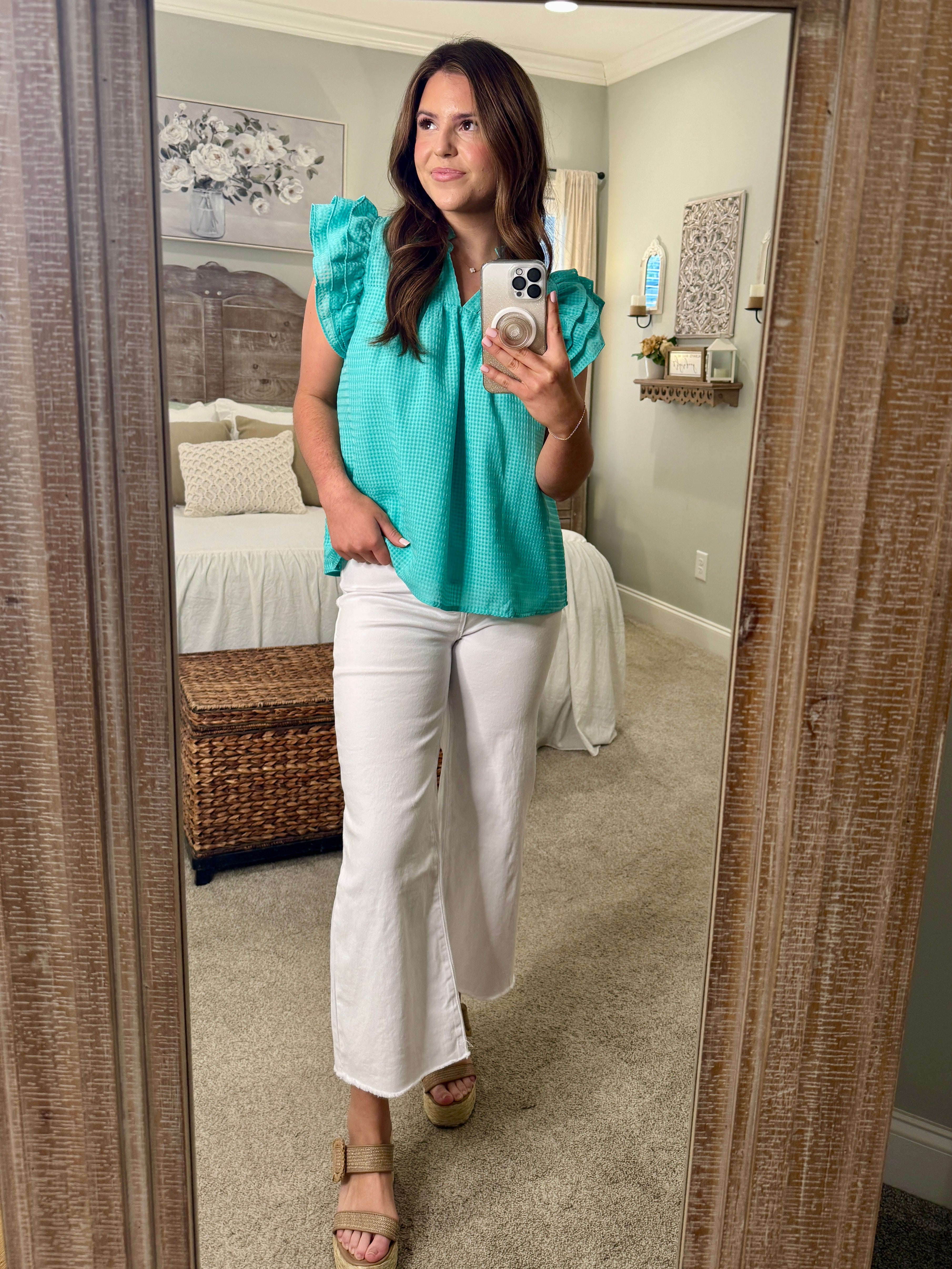 STEVIE Red Embroidered Sleeve Ruffle Top (S-2X)