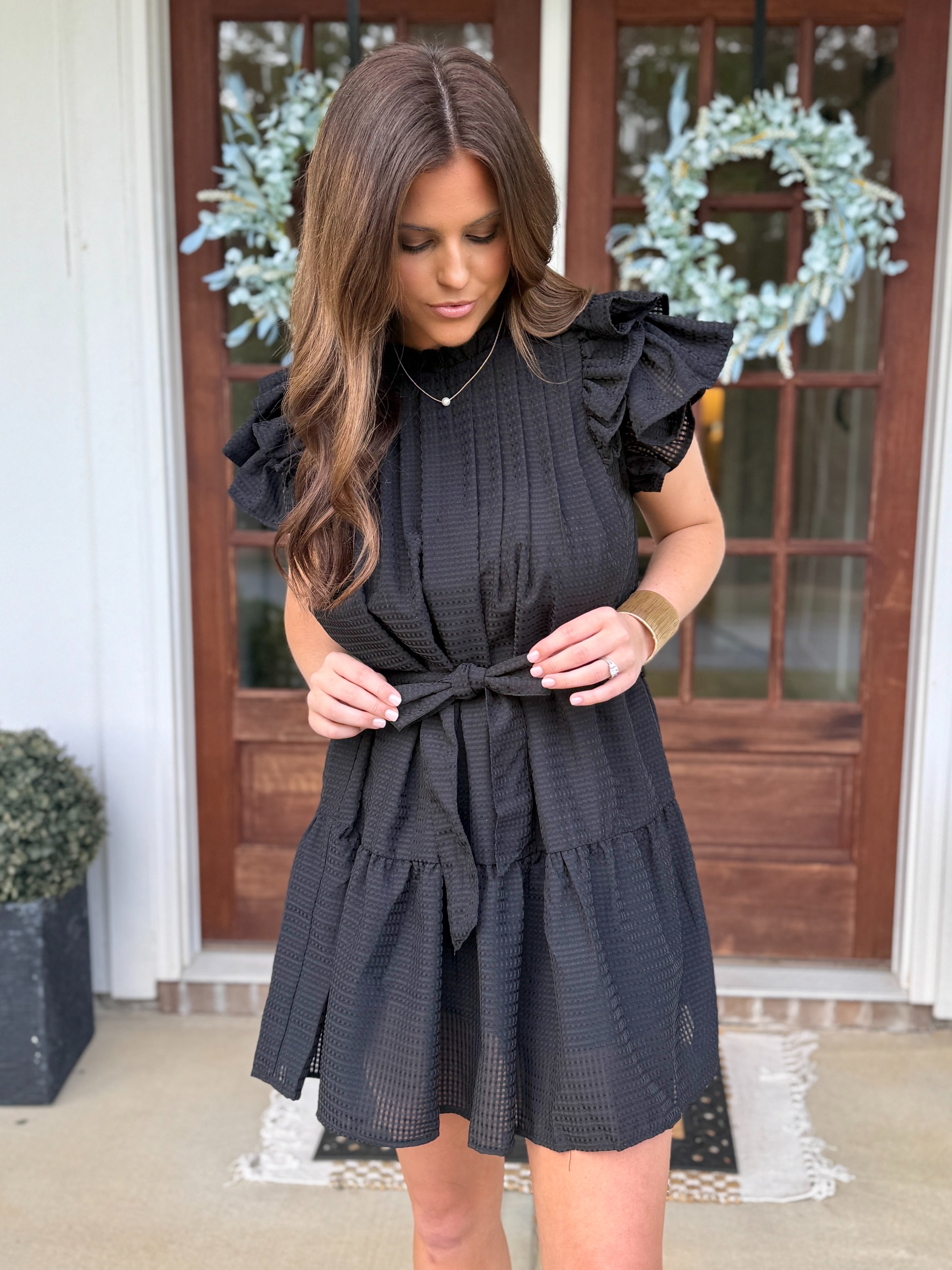 STELLA Short Black Dress With Tie