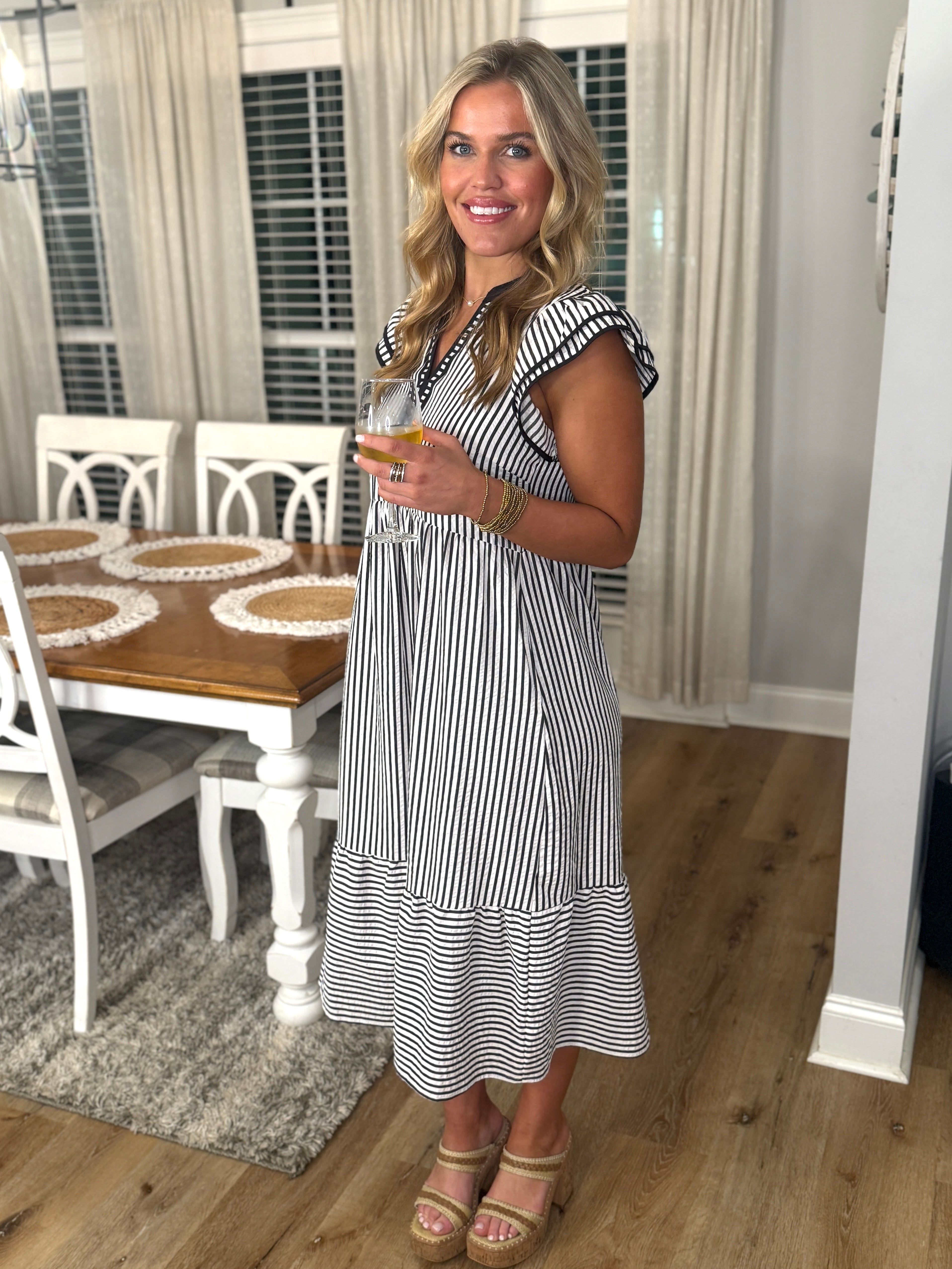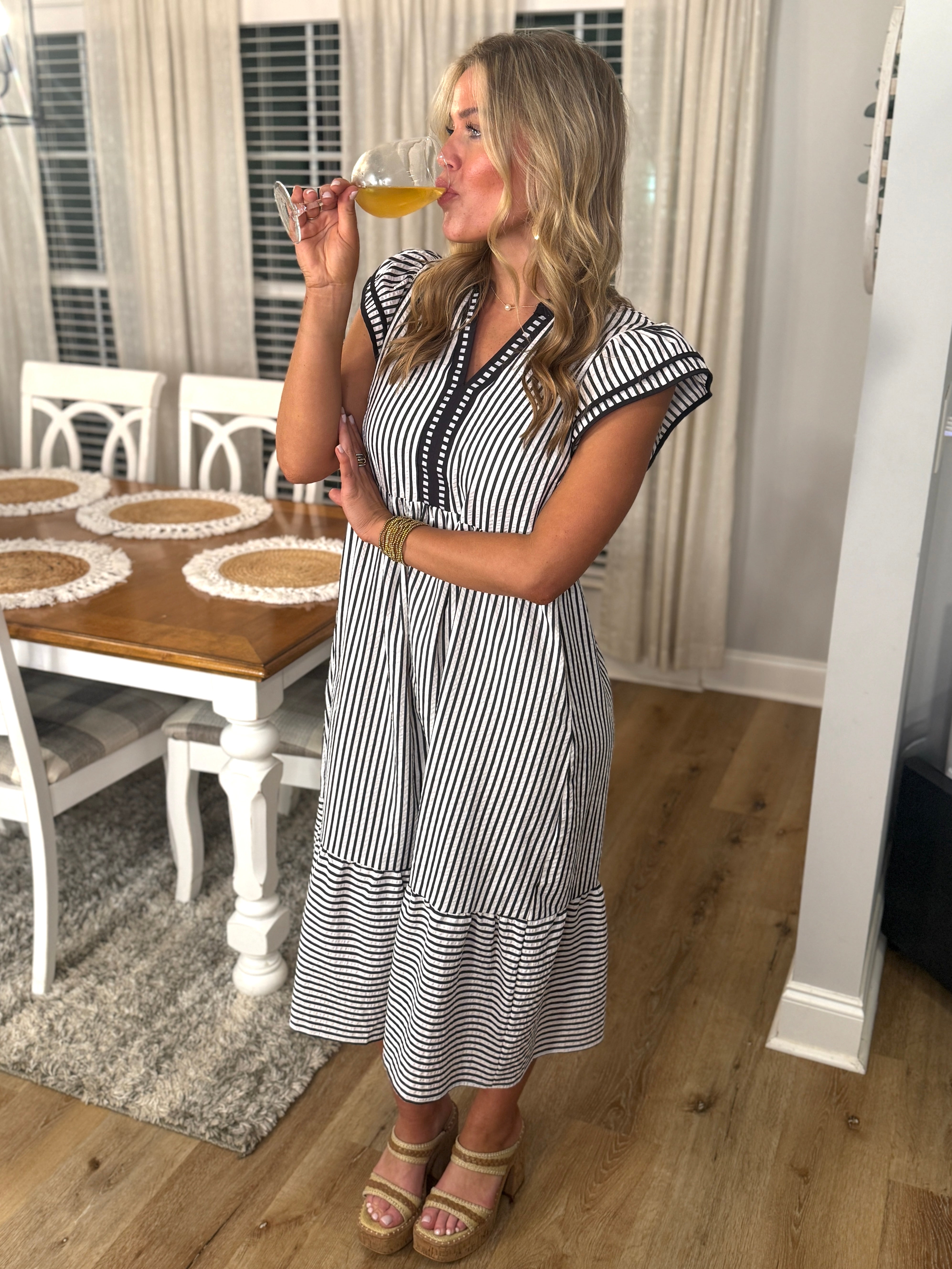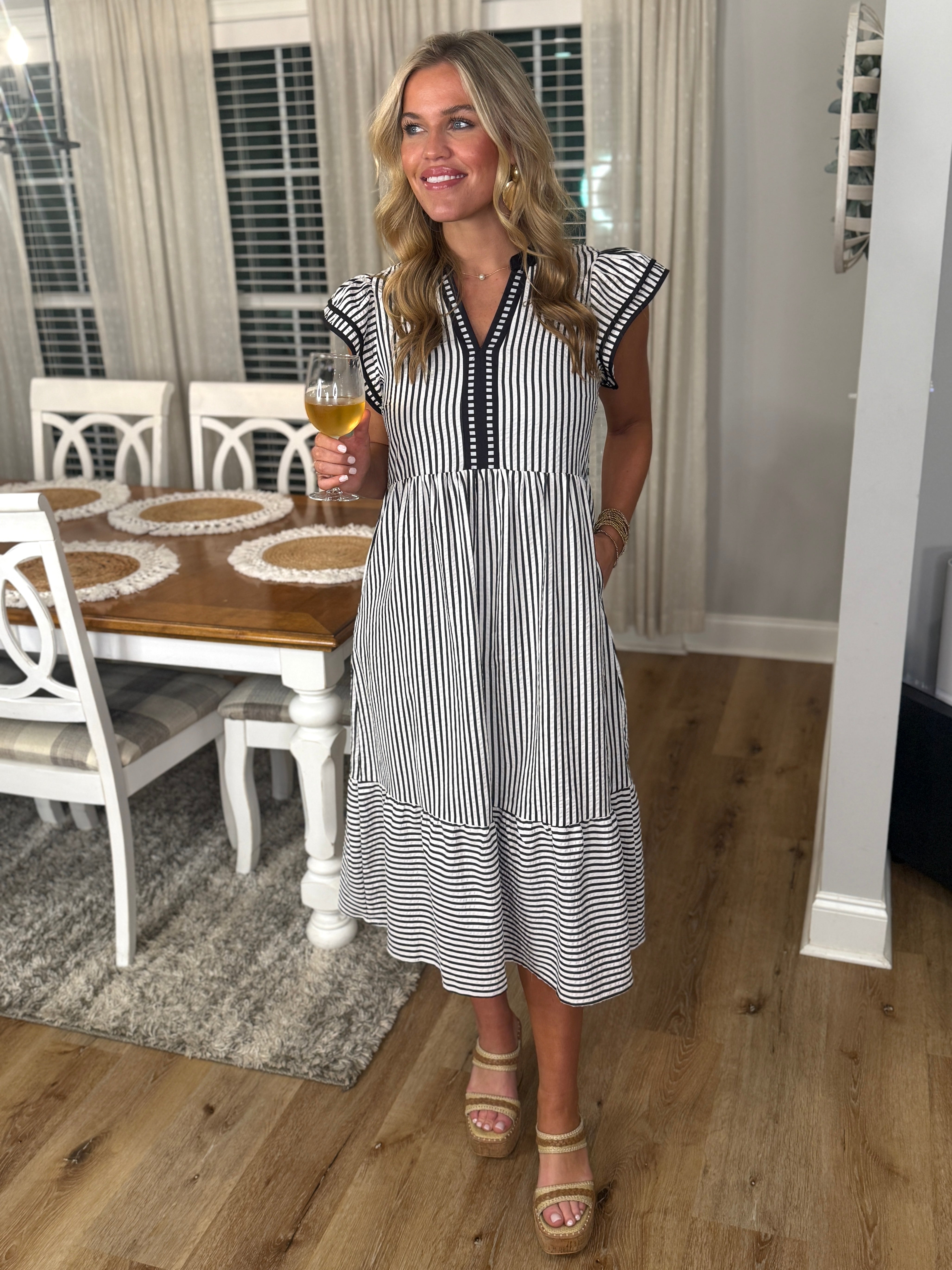 WILLOW Black/White Striped Midi Dress