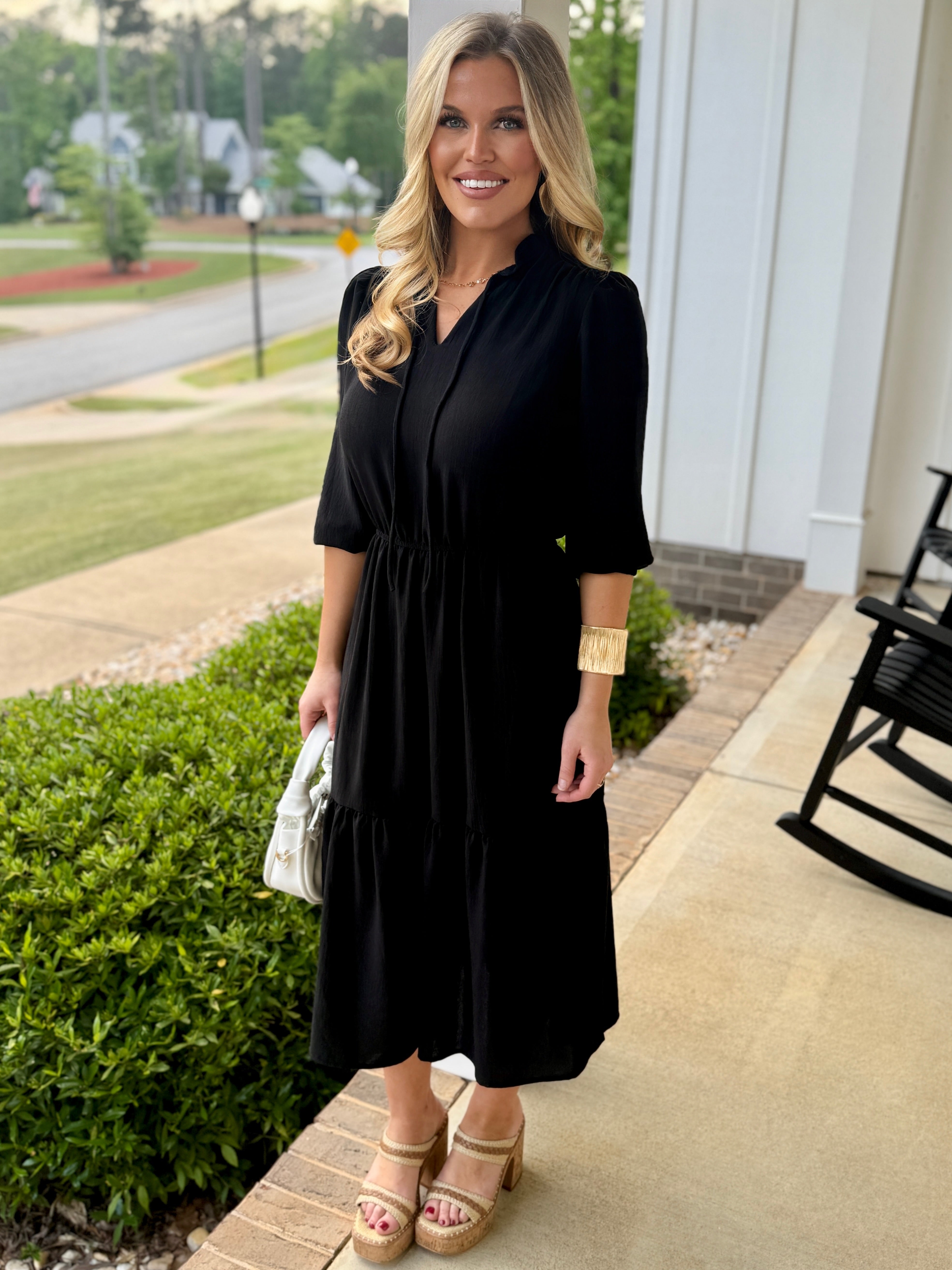 IVY Midi Dress With 3/4 Sleeves (Black)