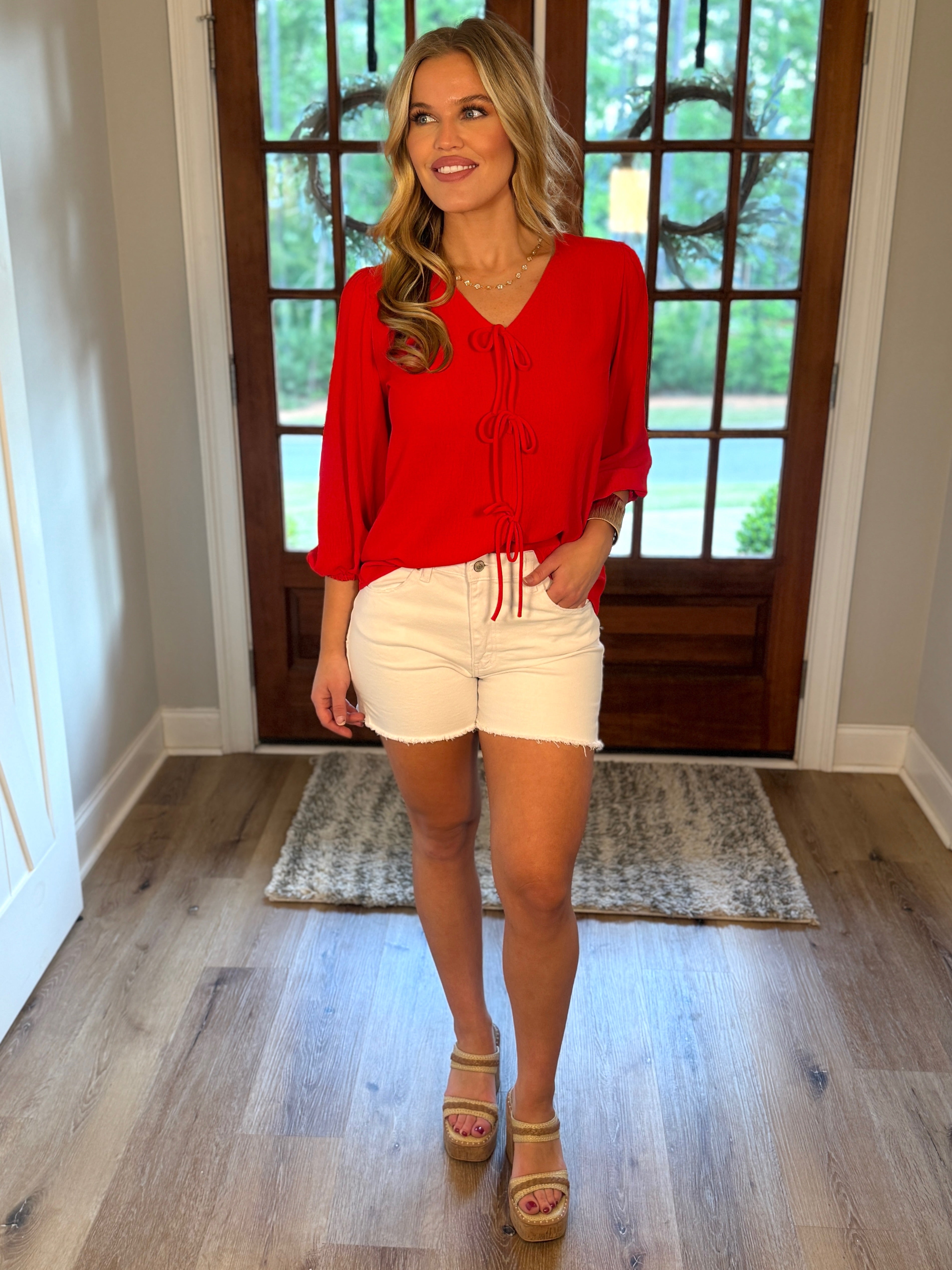 ELISE Bow Front 3/4 Sleeve Top (Red)