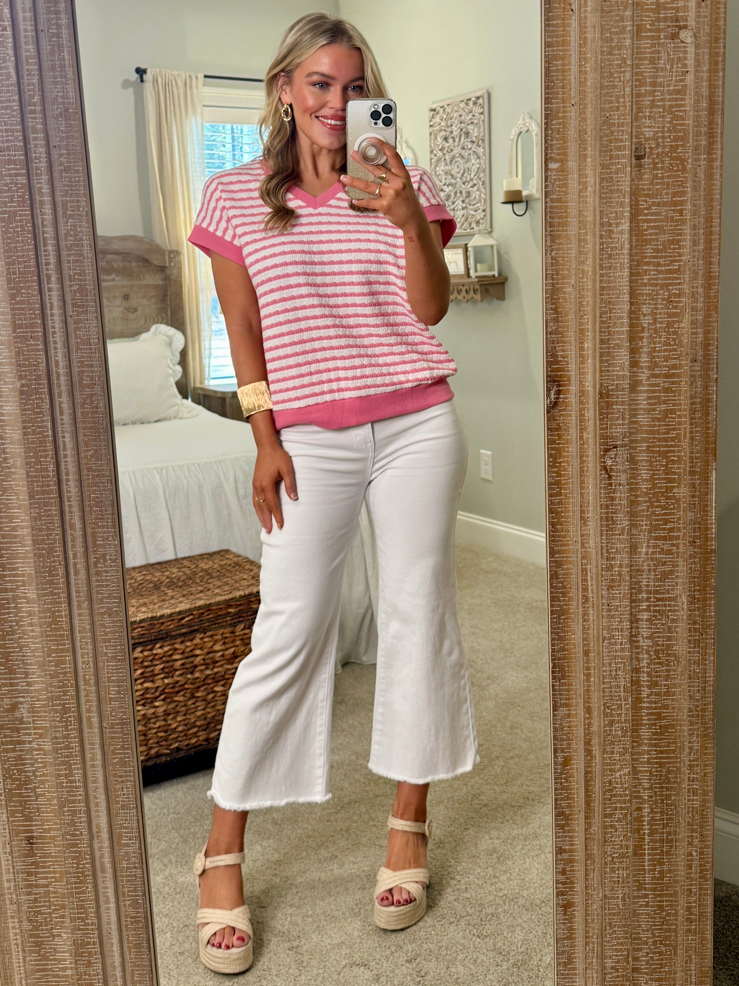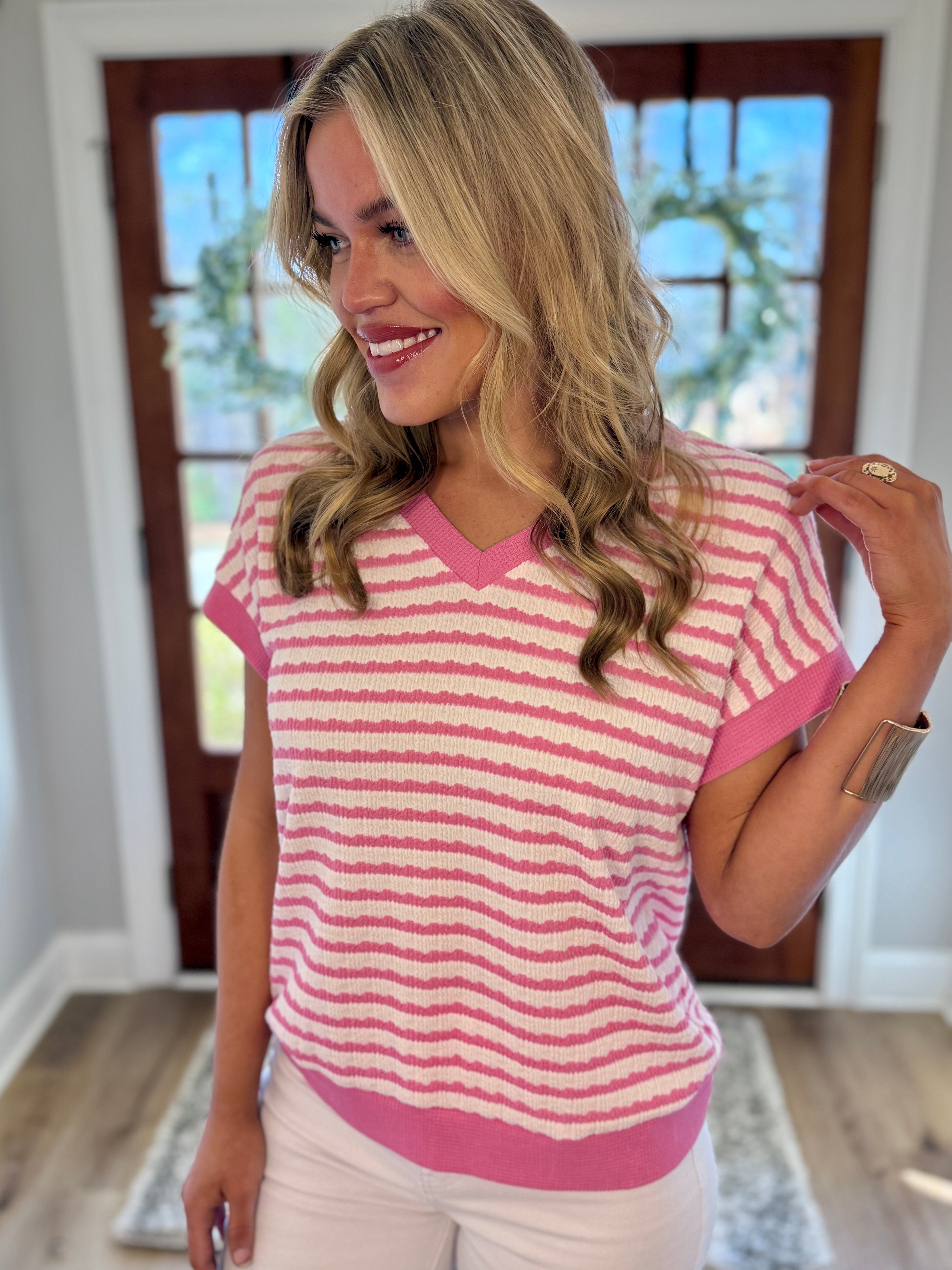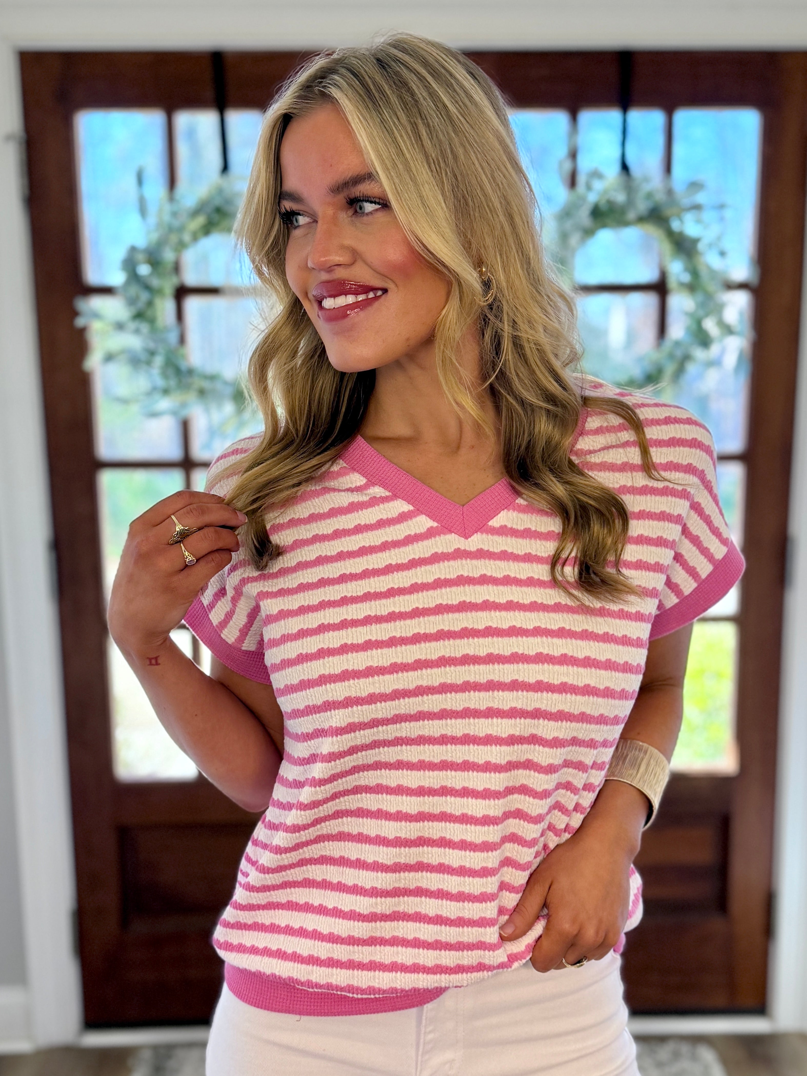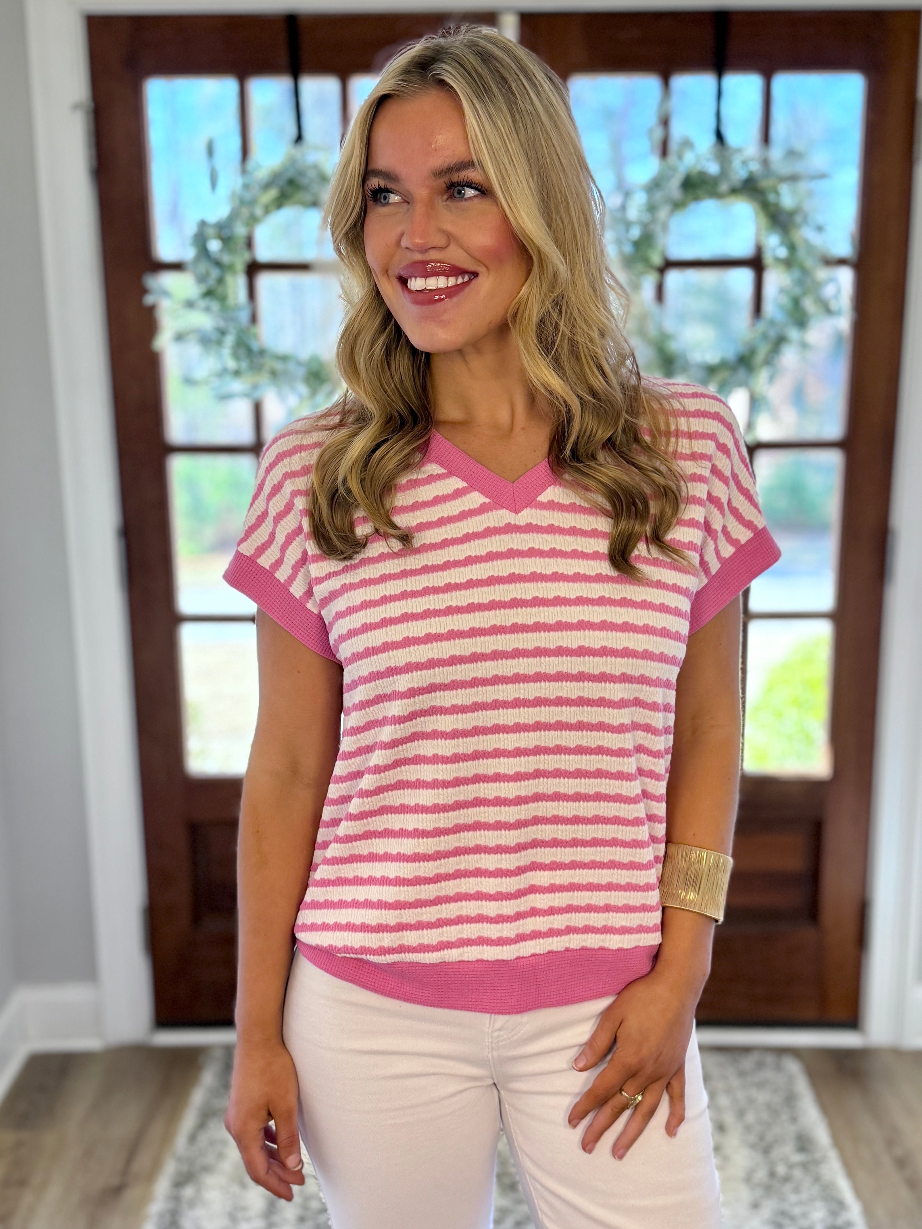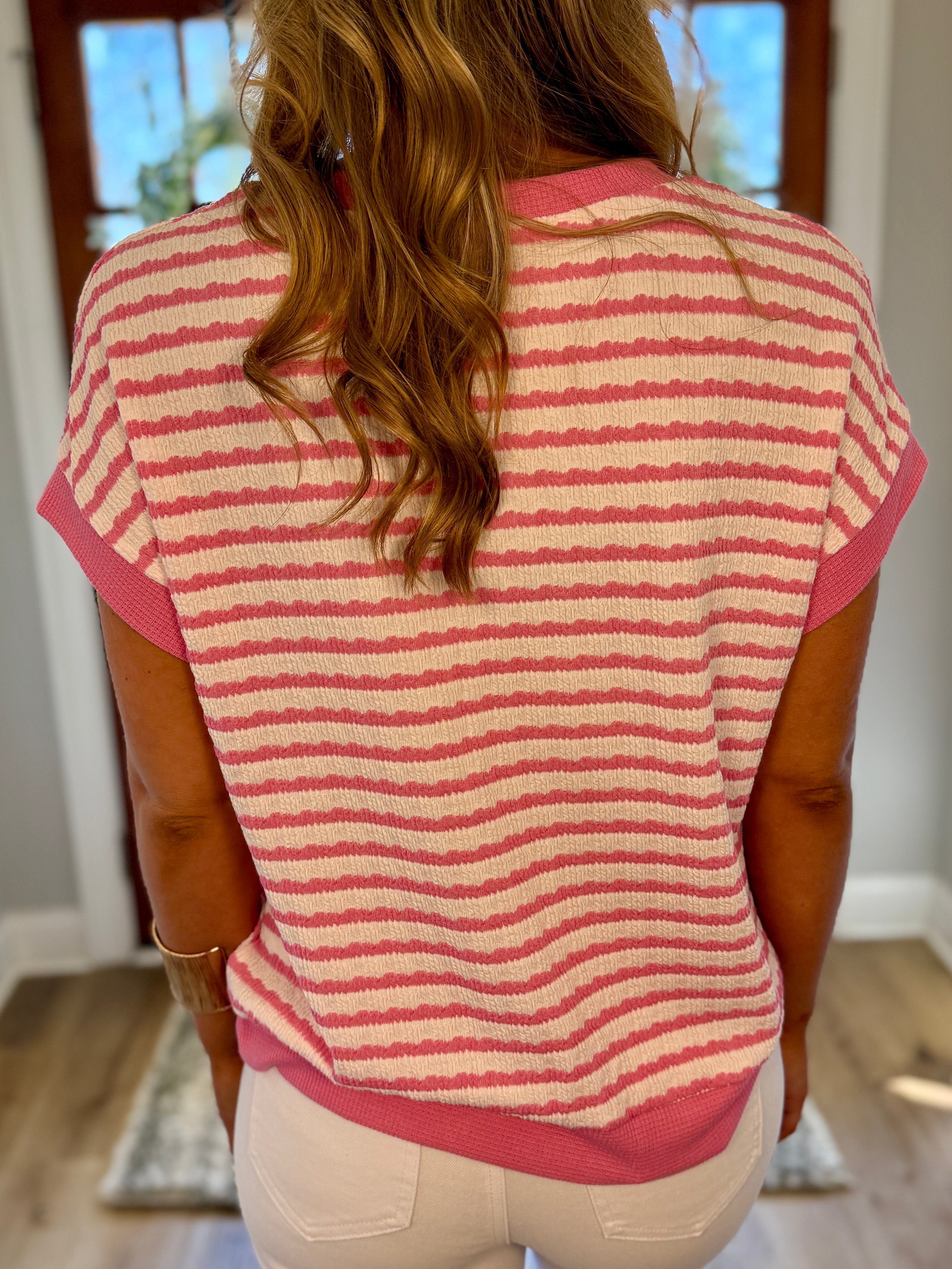 BLISS Ribbed Pocket Top (Hot Pink) (S-3X)