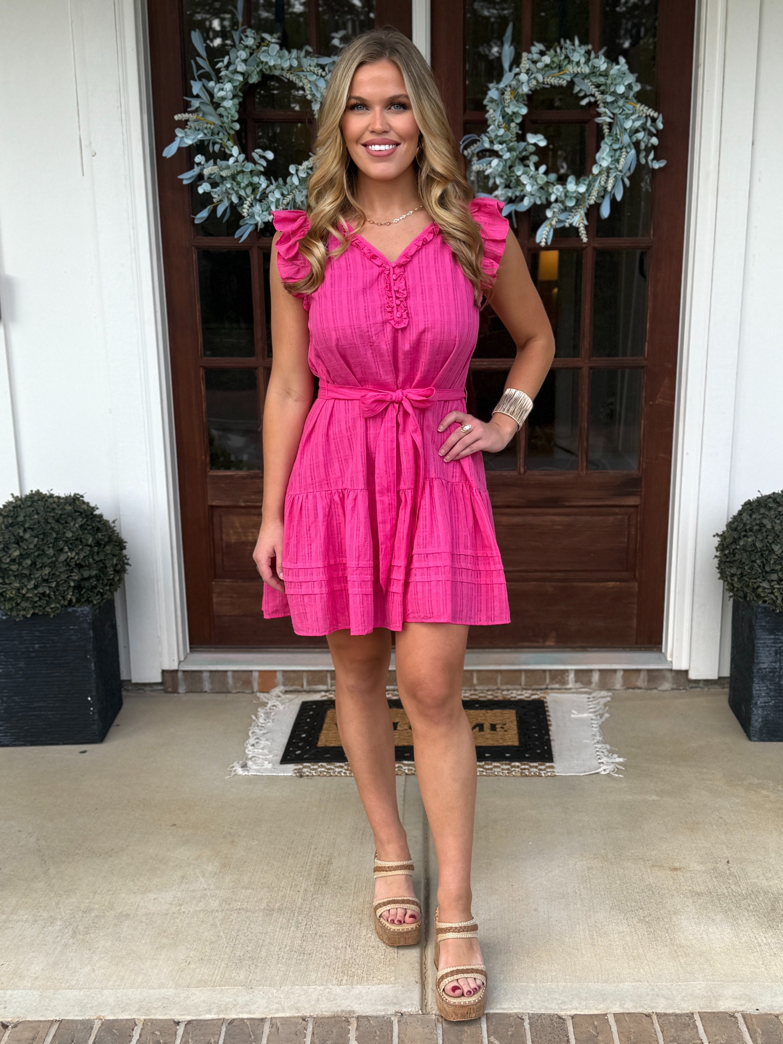 AURORA Hot Pink Ruffle Dress With Tie