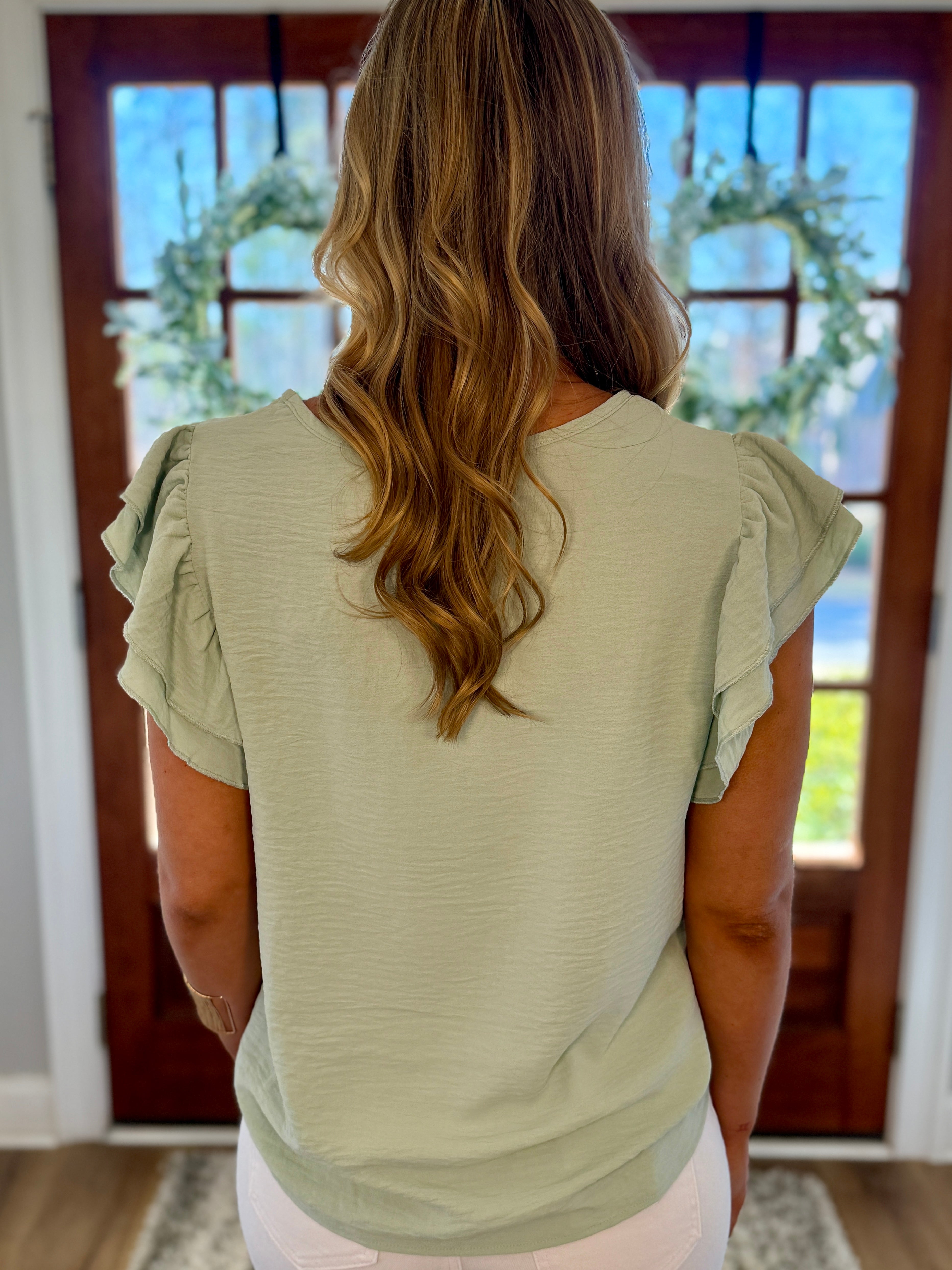 SADIE Raised Ribbed V-Neck Top (Olive) (S-3X)