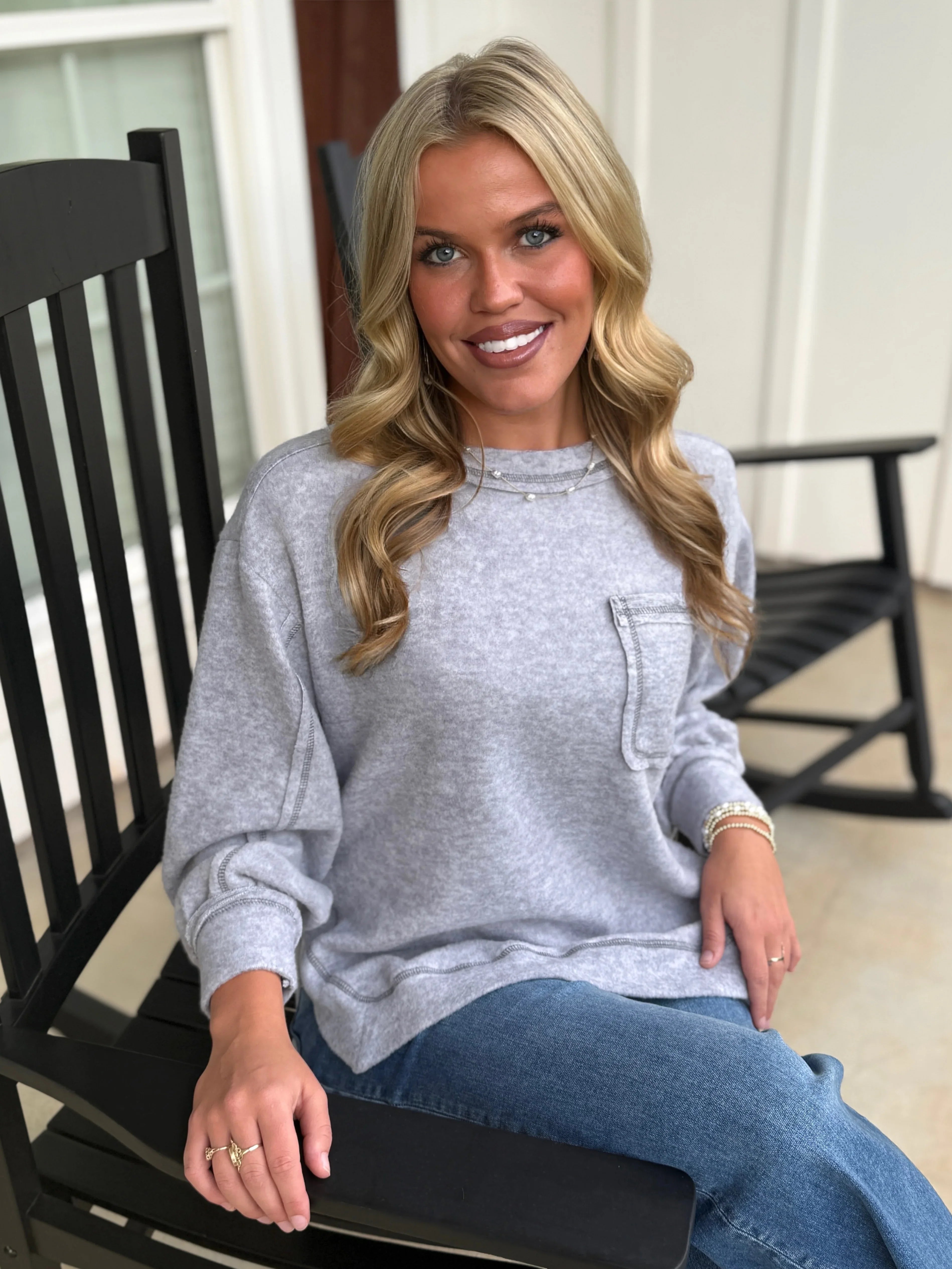 LAYLA Side Slit Pocket Brushed Sweater Top (Grey) (S-3X)