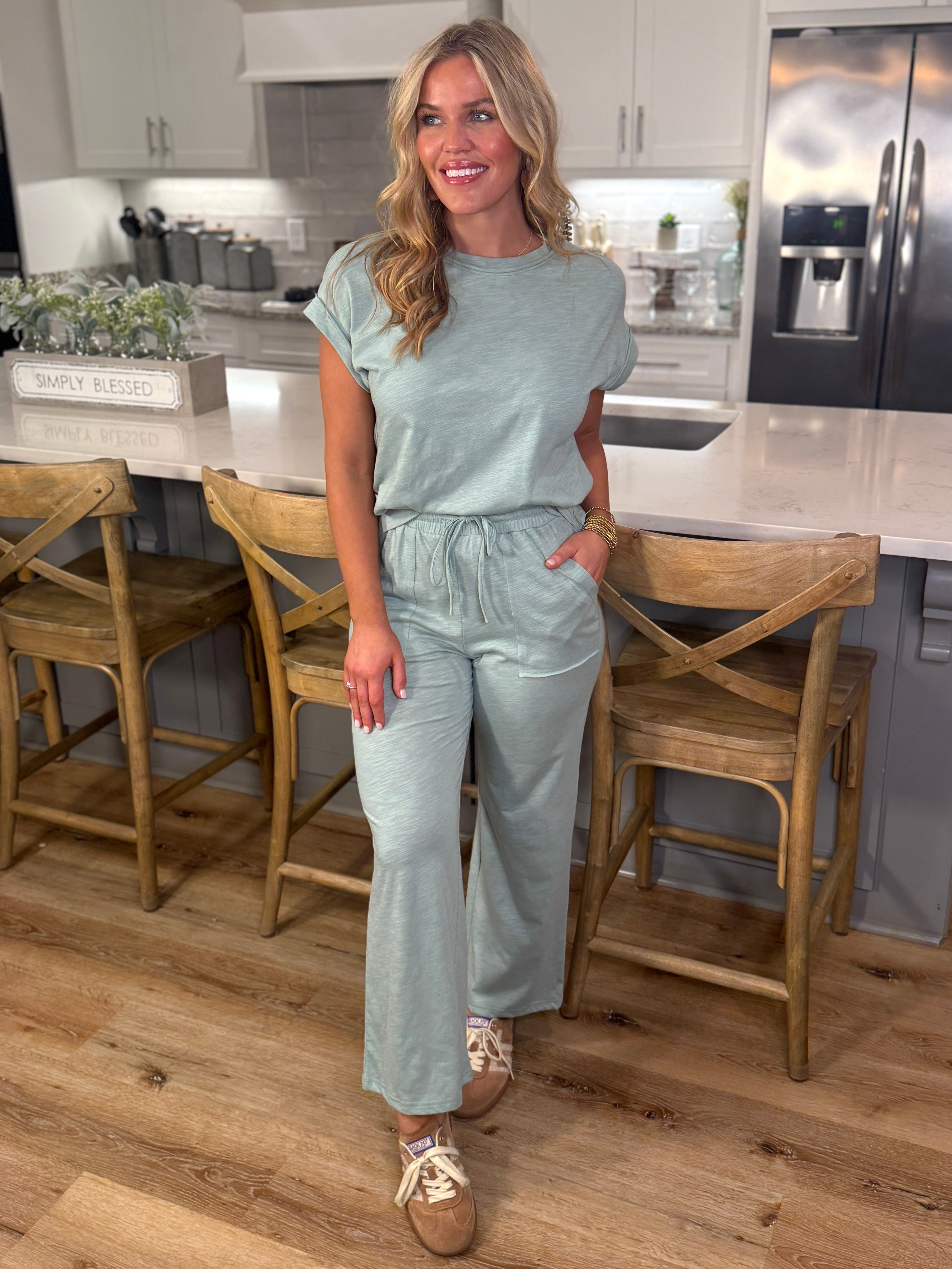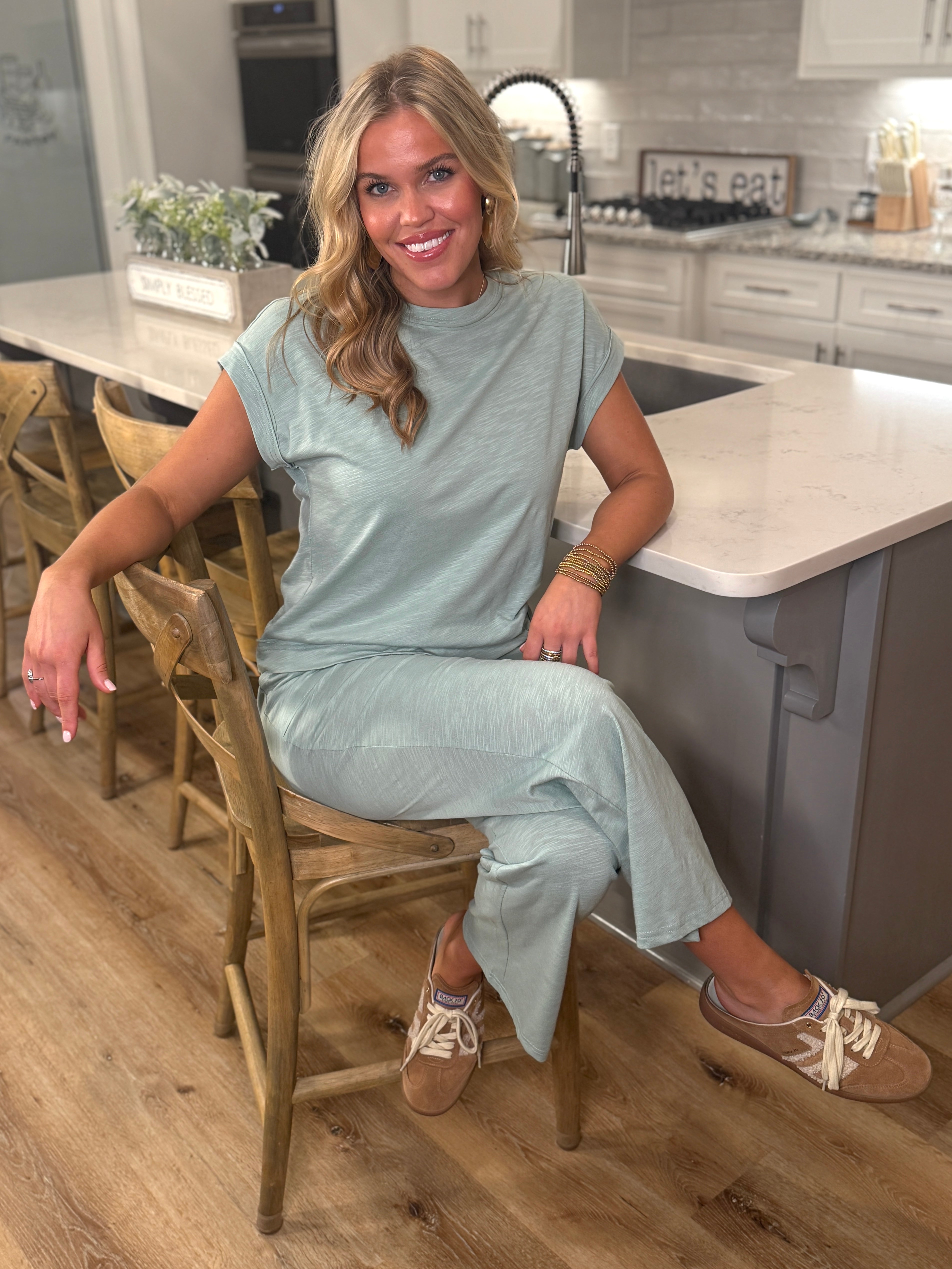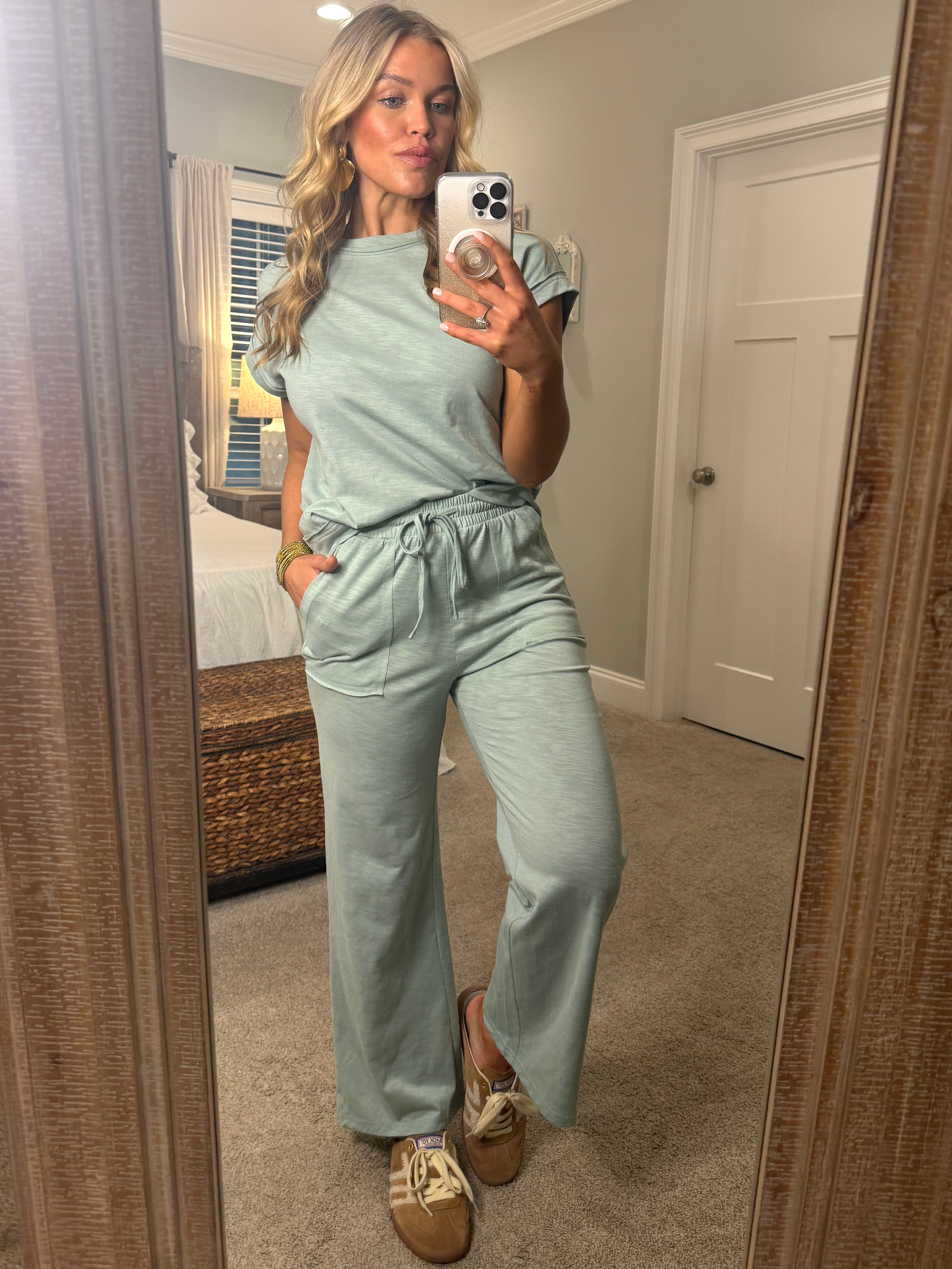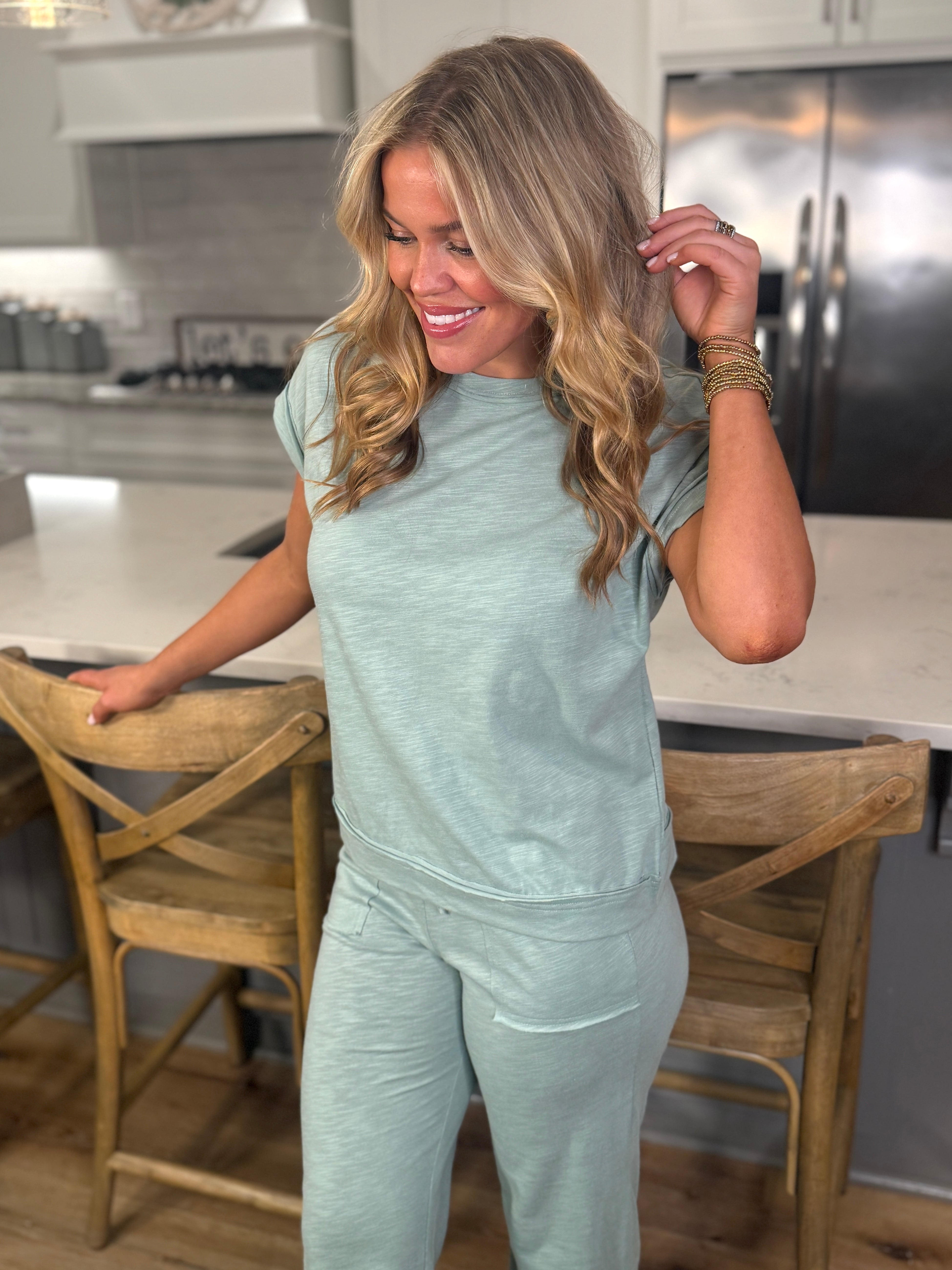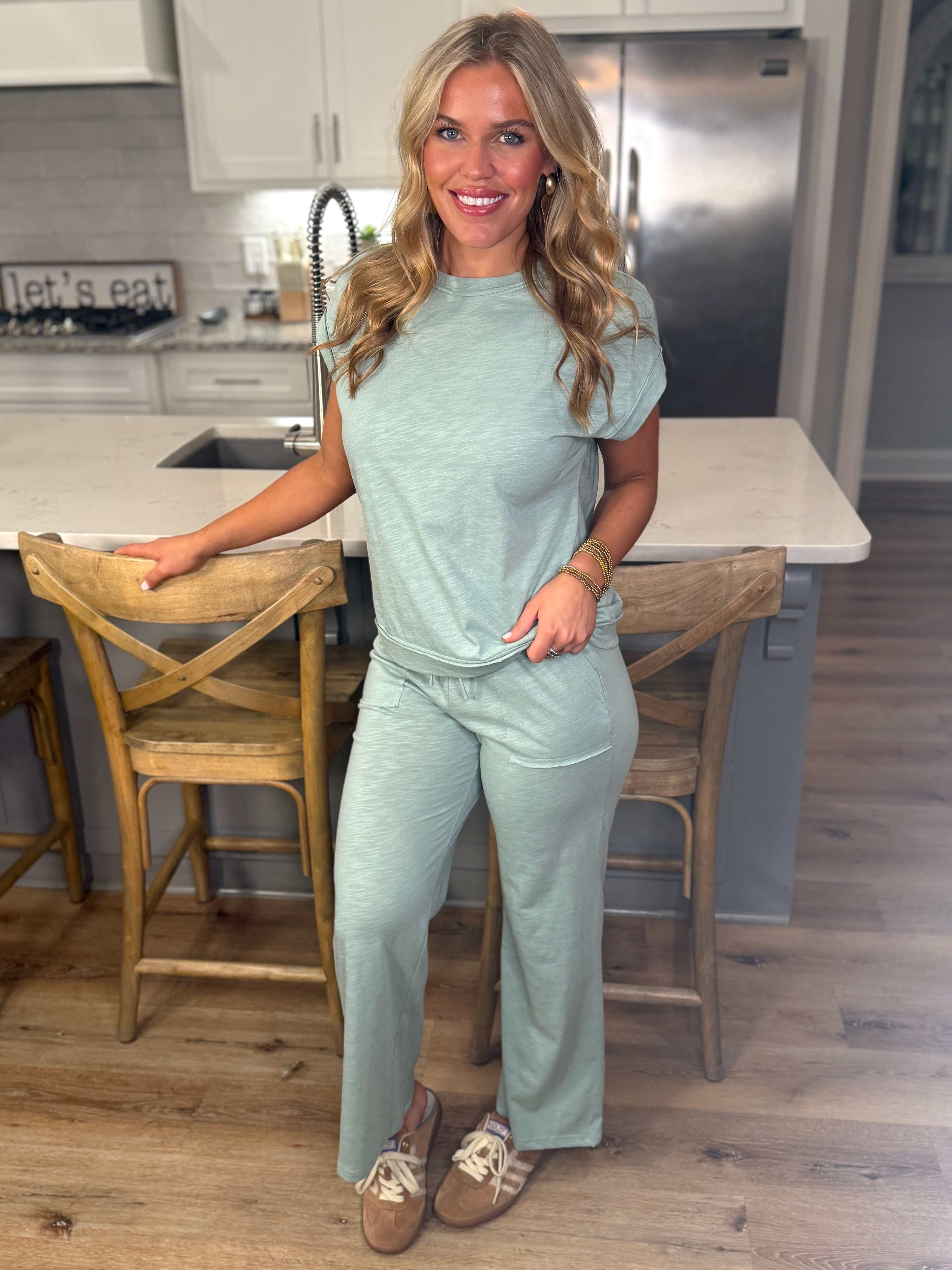 MORGAN Raw Edge Top/Pants Set (Sage Green)