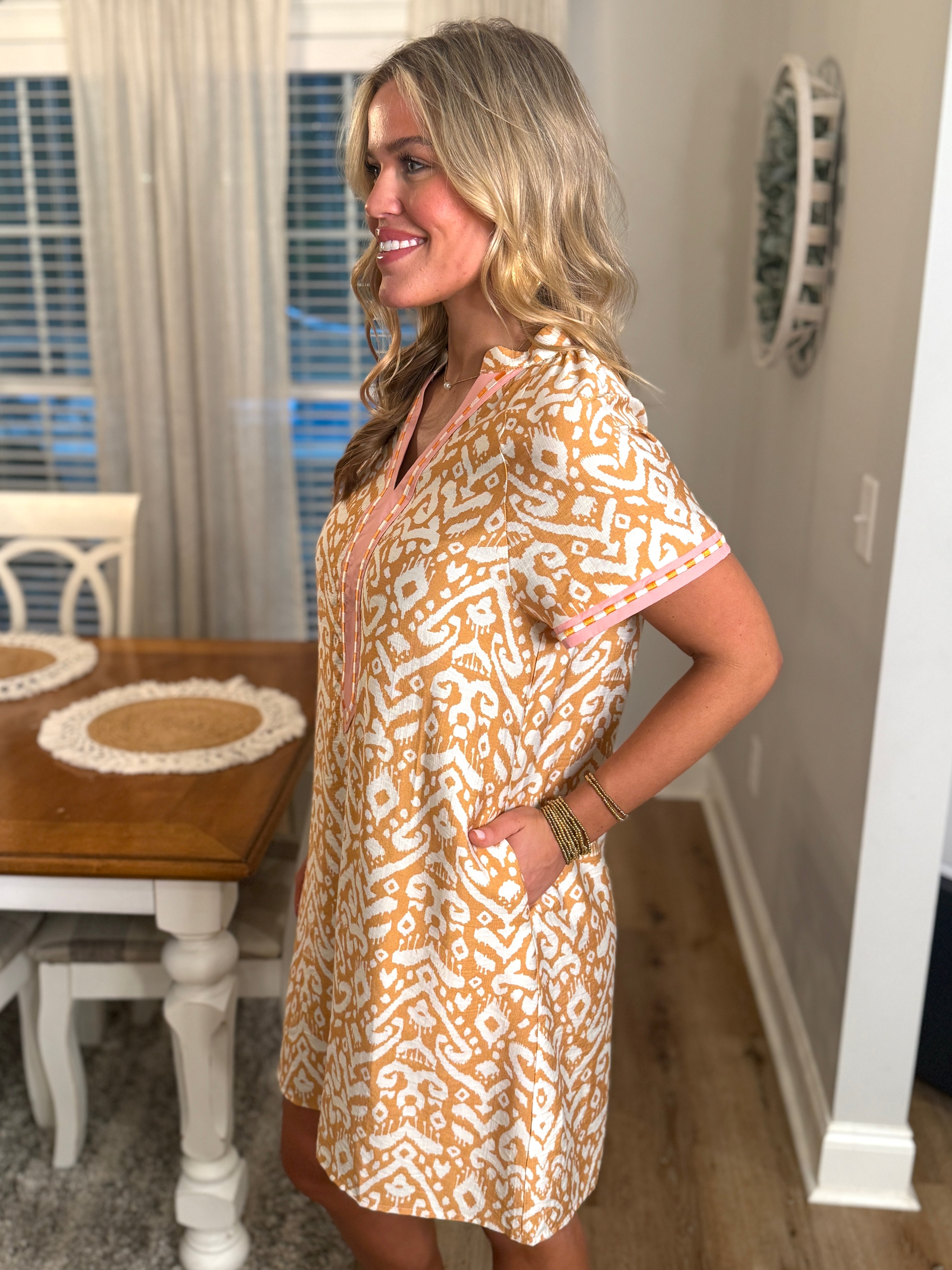 CLARA Striped Two Piece Pocket Top/Pants Set (Camel)