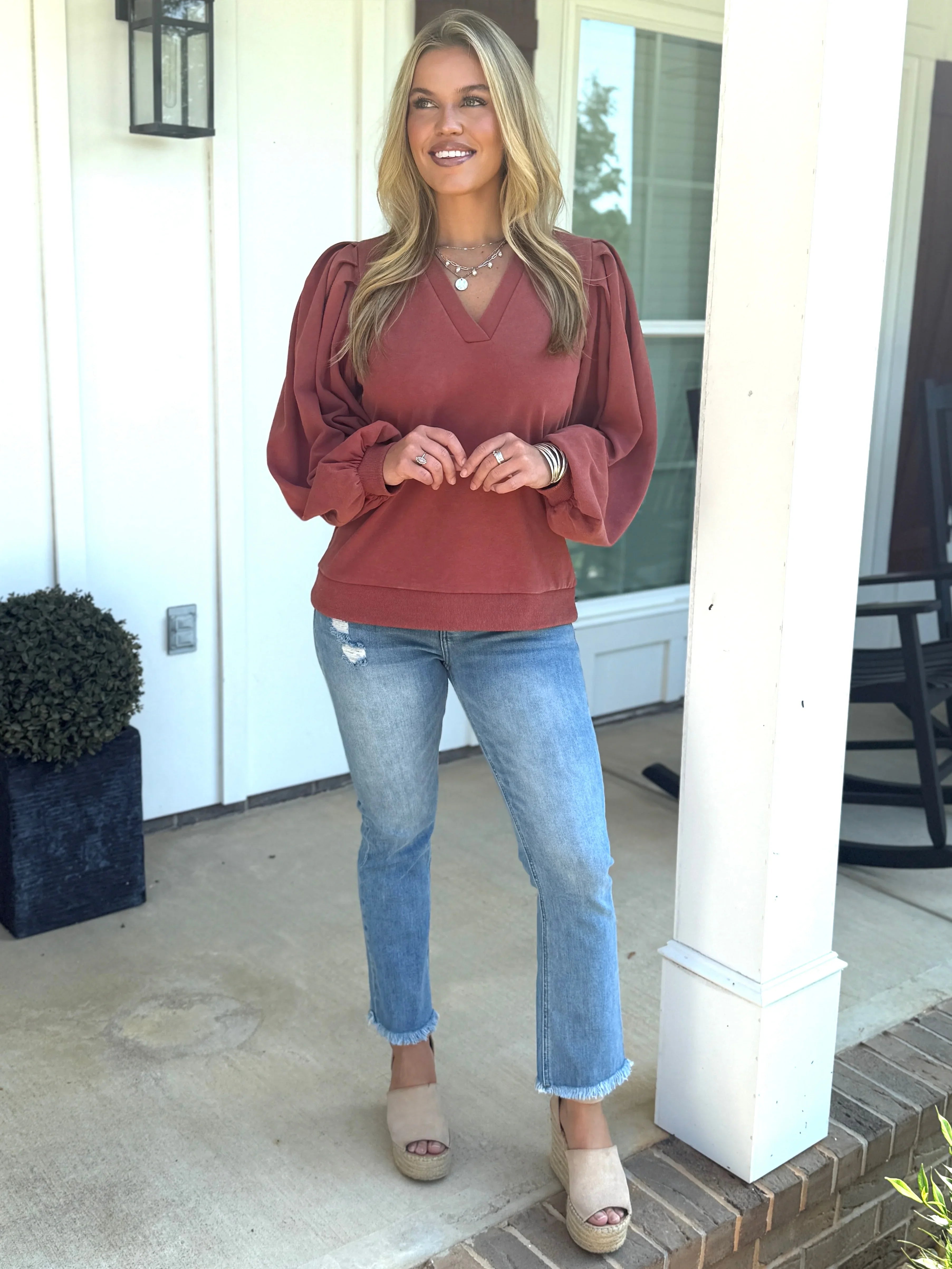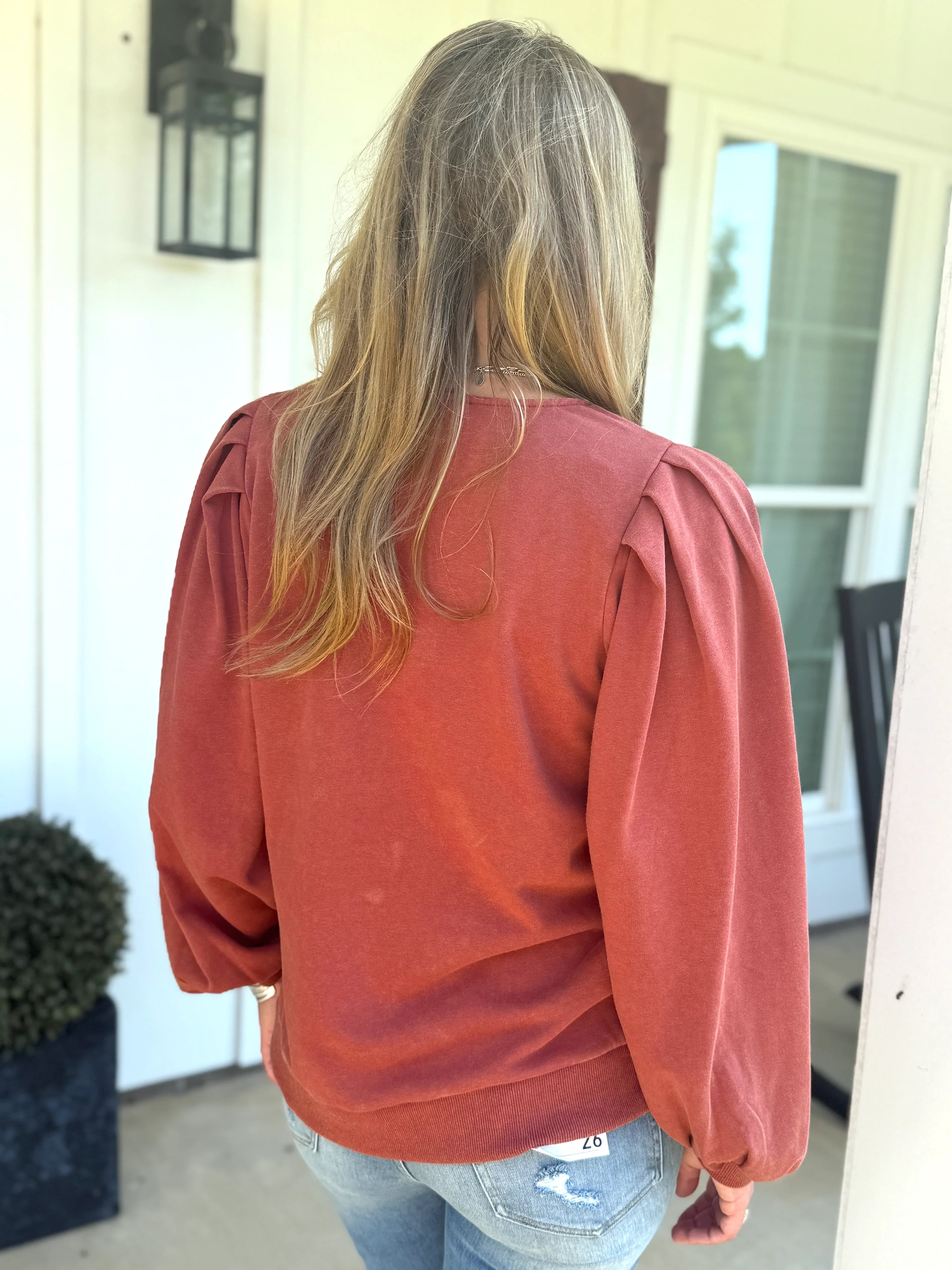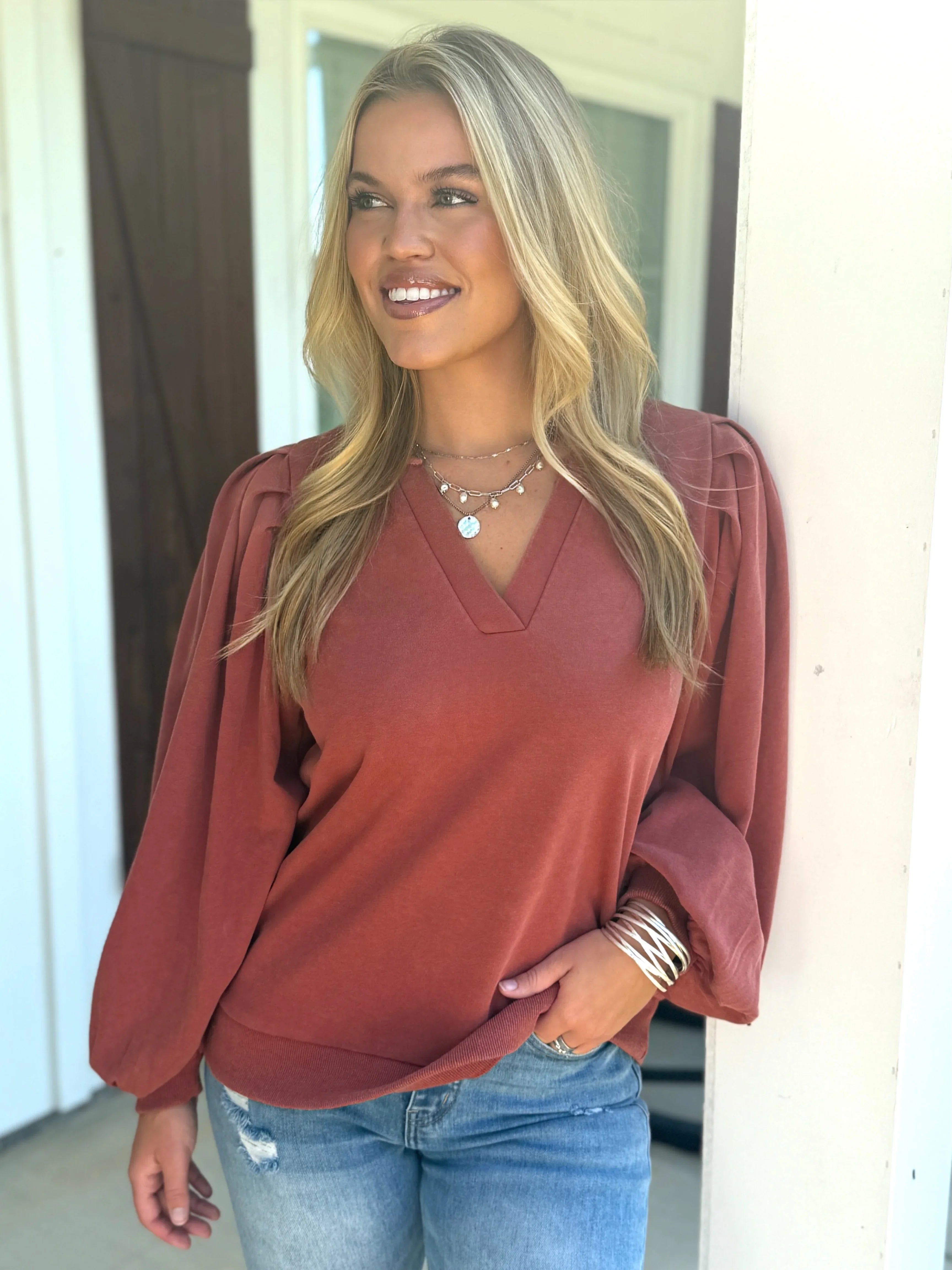 WRENLEY Balloon Sleeve Sweatshirt Top (Copper)