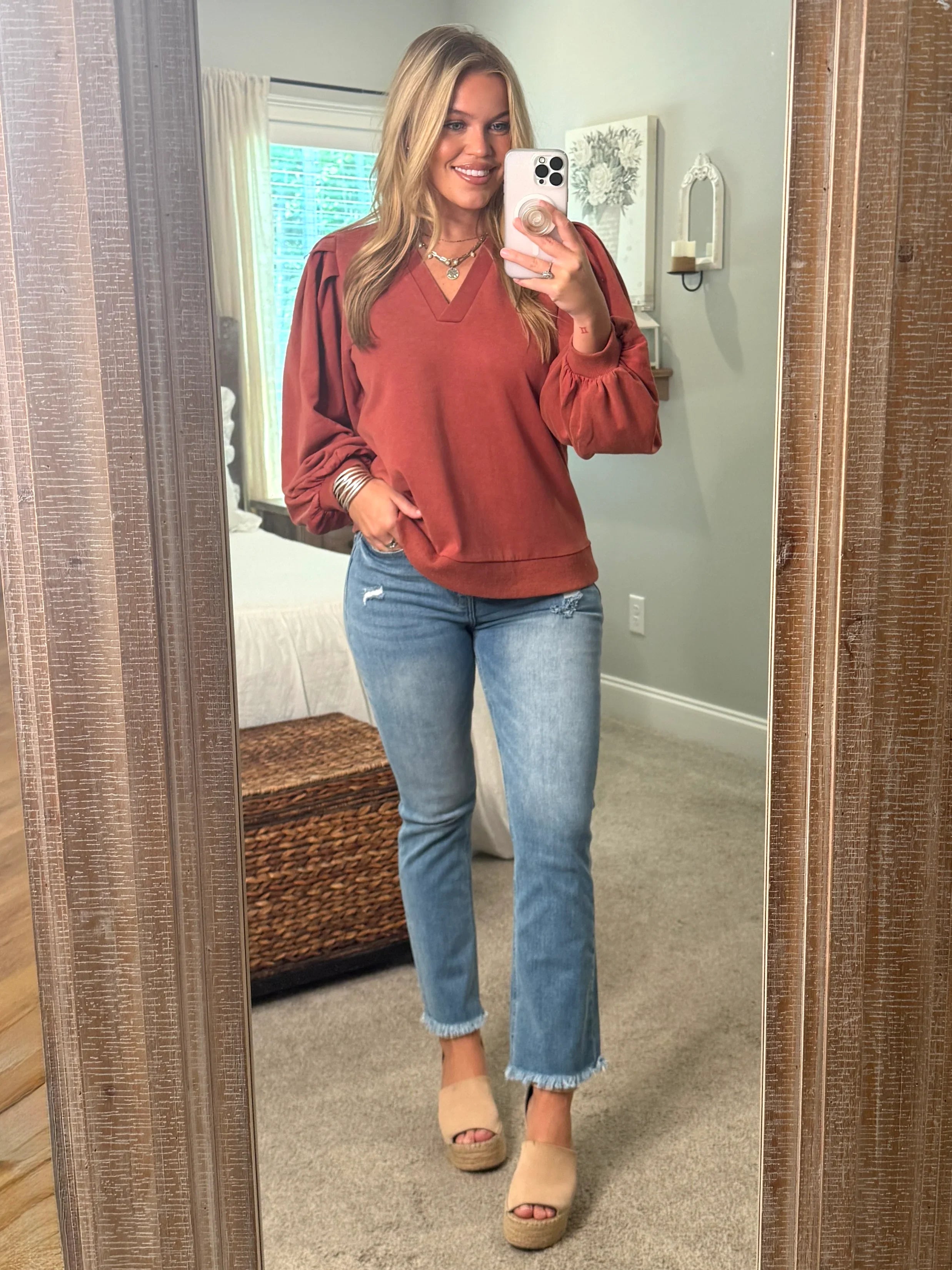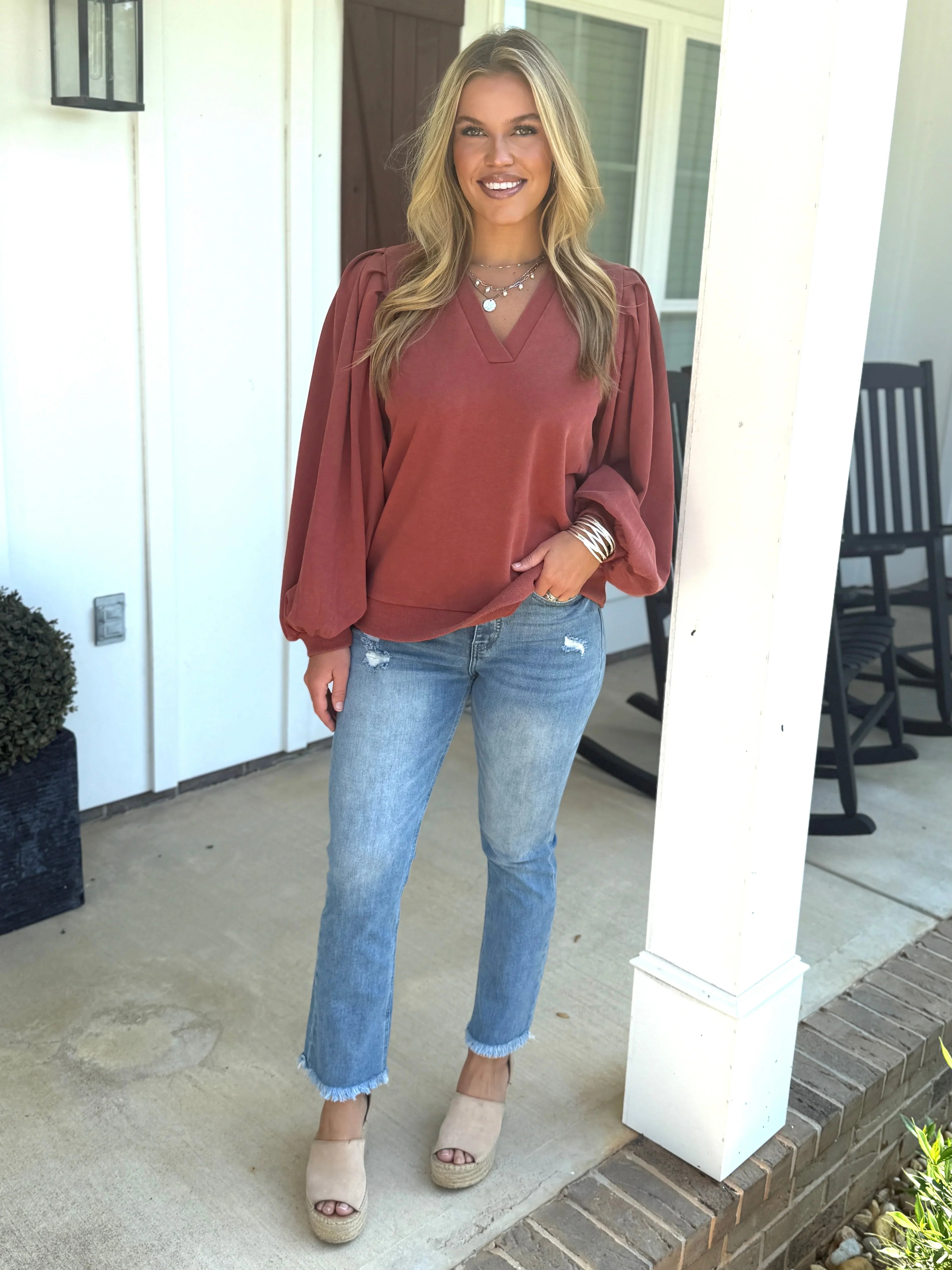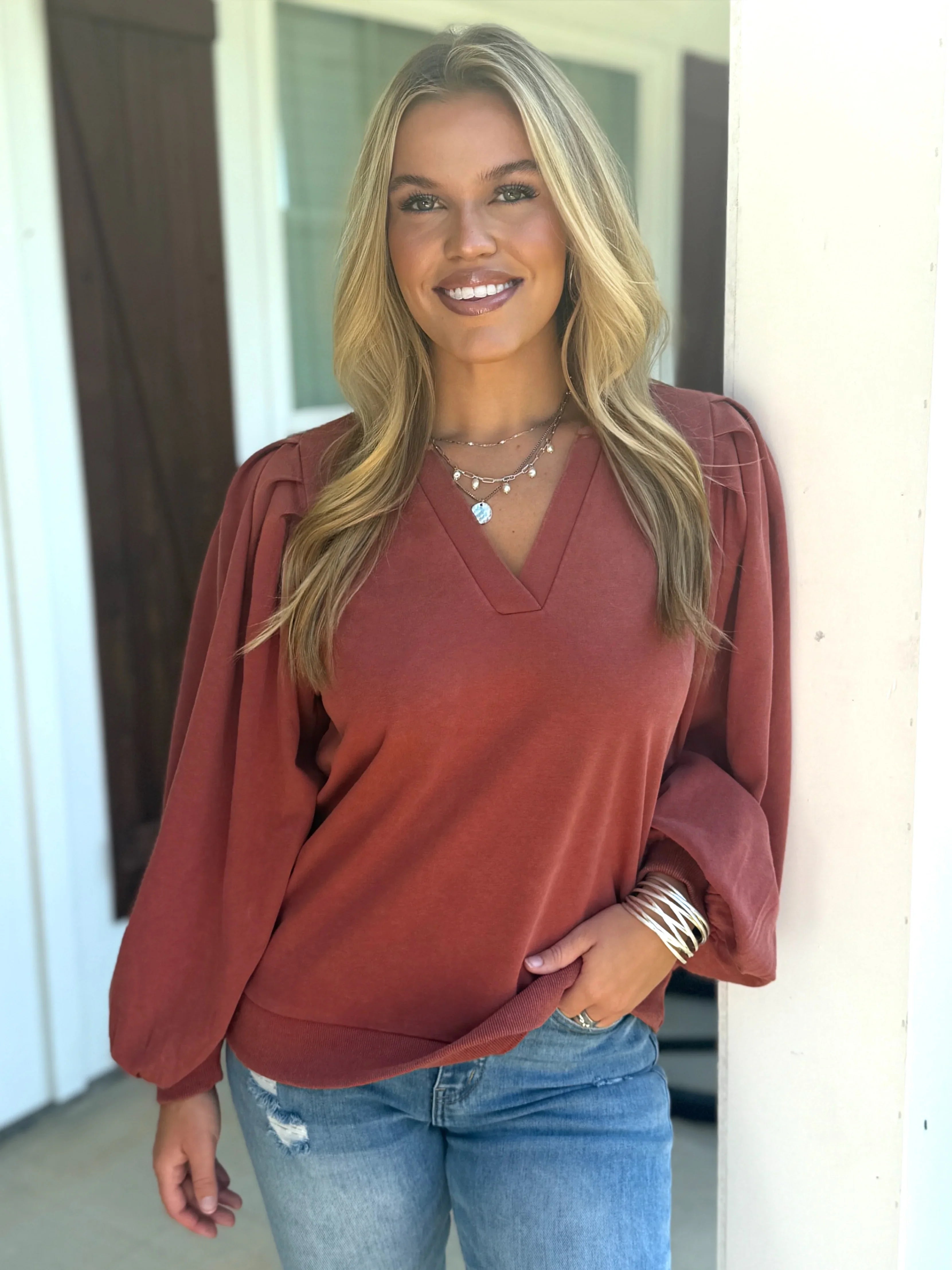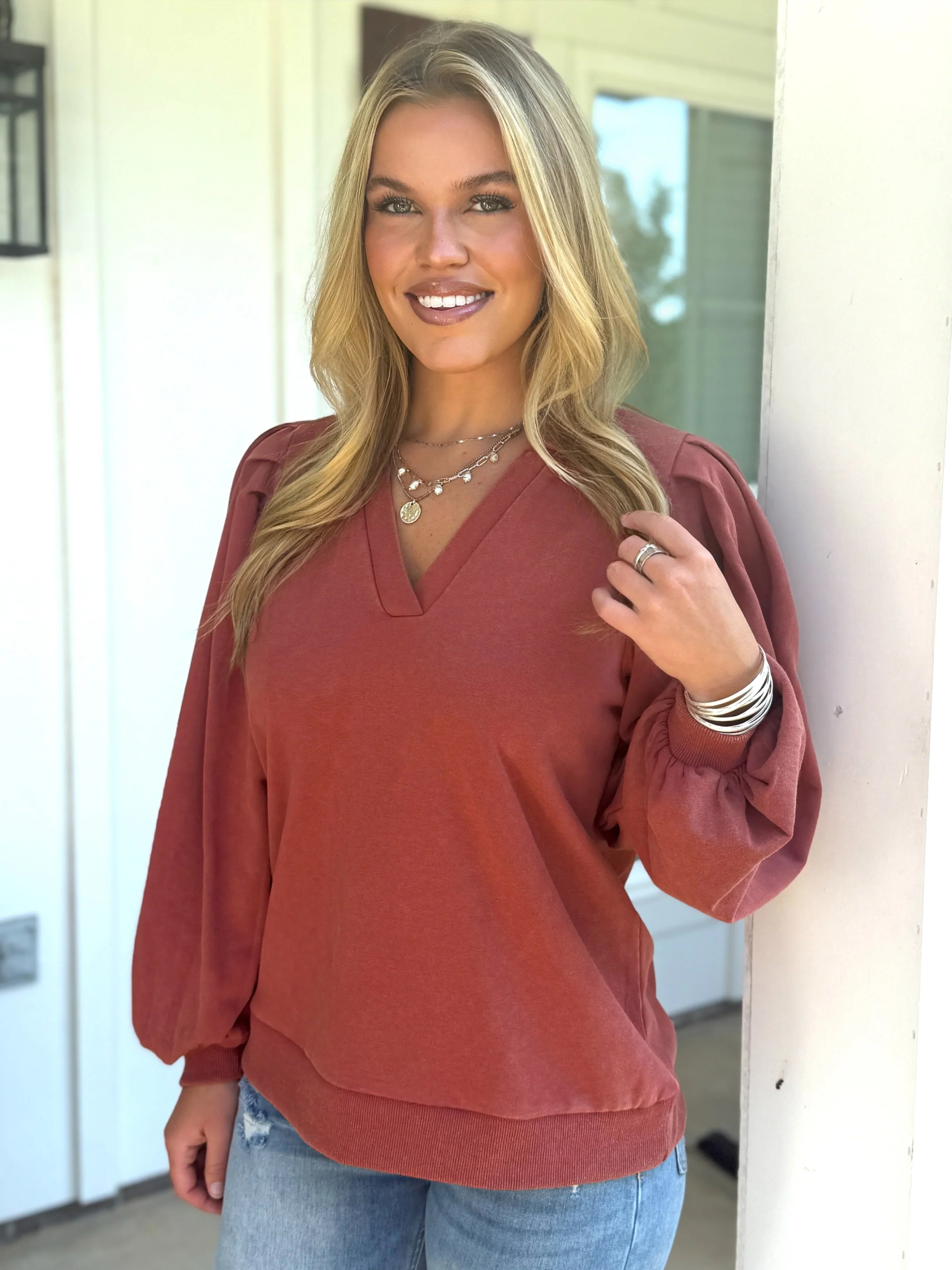 WRENLEY Balloon Sleeve Sweatshirt Top (Copper)