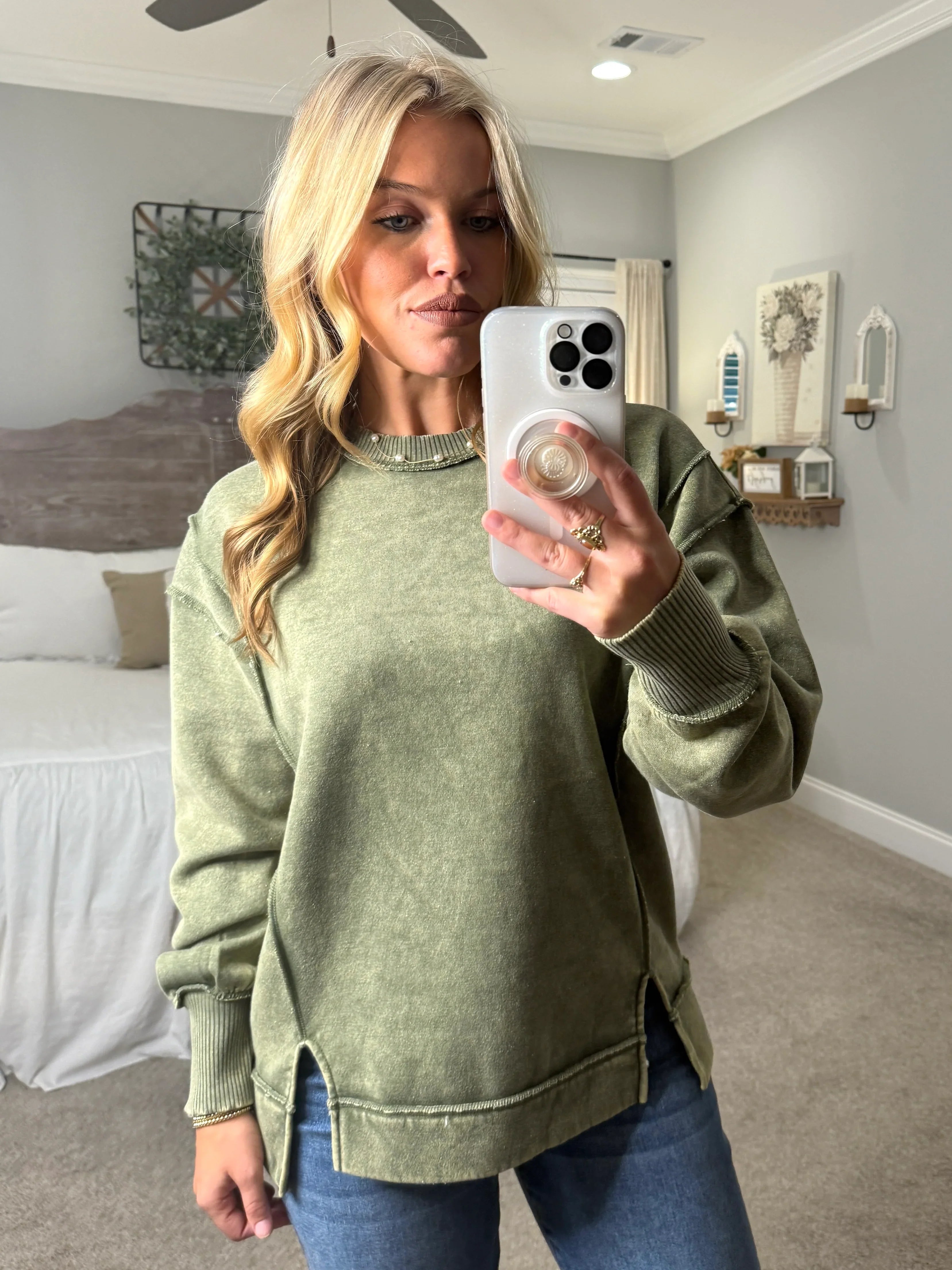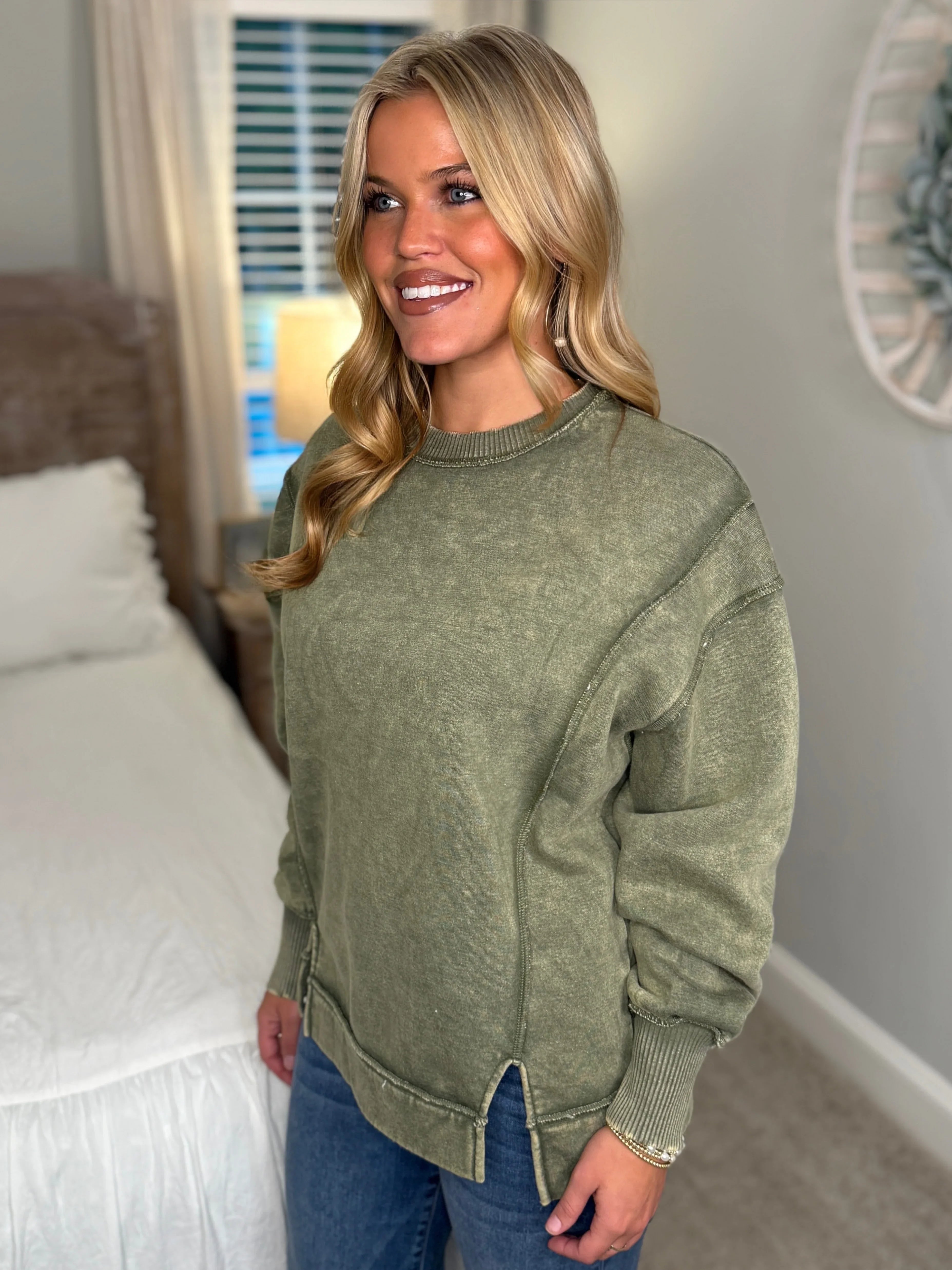 MILA Exposed Seam Sweatshirt (Olive)