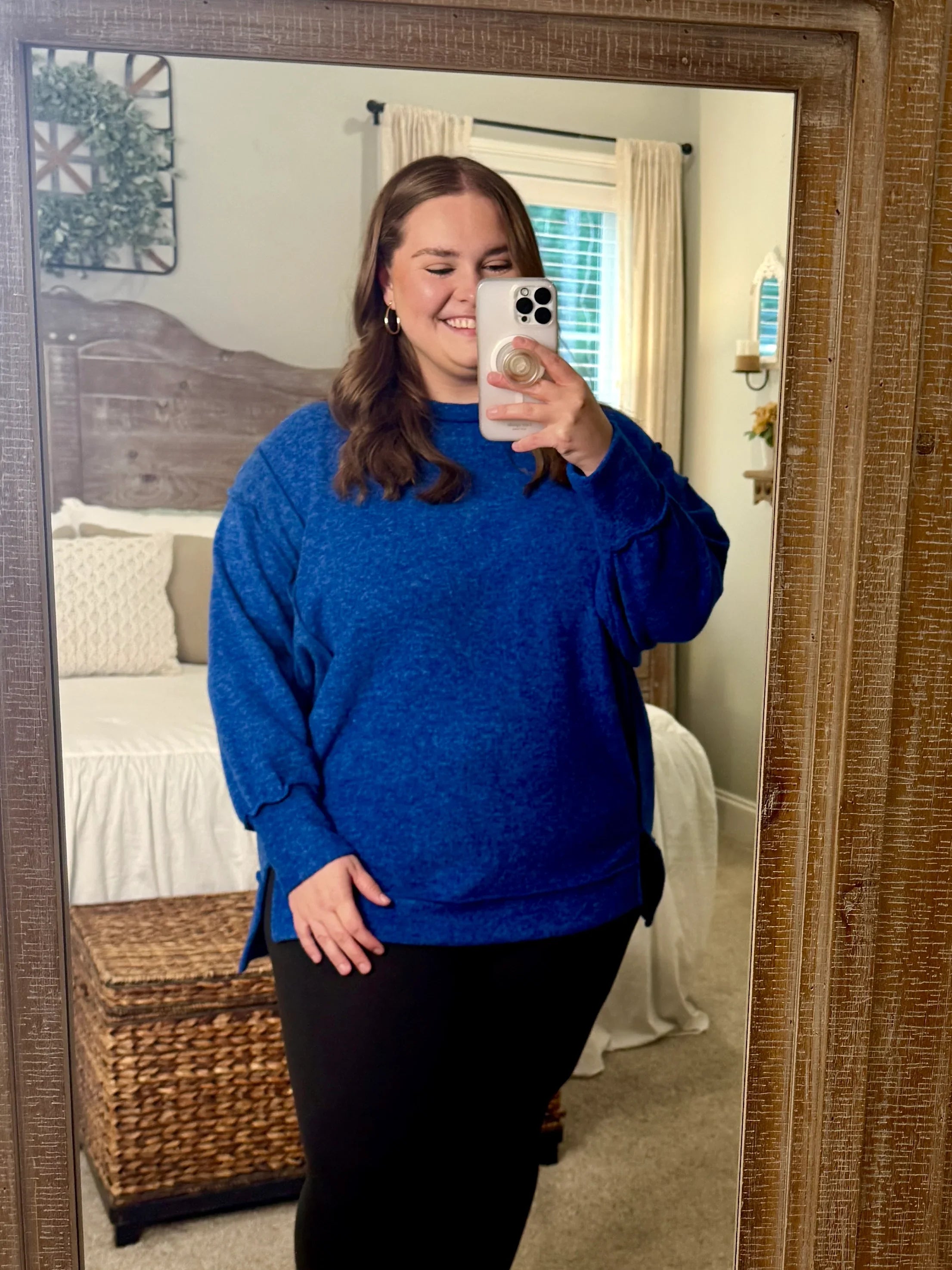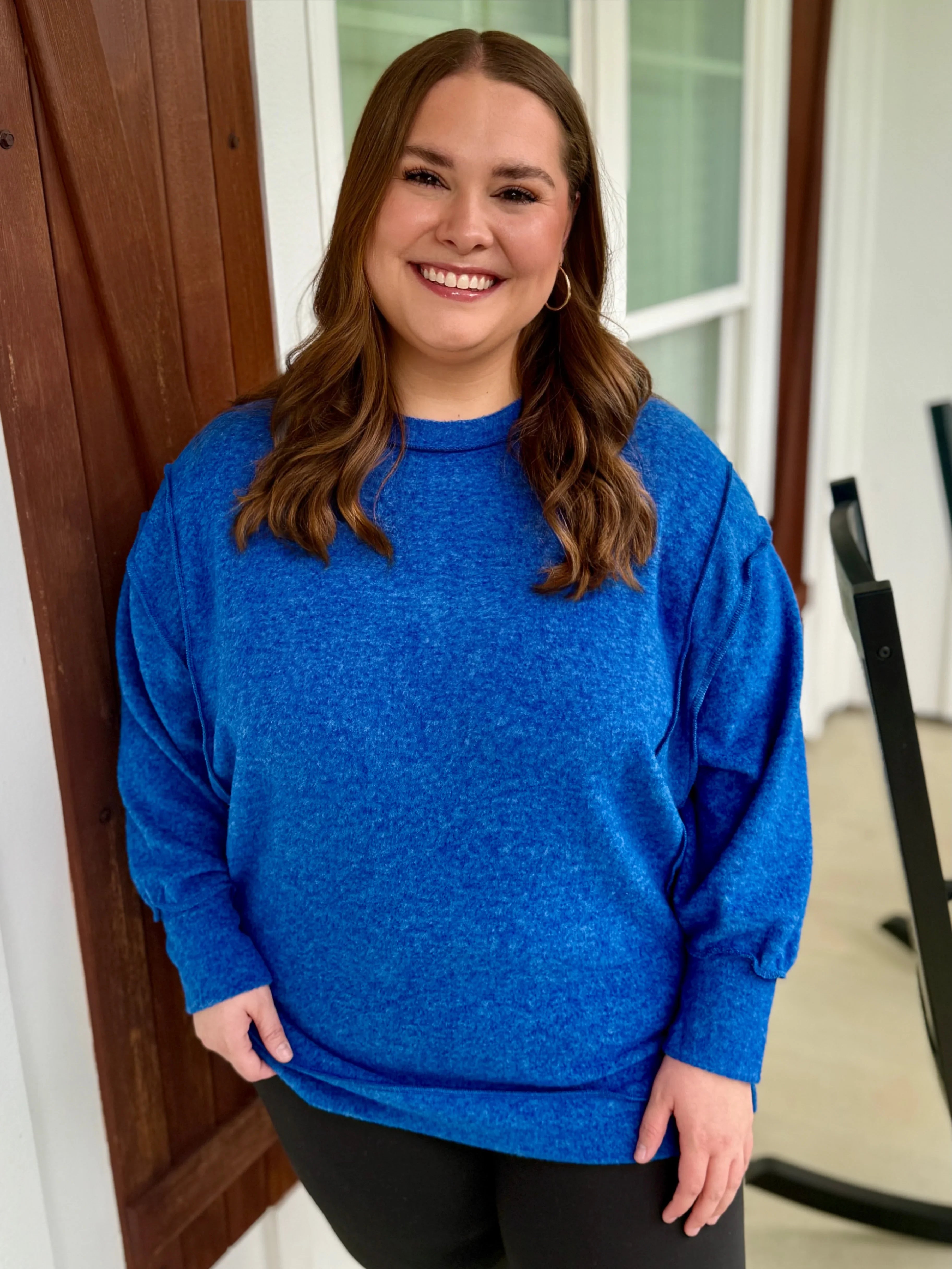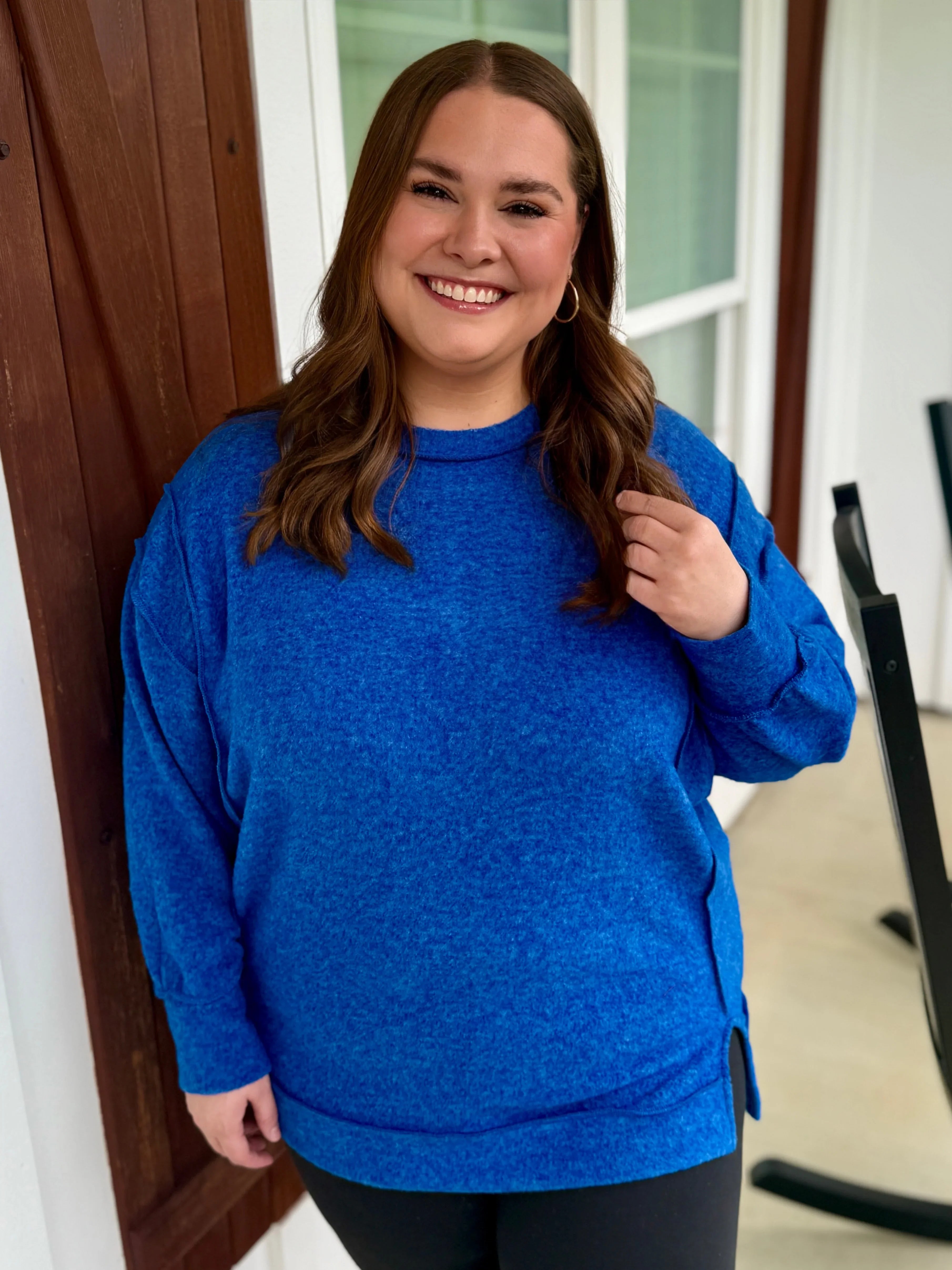 SOPHIA Oversized Brushed Sweater Top (Blue) (S-3X)