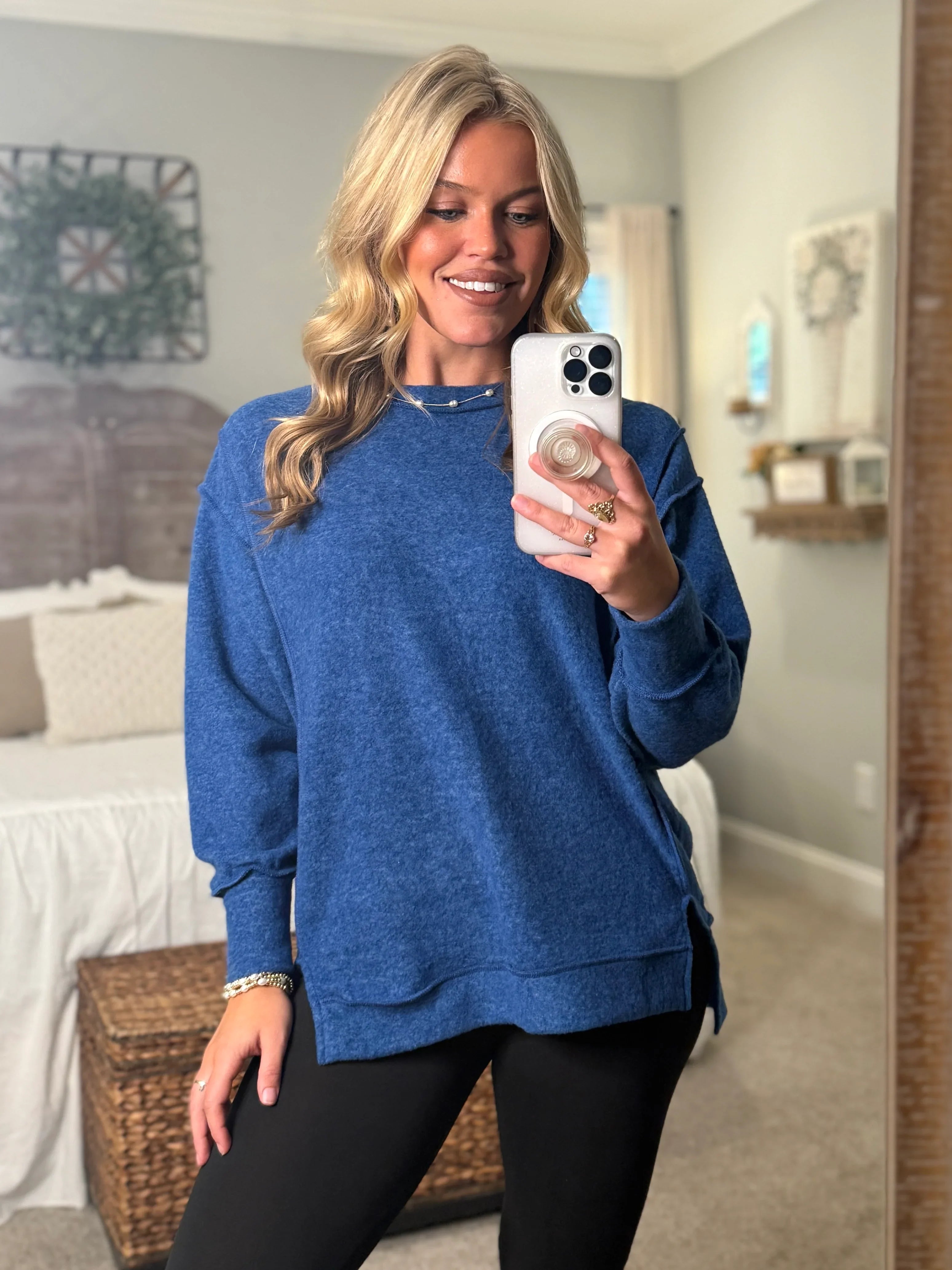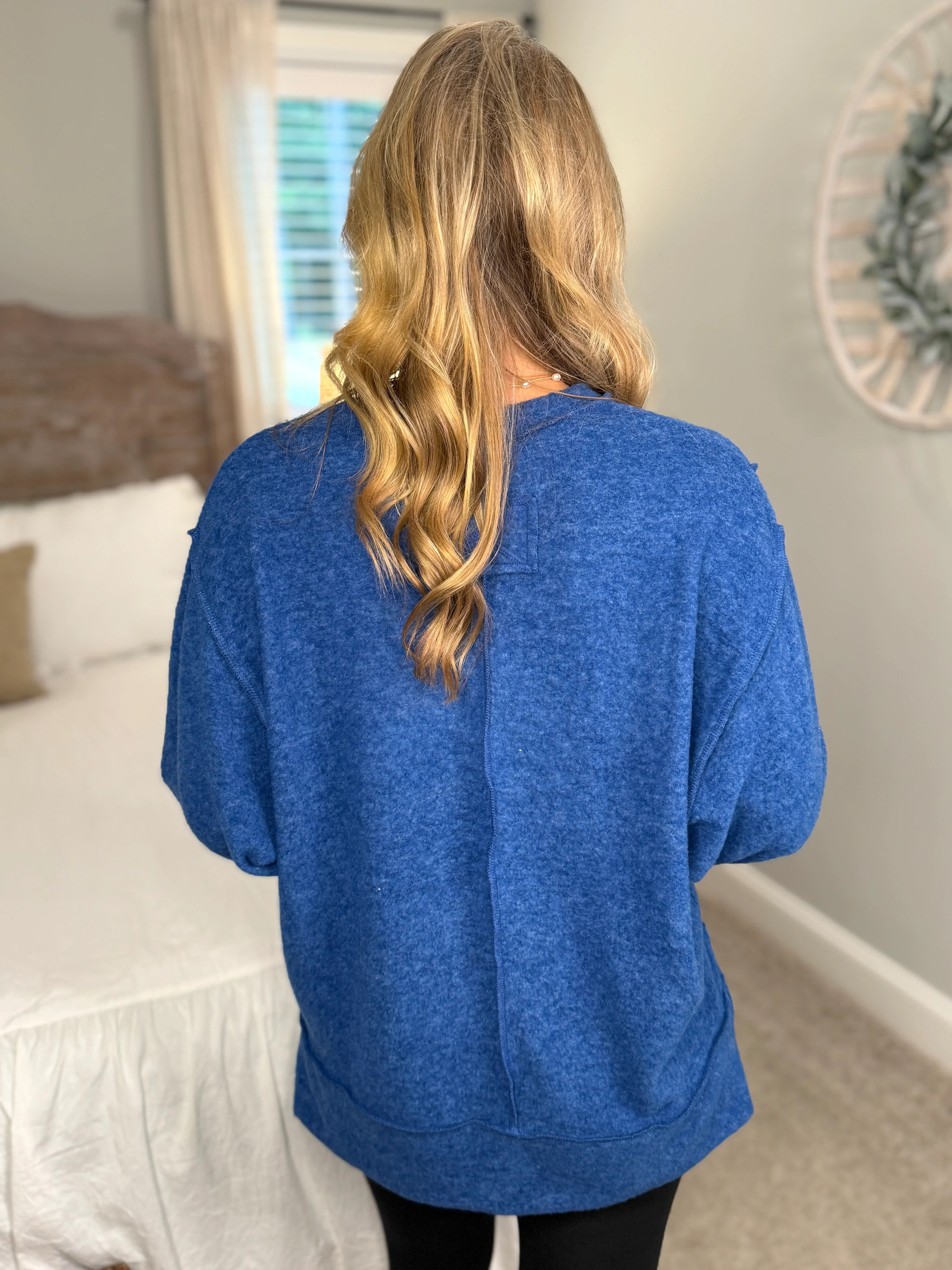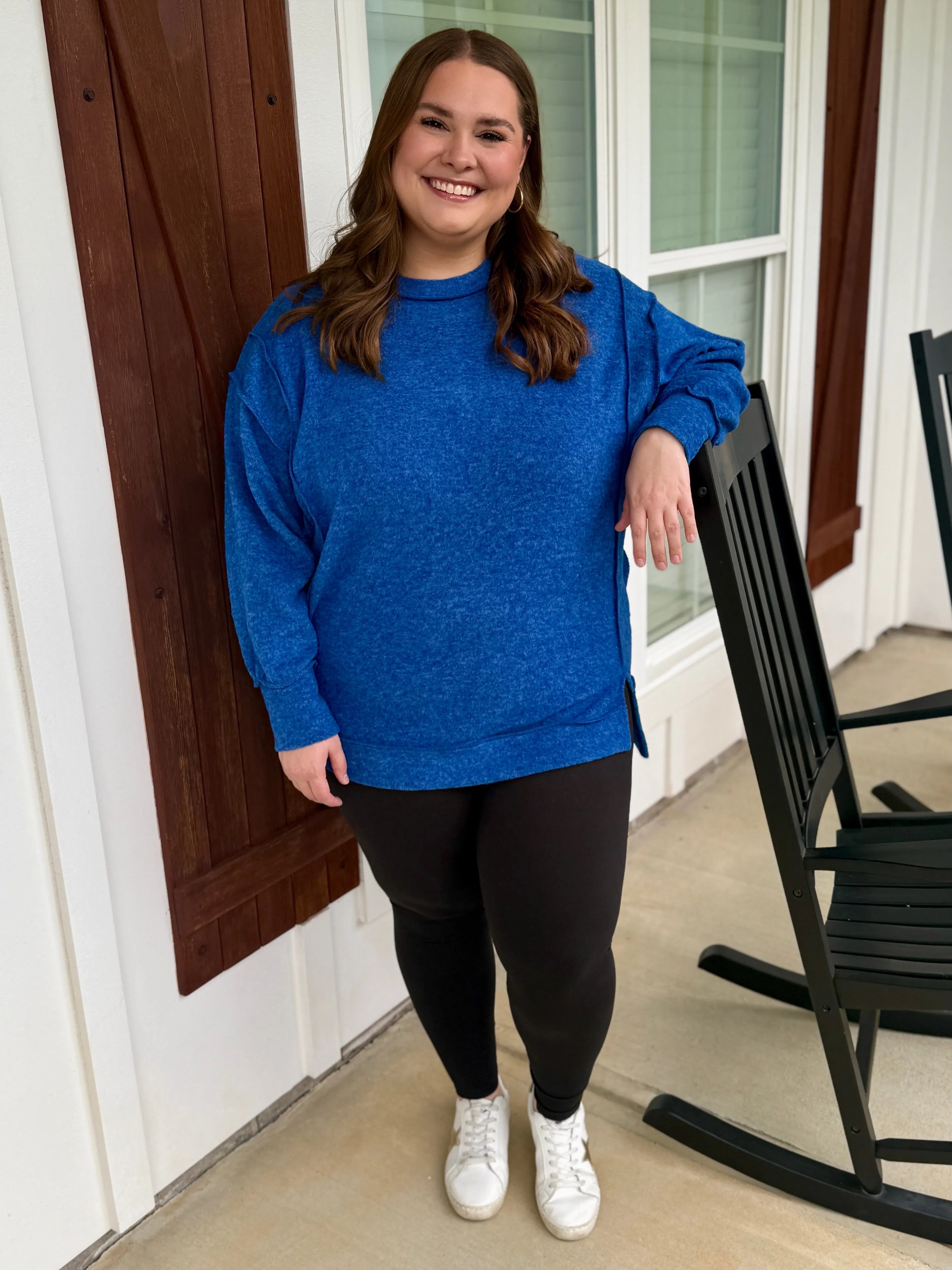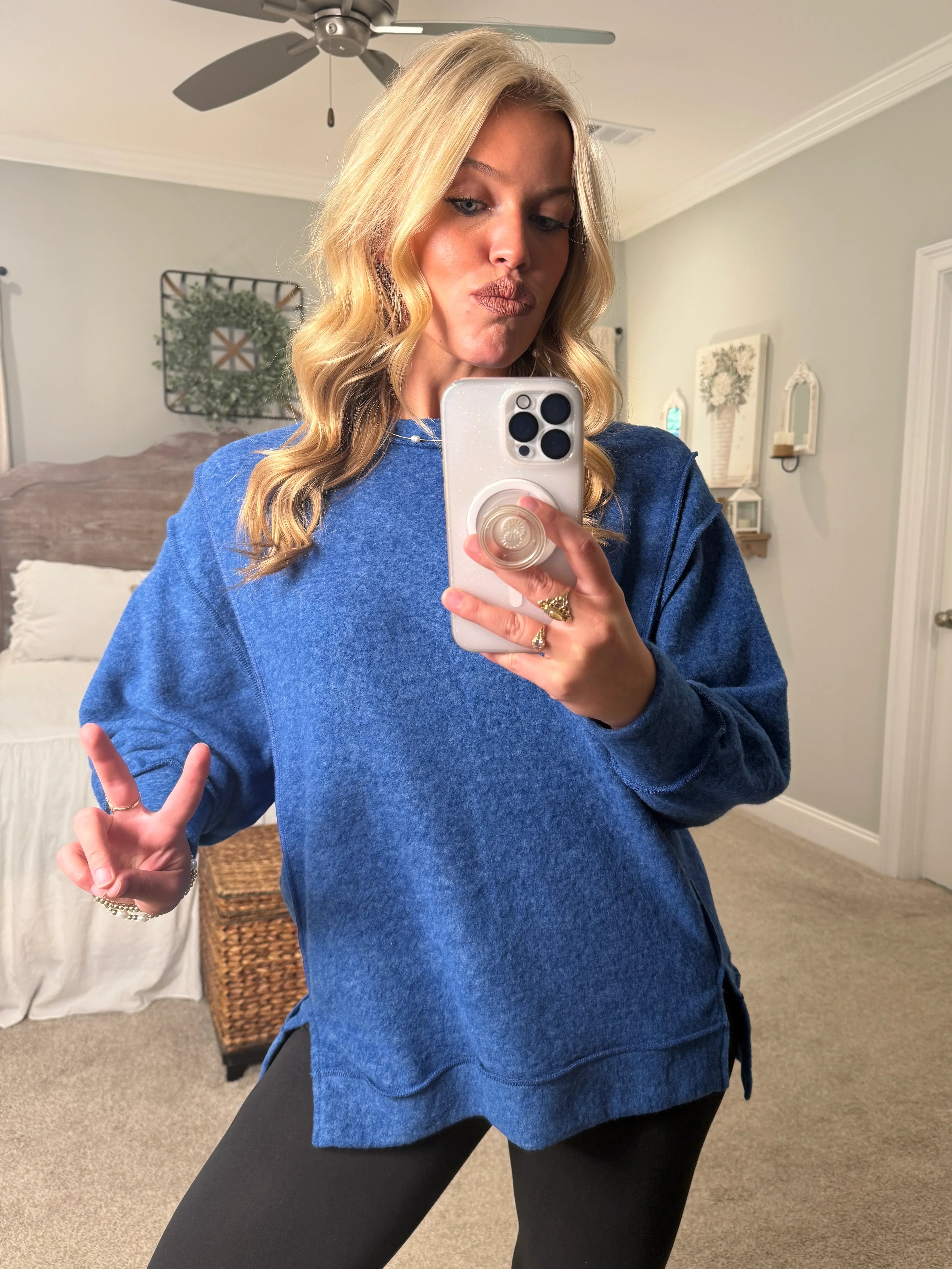 SOPHIA Oversized Brushed Sweater Top (Blue) (S-3X)