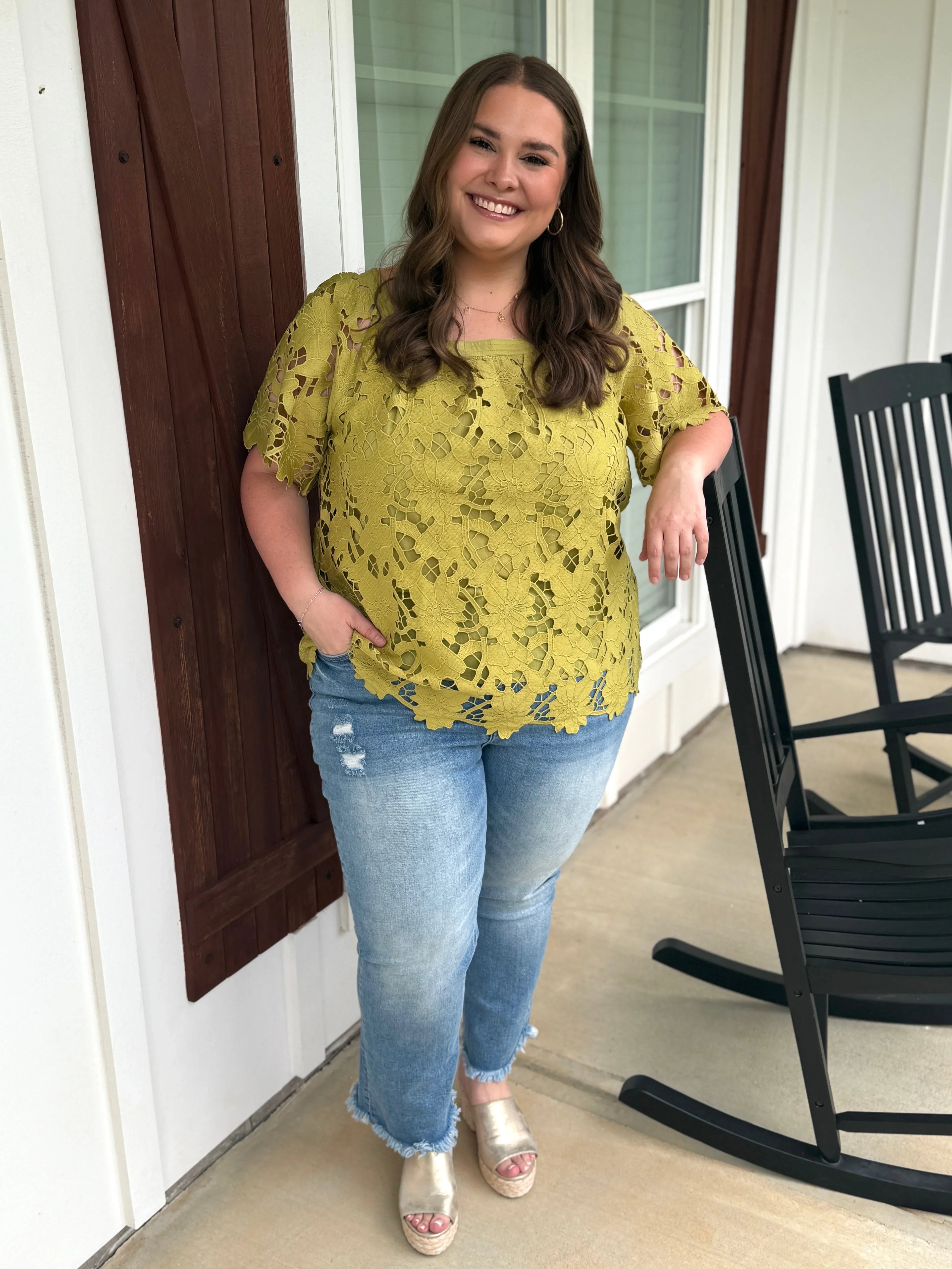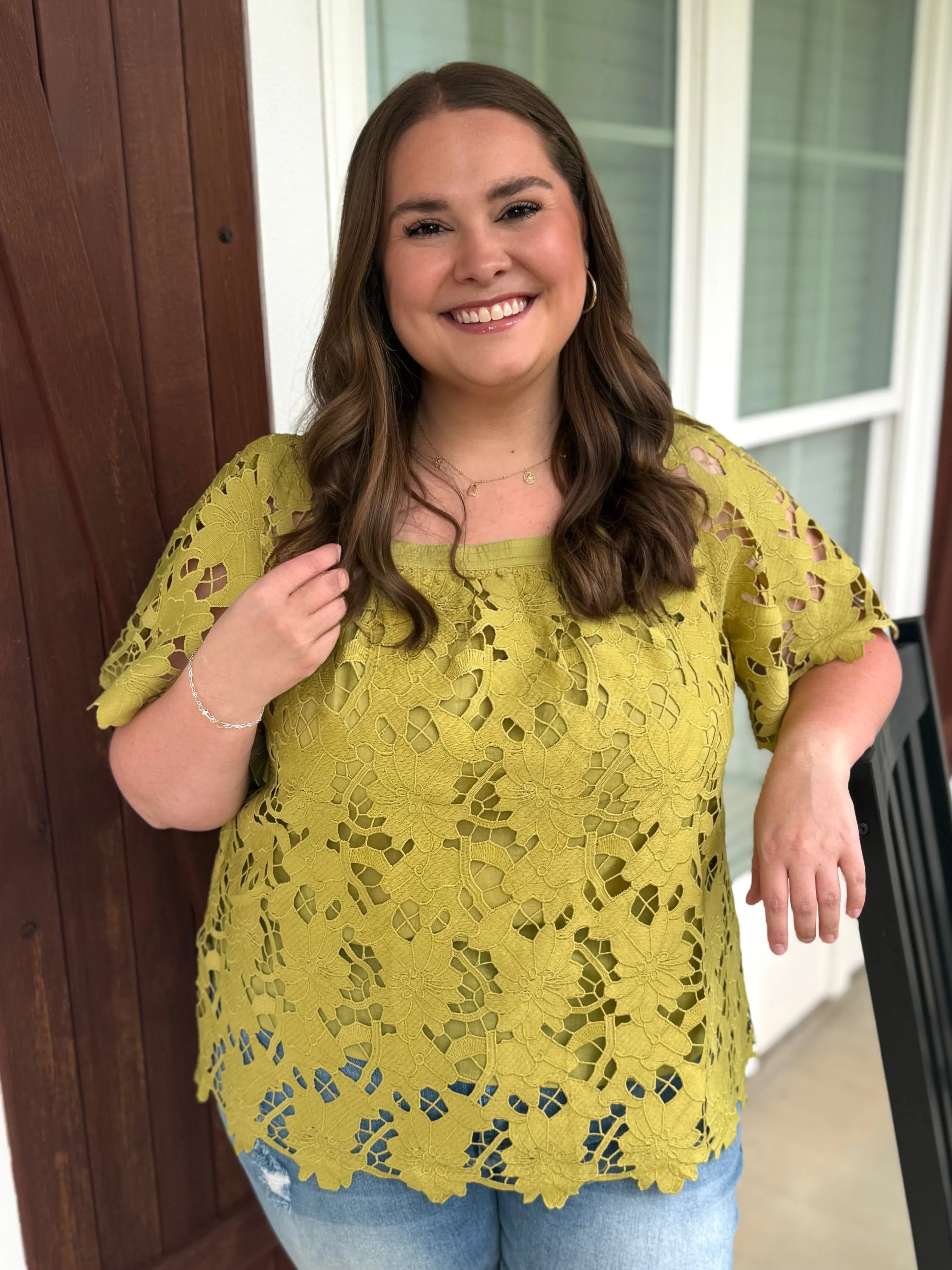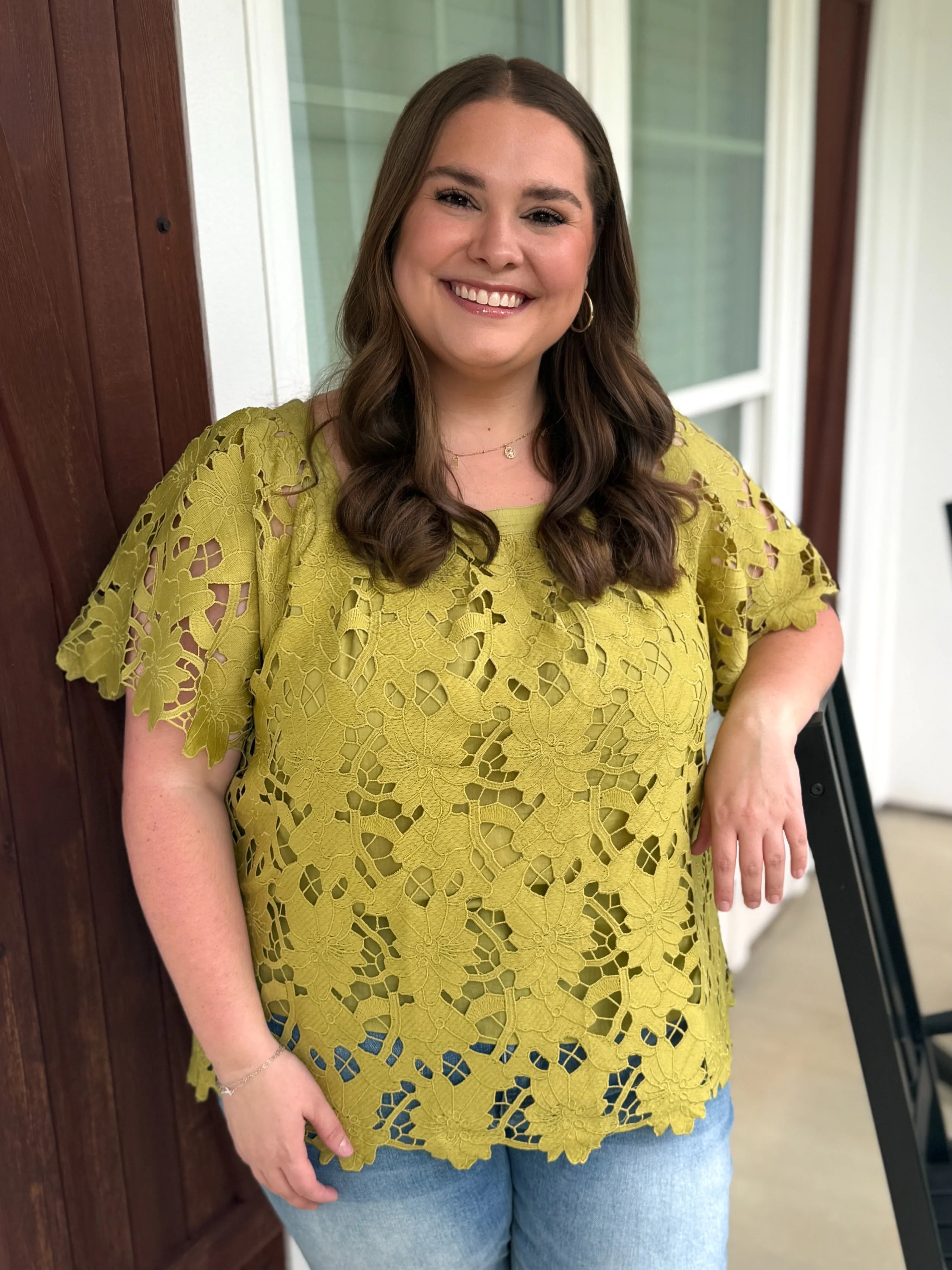 KIMBERLY Plus Size Floral Lace Top (Green)