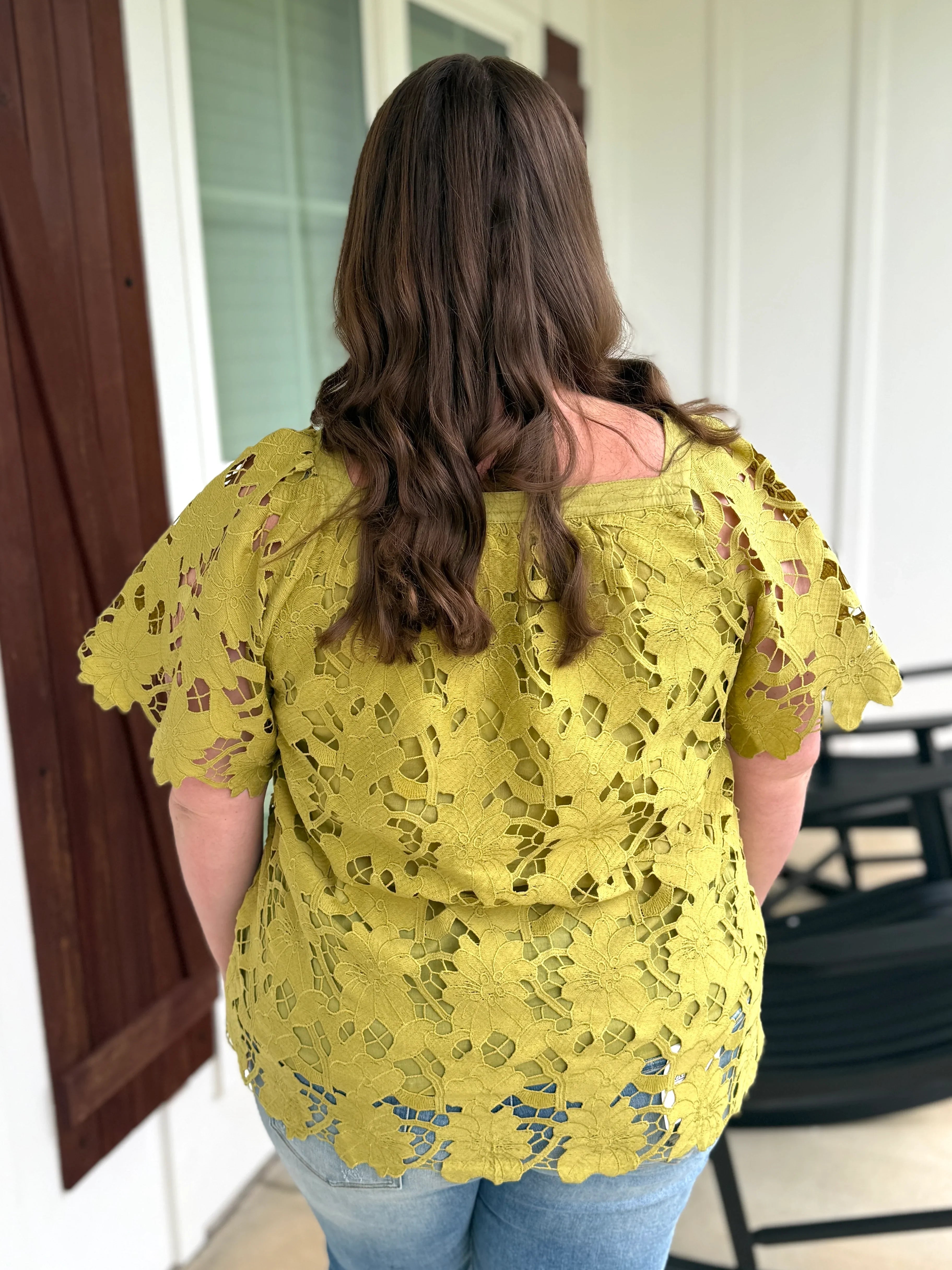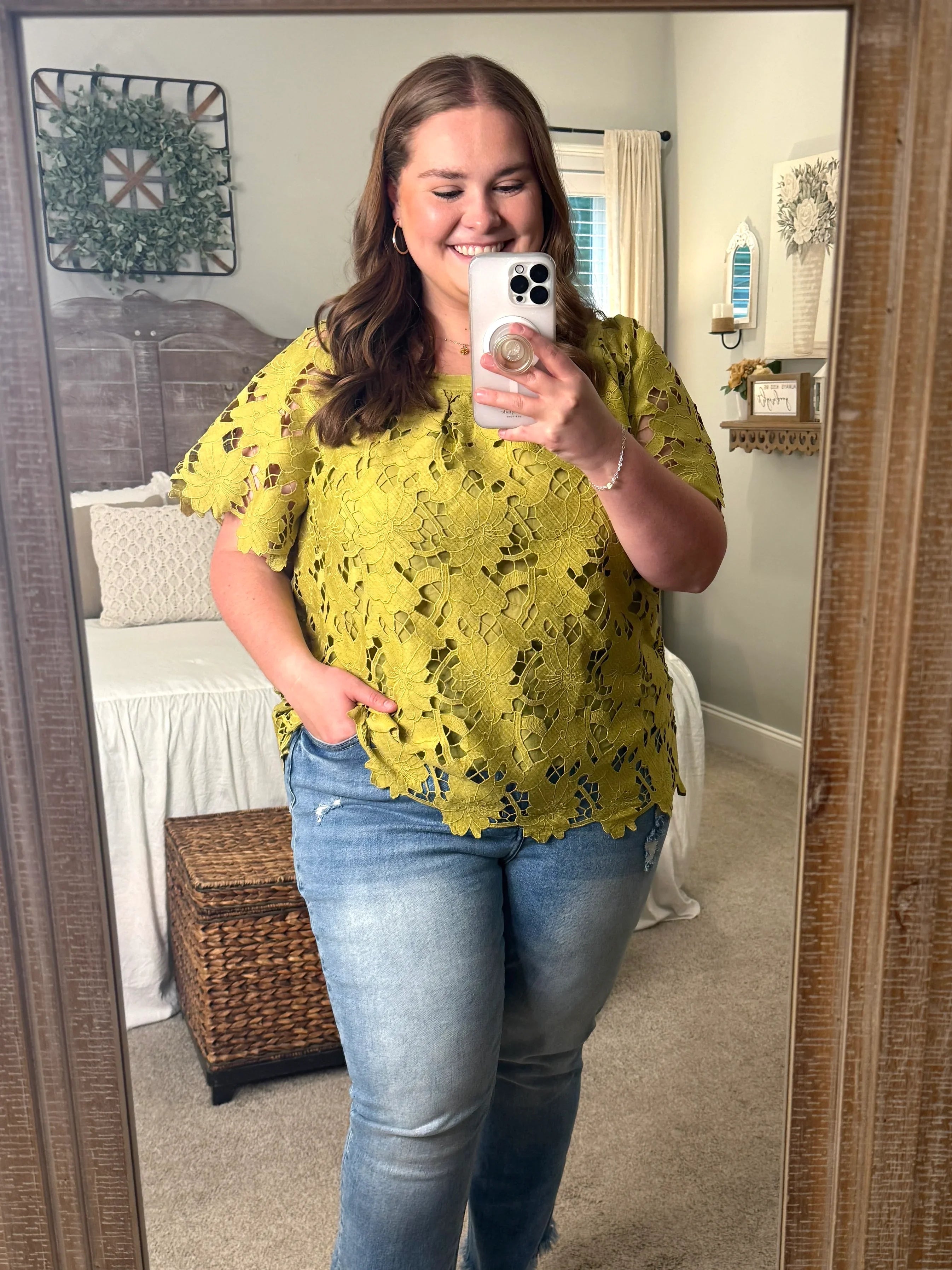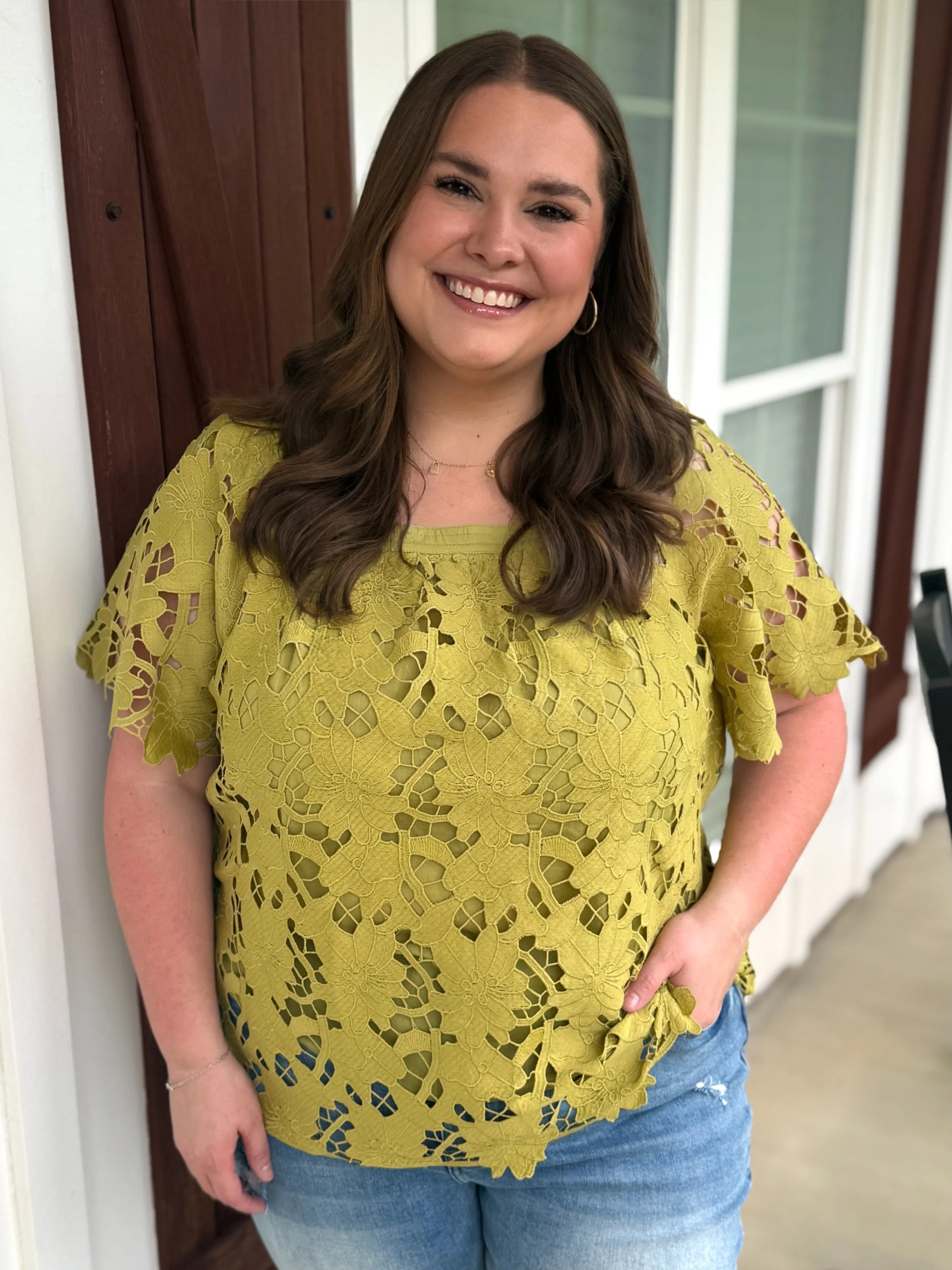 KIMBERLY Plus Size Floral Lace Top (Green)