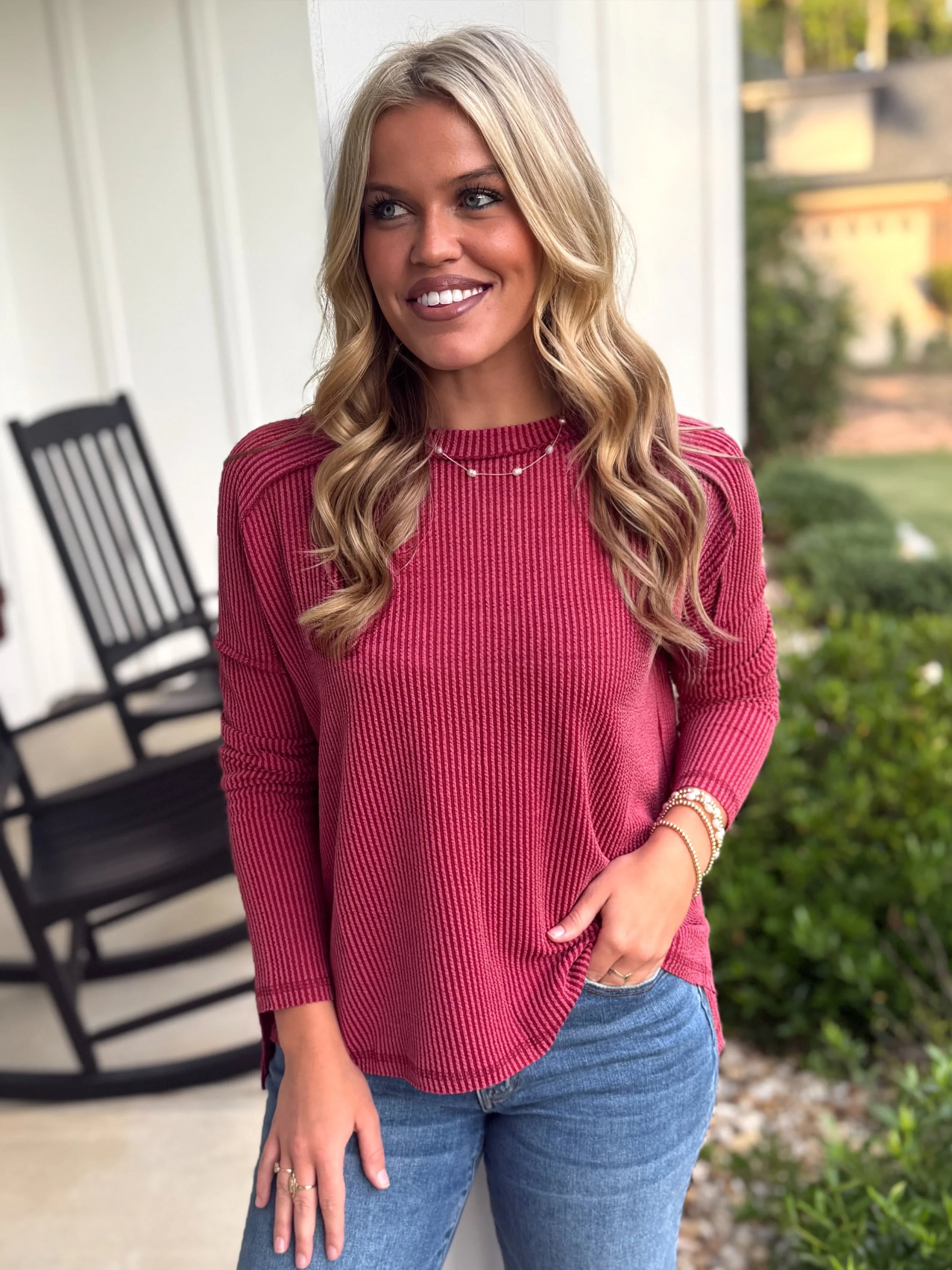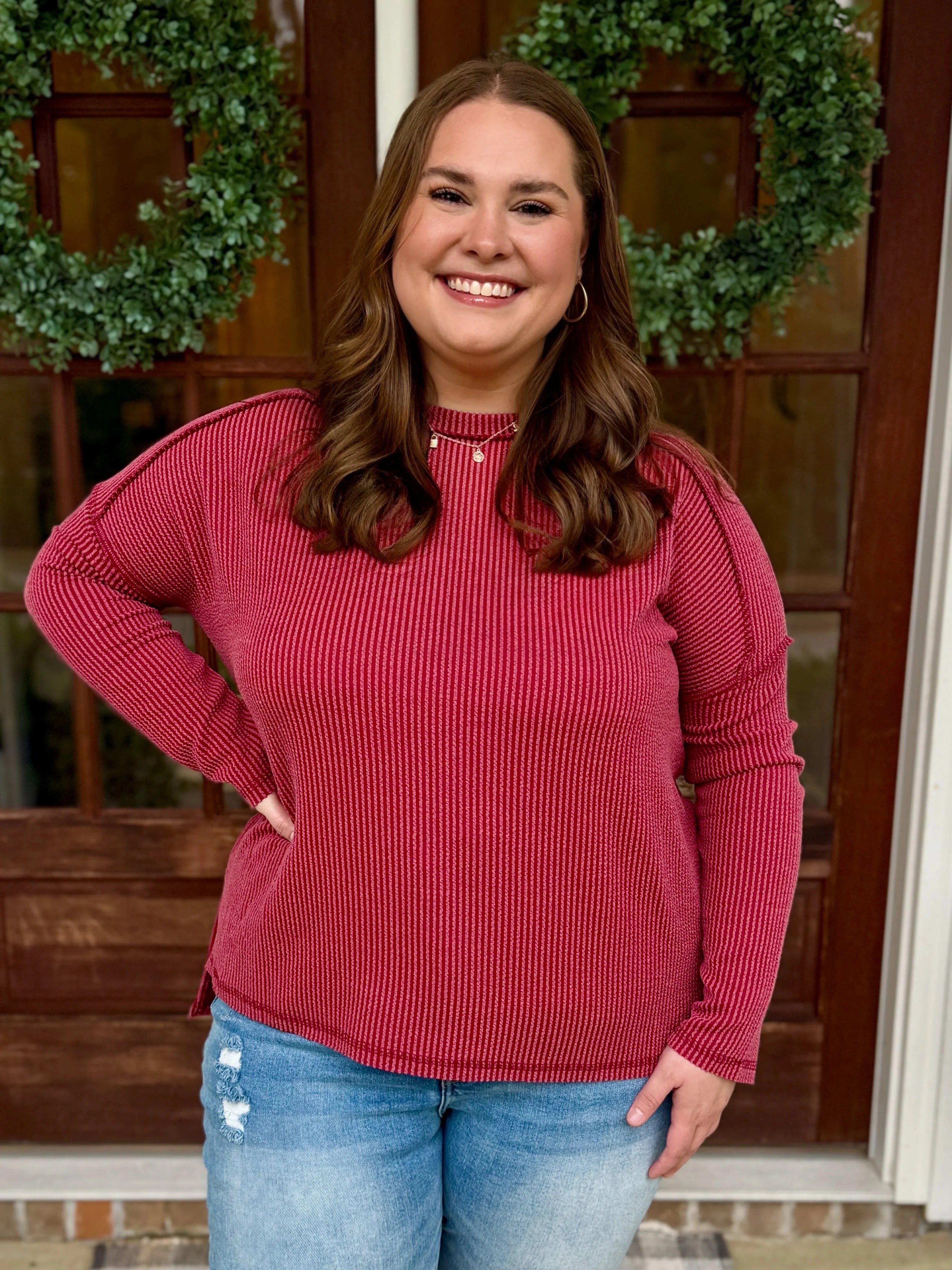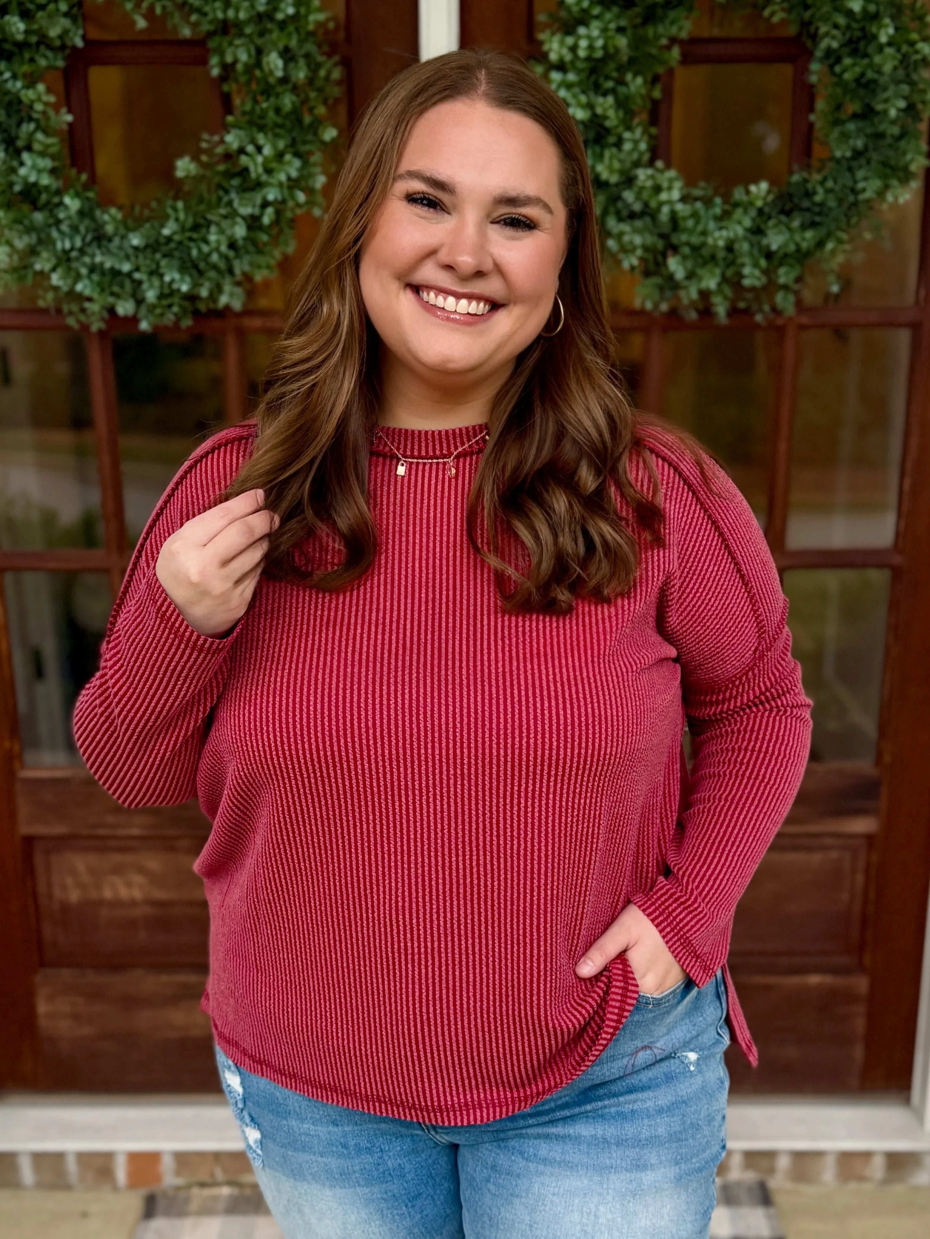 SAMANTHA Raised Ribbed Top (Burgundy) (S-3X)