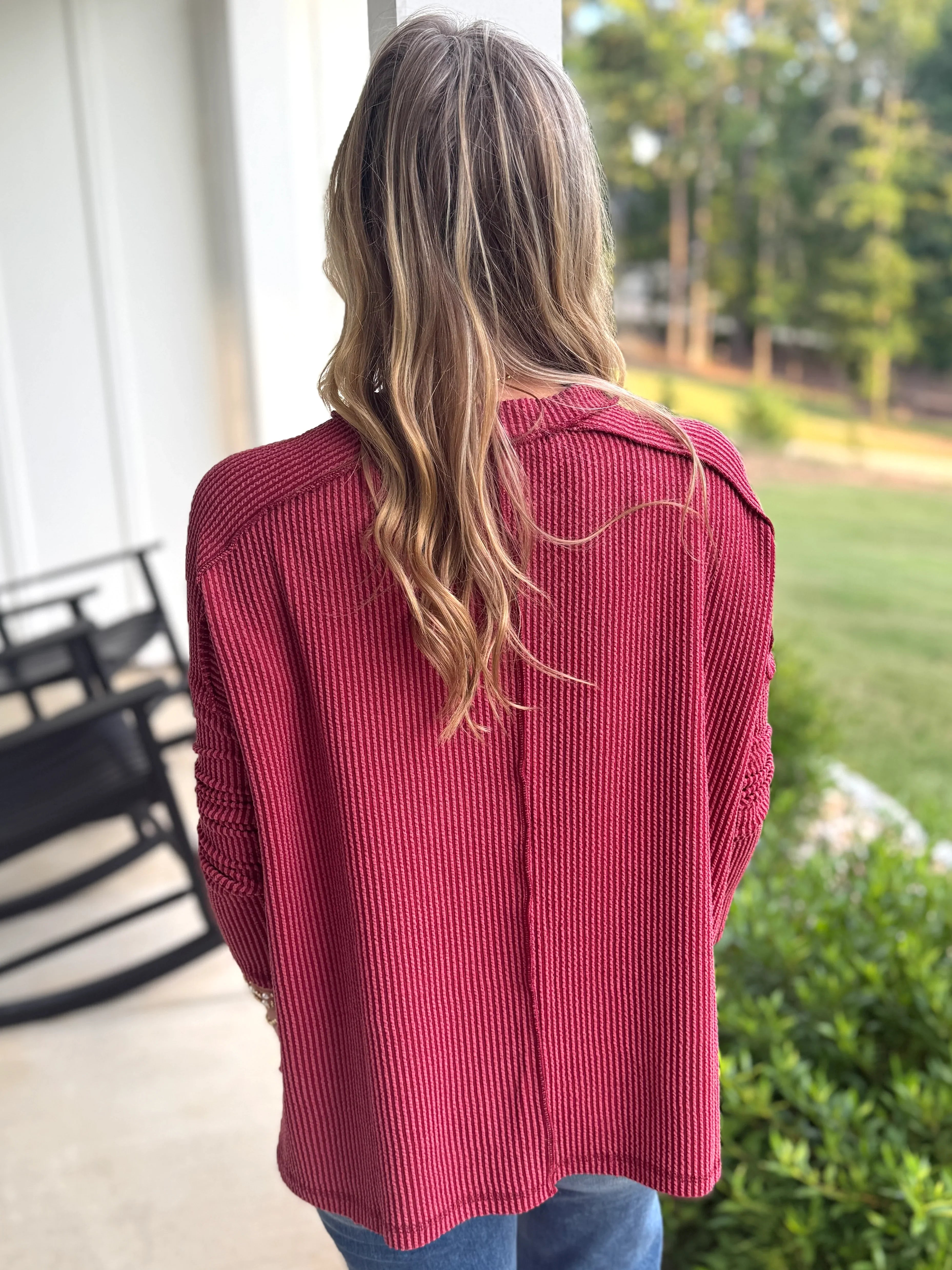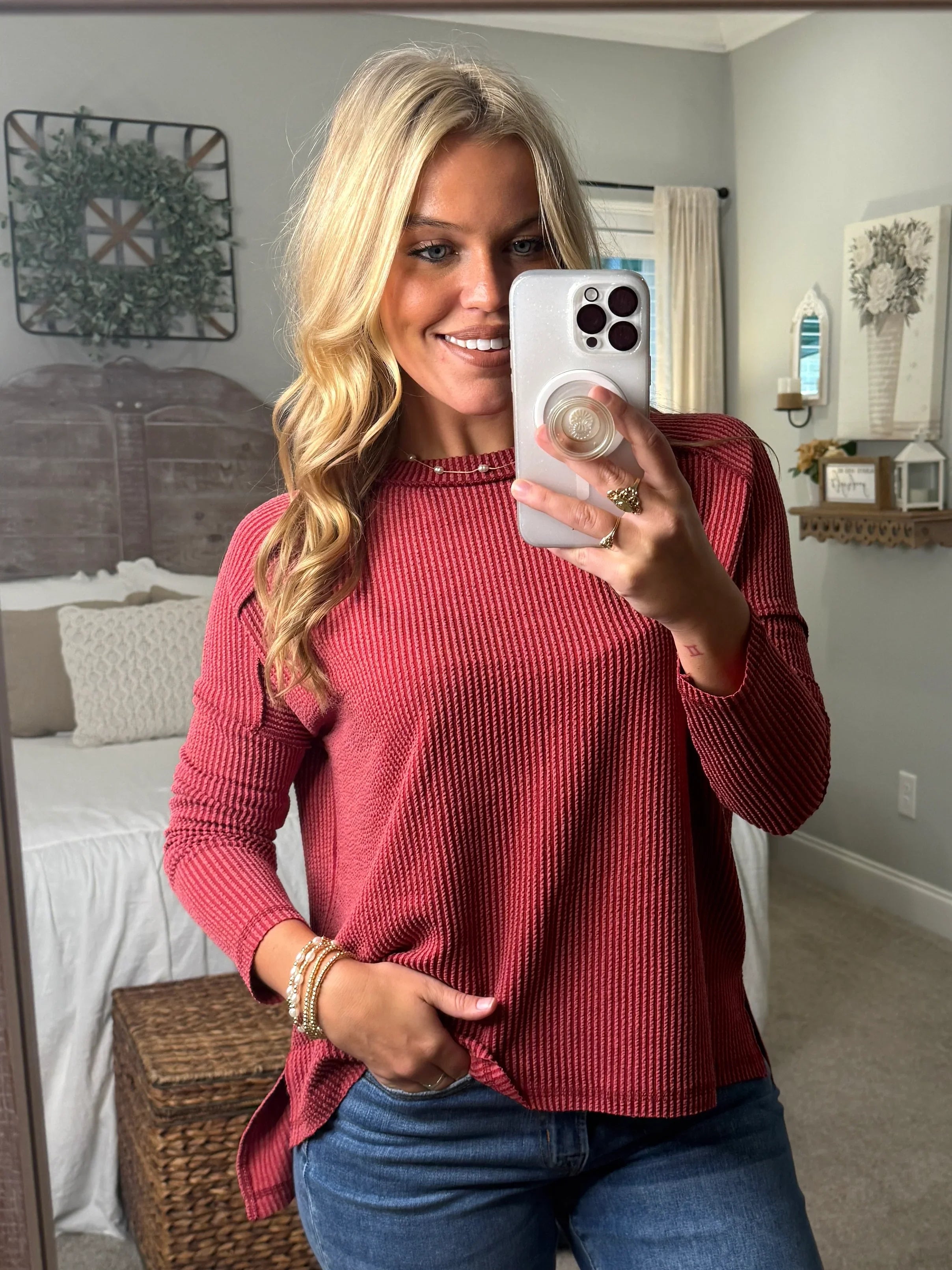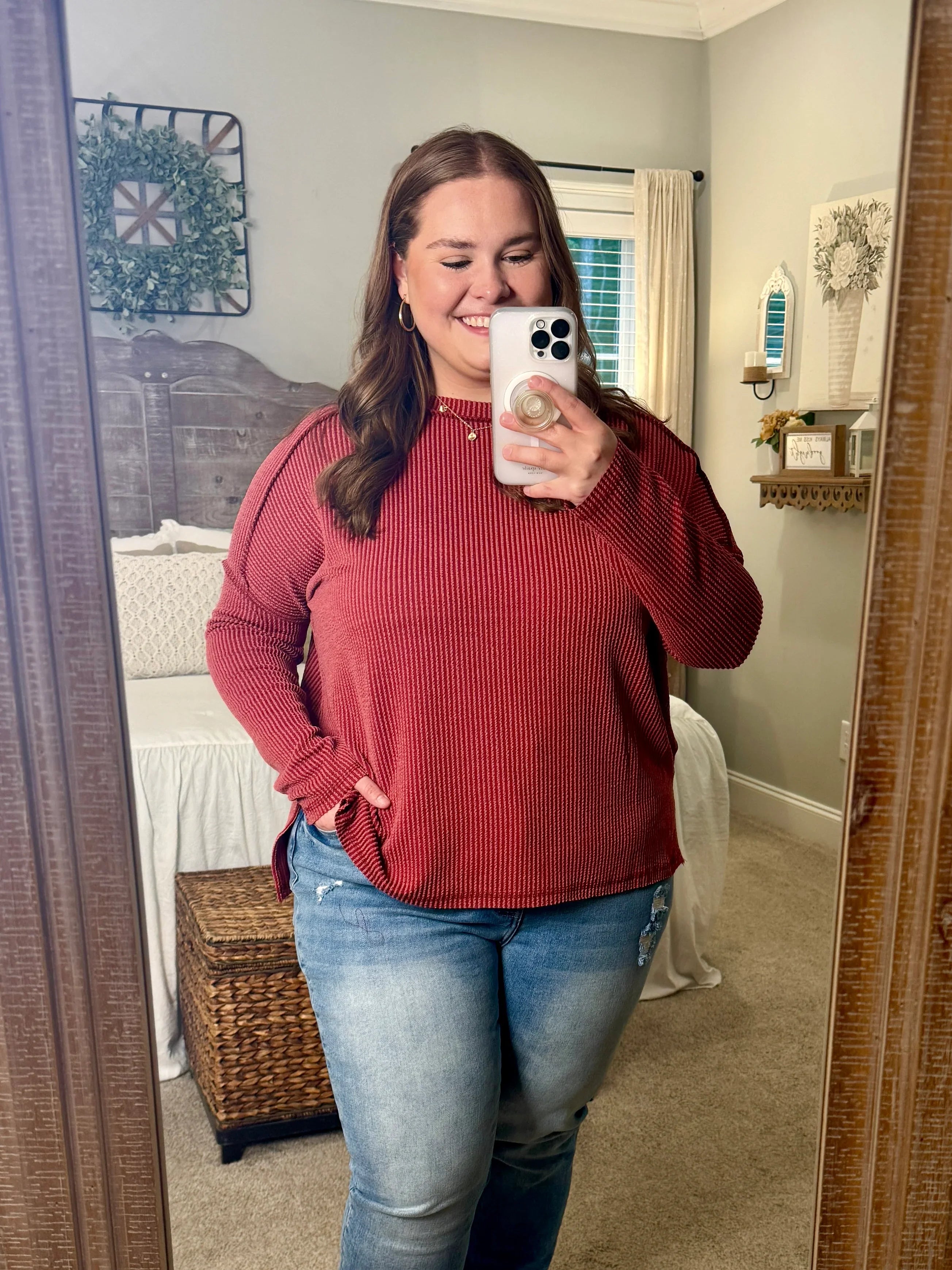 SAMANTHA Raised Ribbed Top (Burgundy) (S-3X)