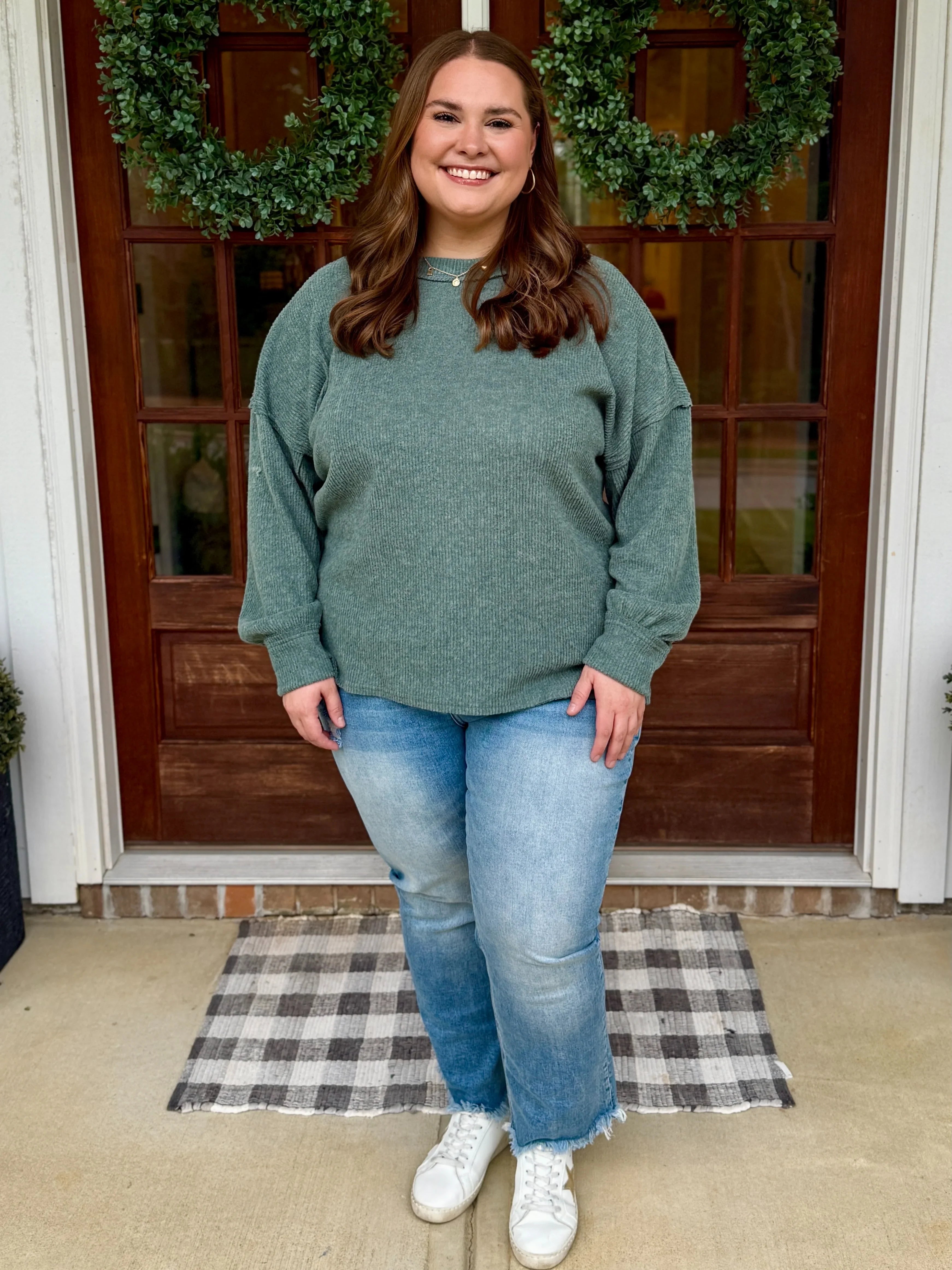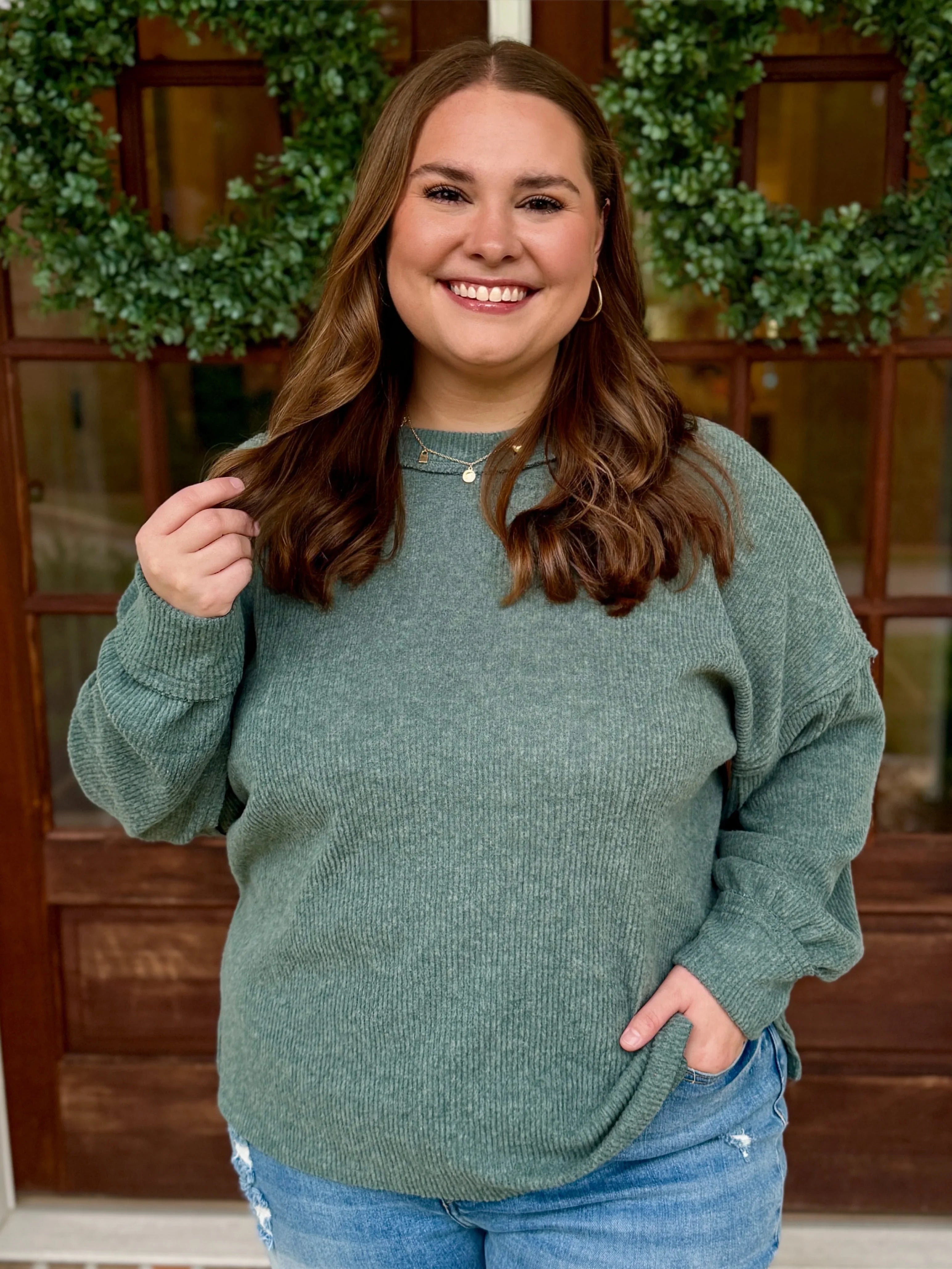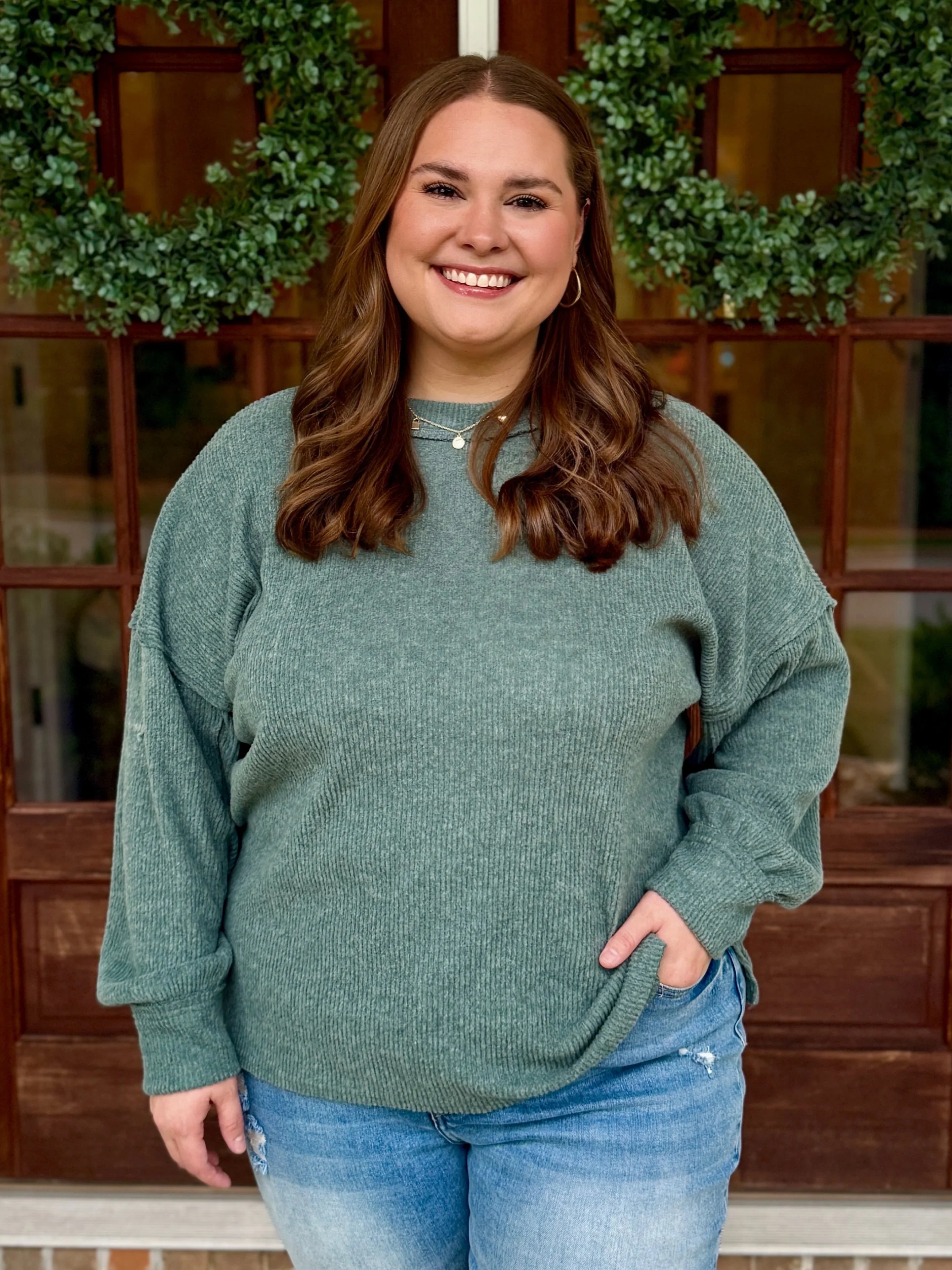 VICTORIA Ribbed Brushed Sweater Top (Jade) (S-3X)