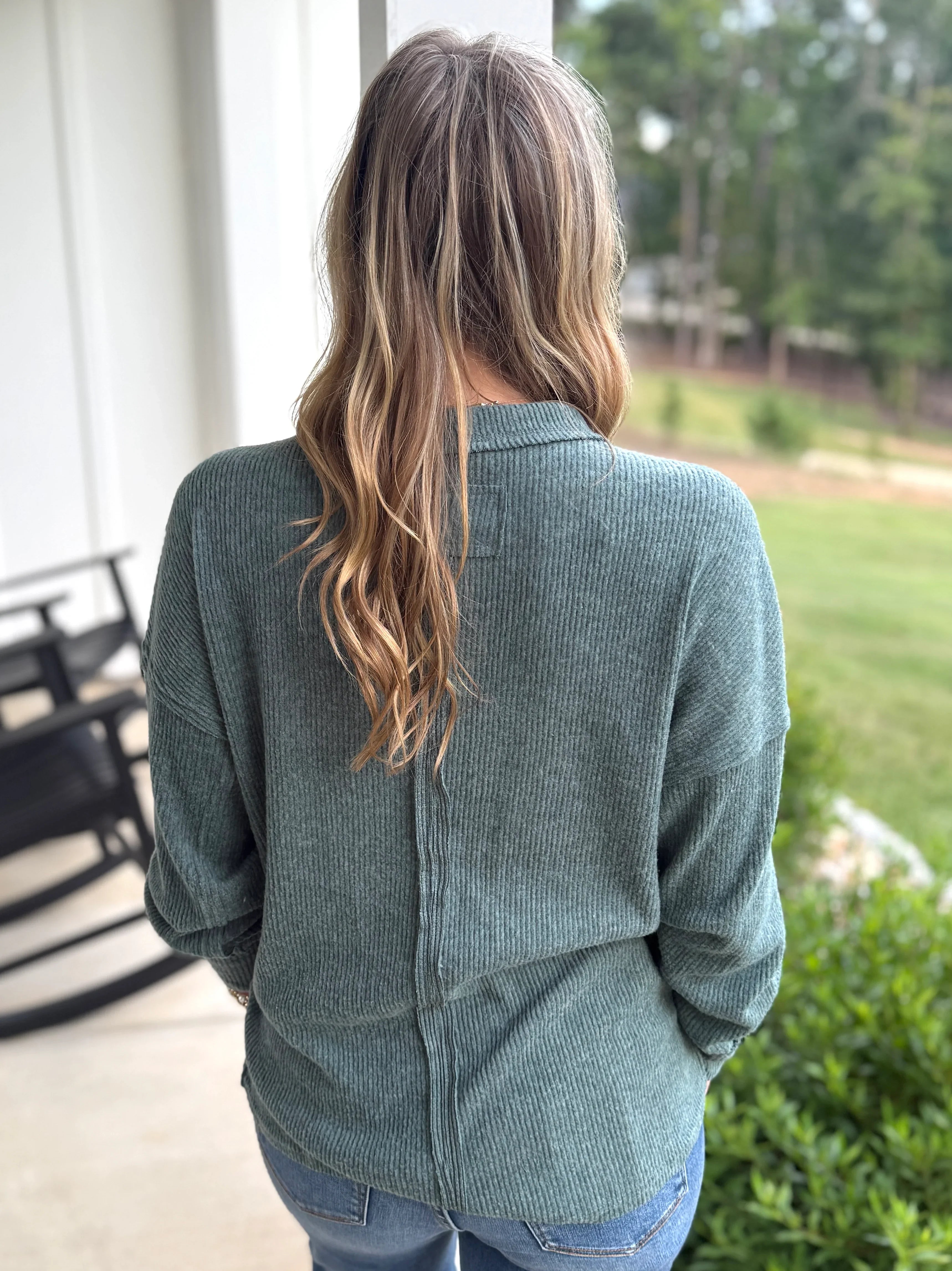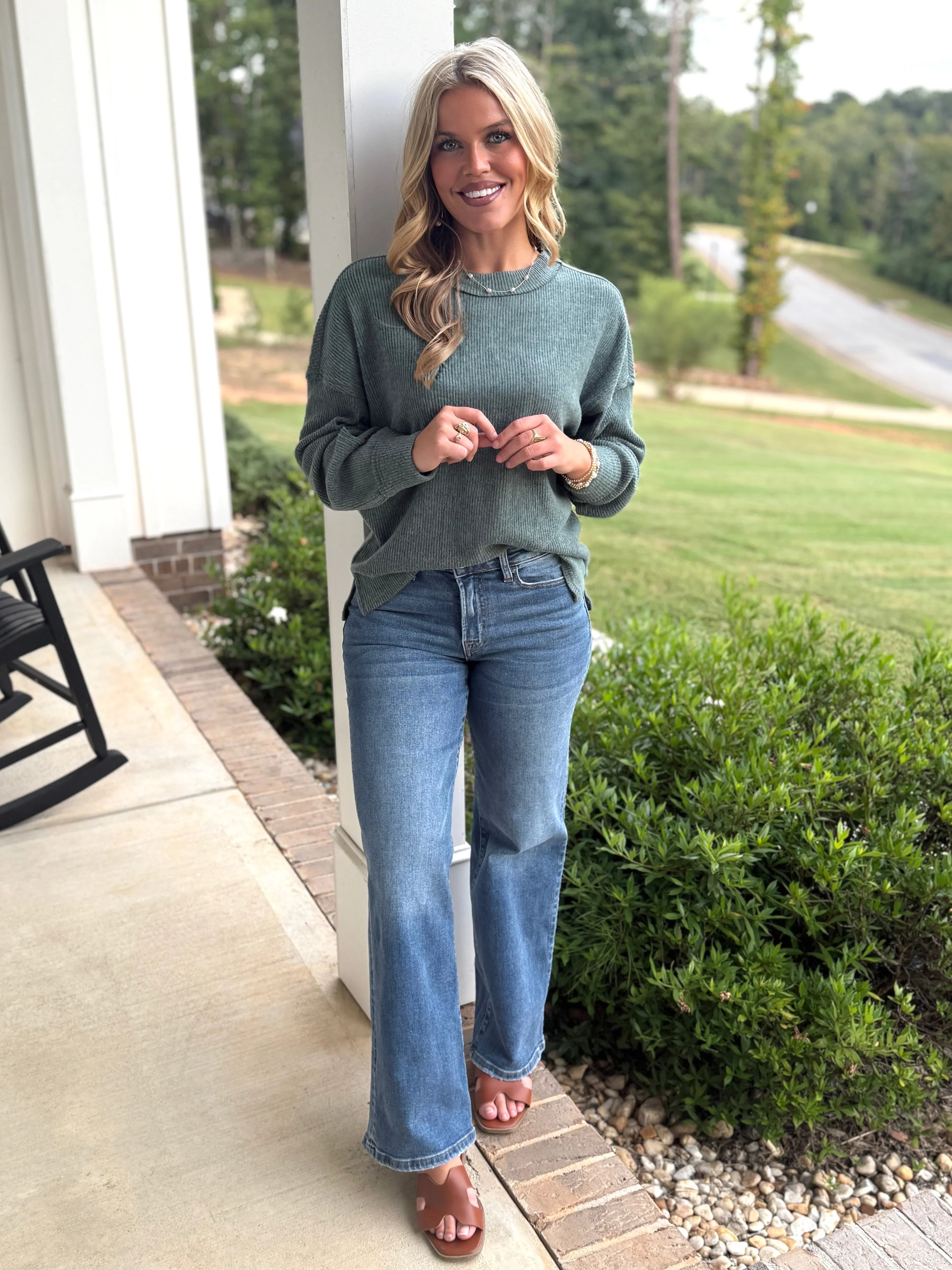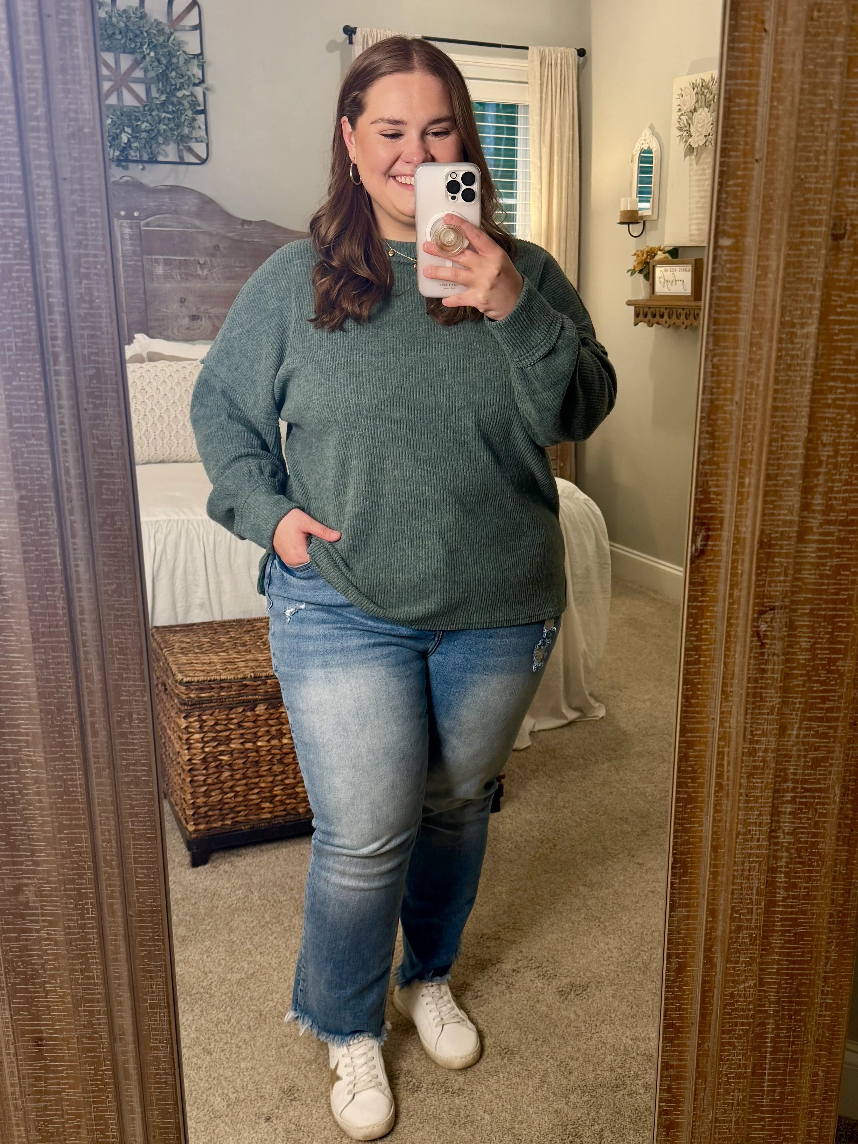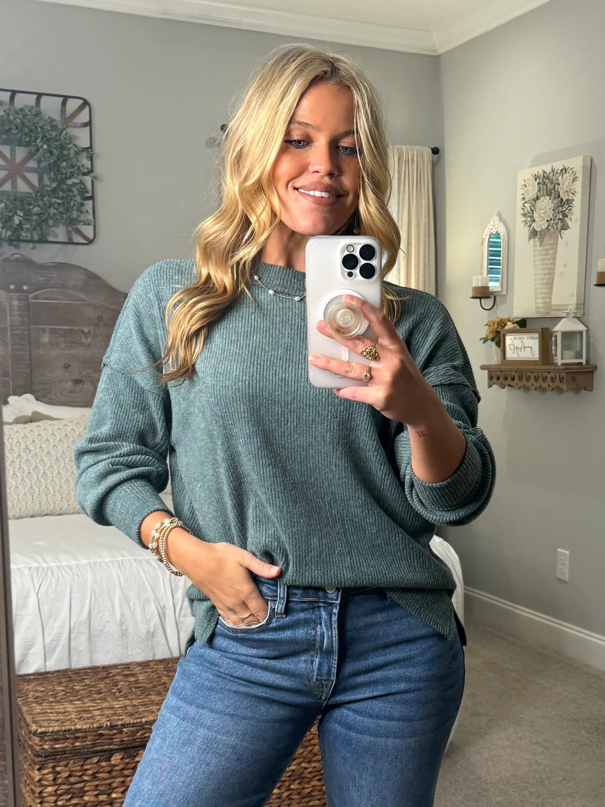 VICTORIA Ribbed Brushed Sweater Top (Jade) (S-3X)