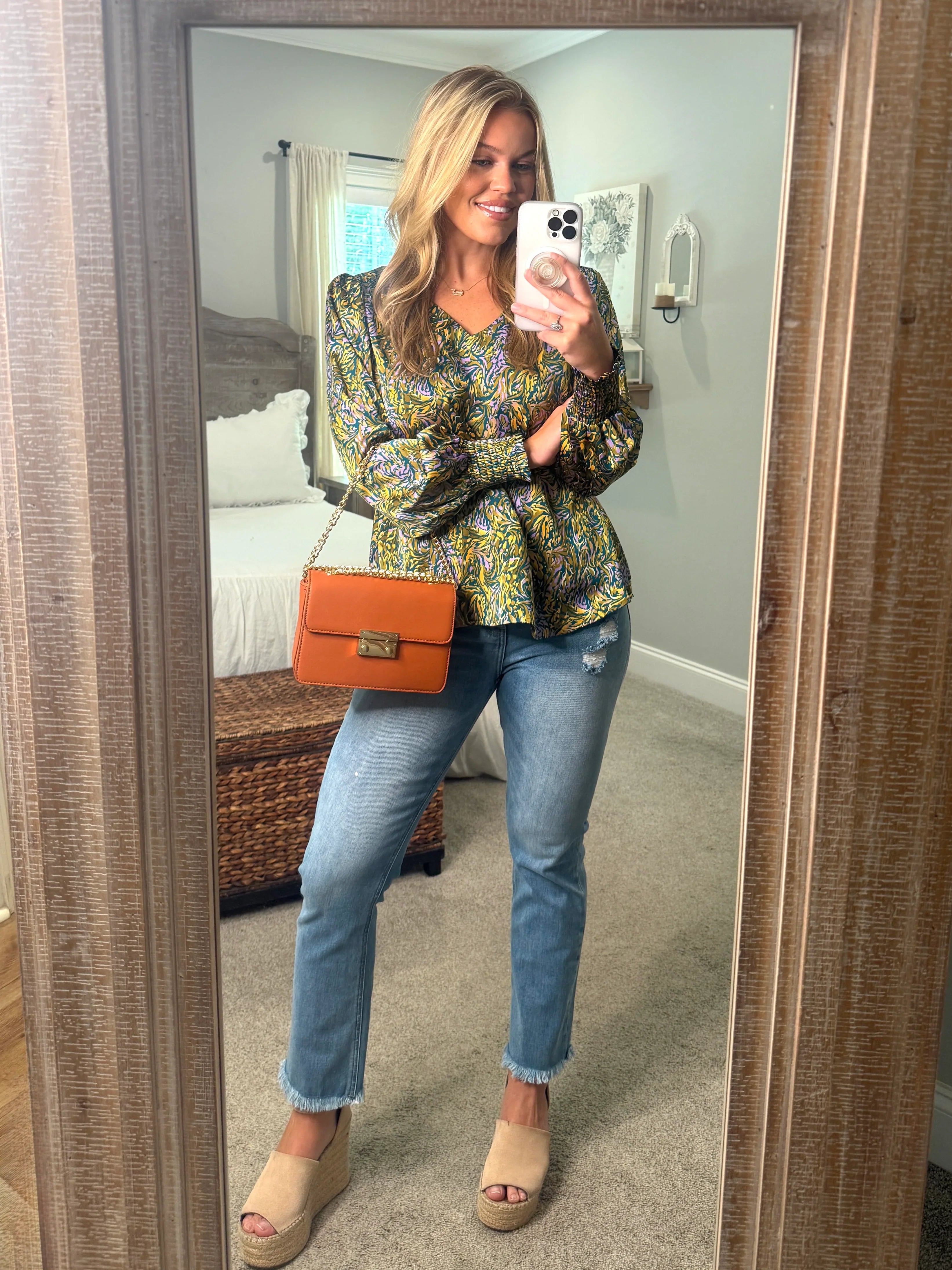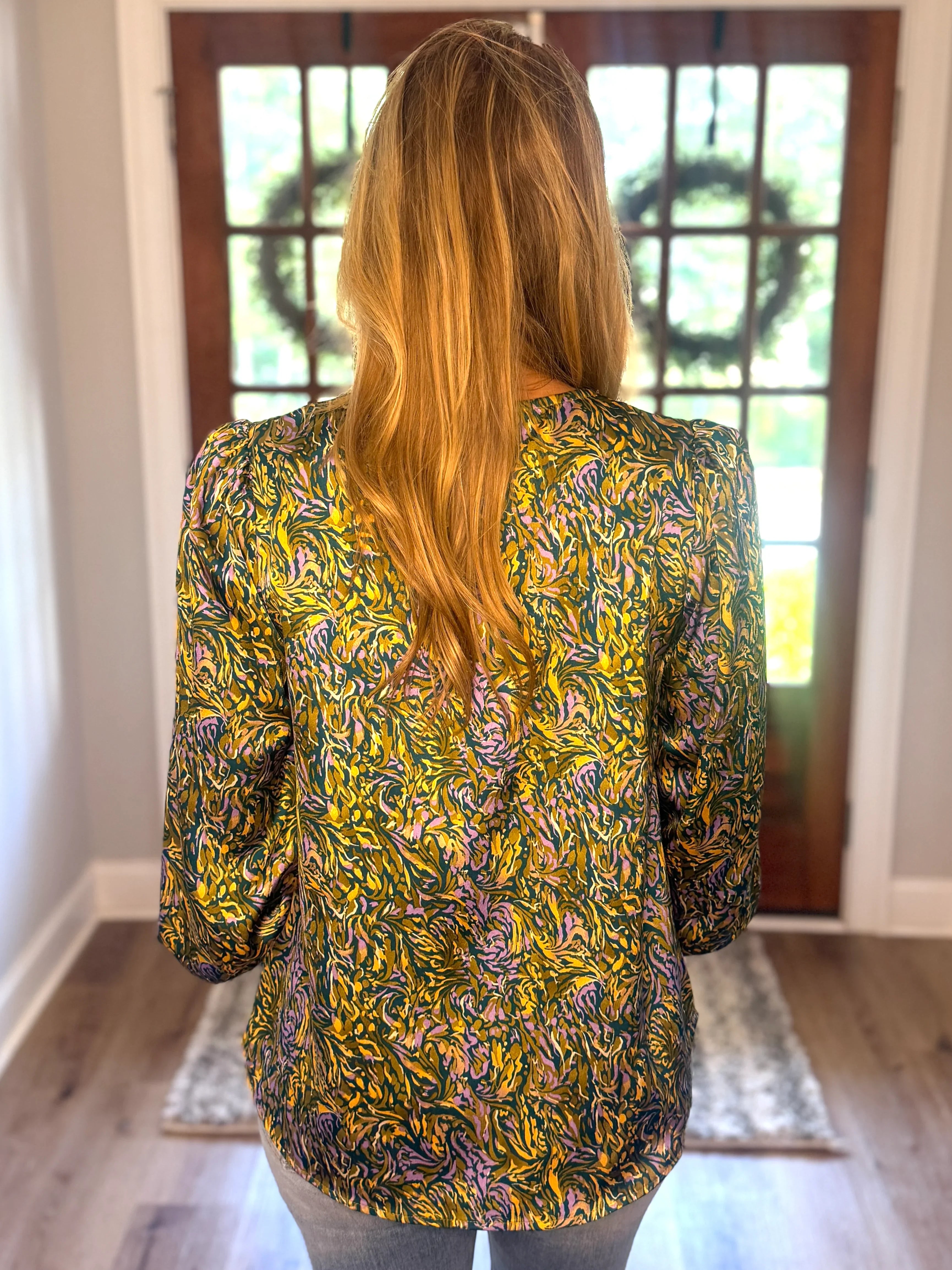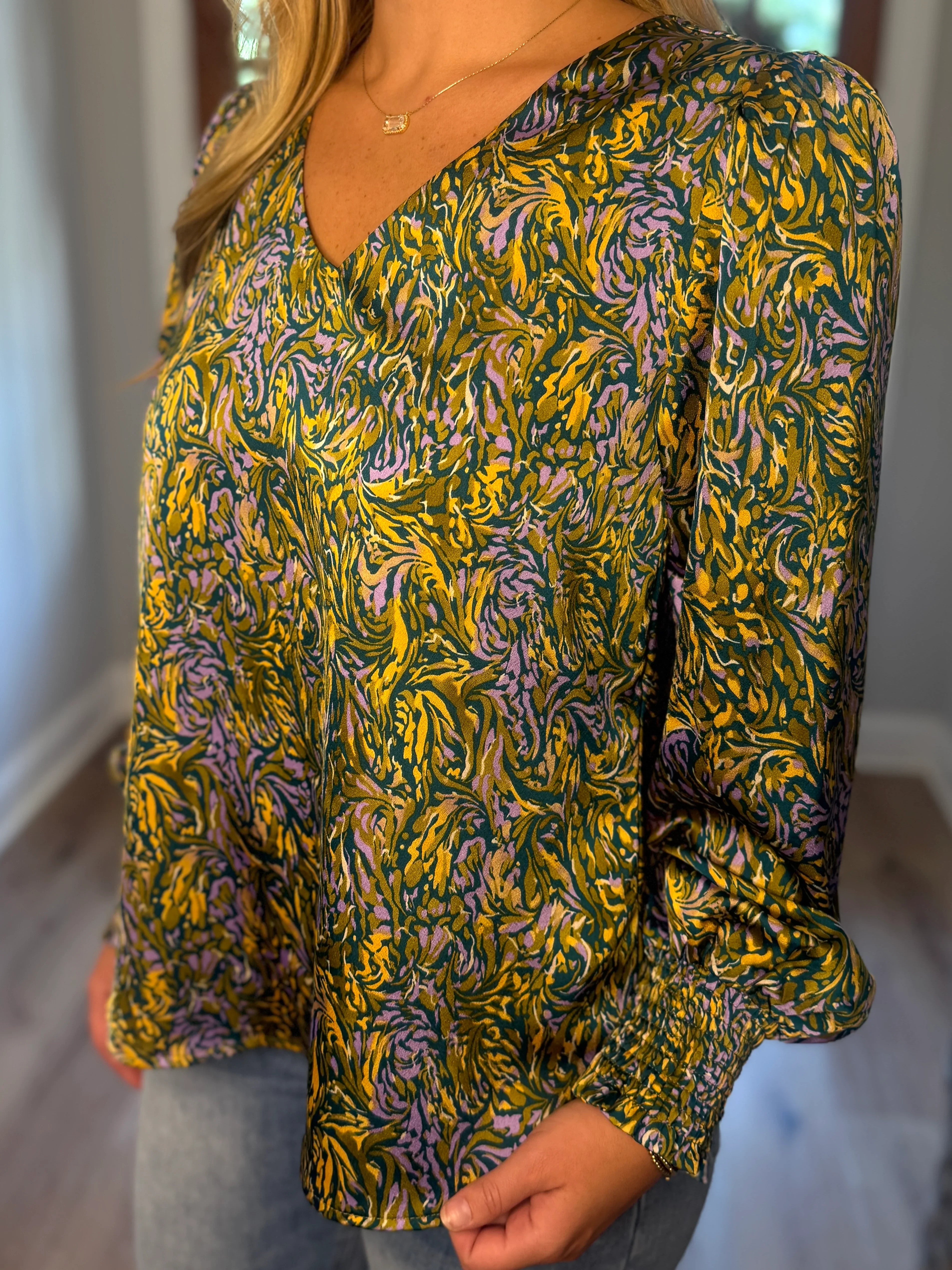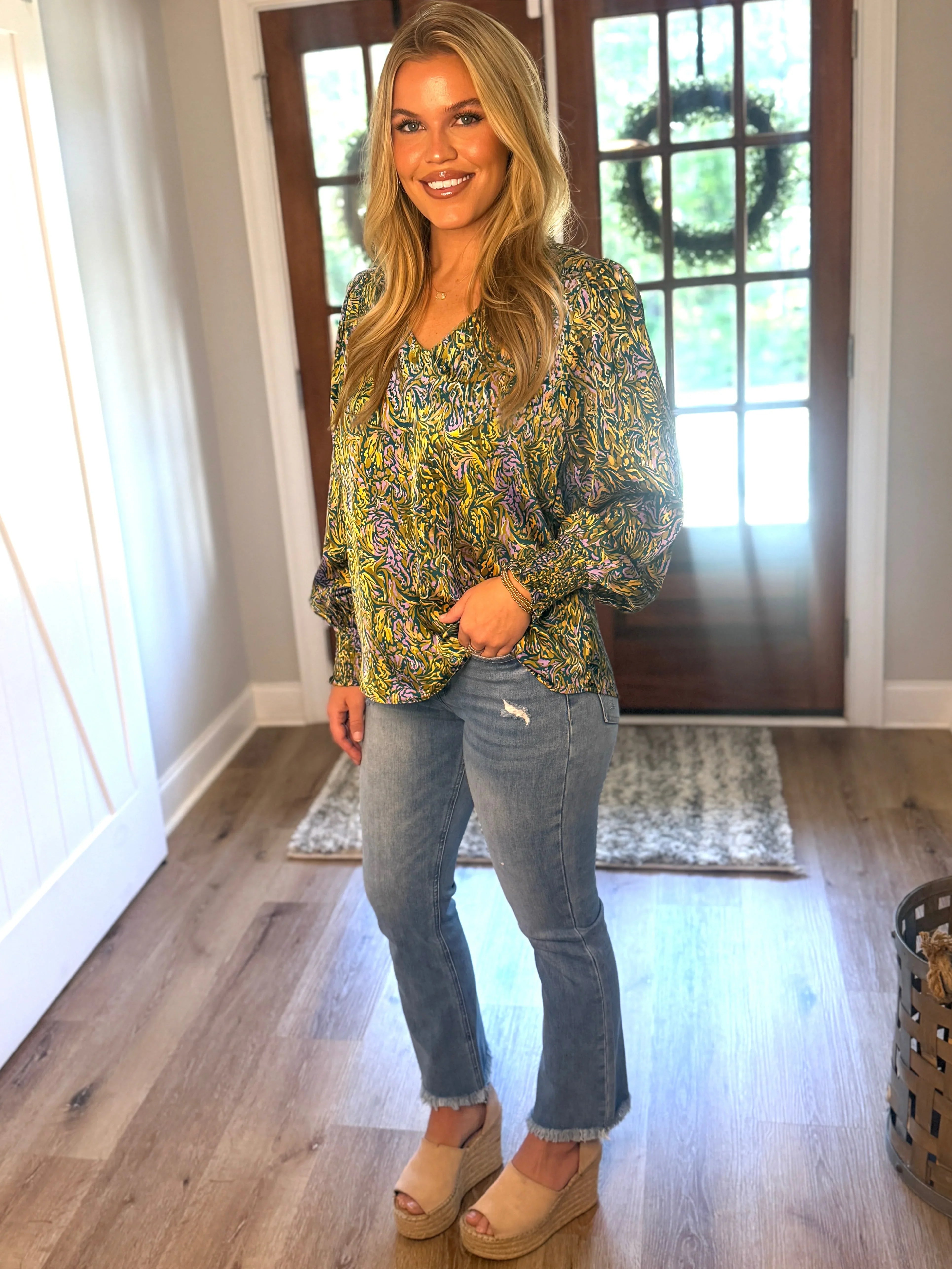 Step into style with the ALANI Teal Mix Print Top, featuring a flirty V-neck and charming long puffed sleeves that end in smocked cuffs for a perfect fit. This lightweight, non-sheer top keeps you comfy and cool while adding a splash of fun to your wardrobe. Whether you’re out for brunch or a casual day out, it’s the playful piece that brings effortless flair to any look.