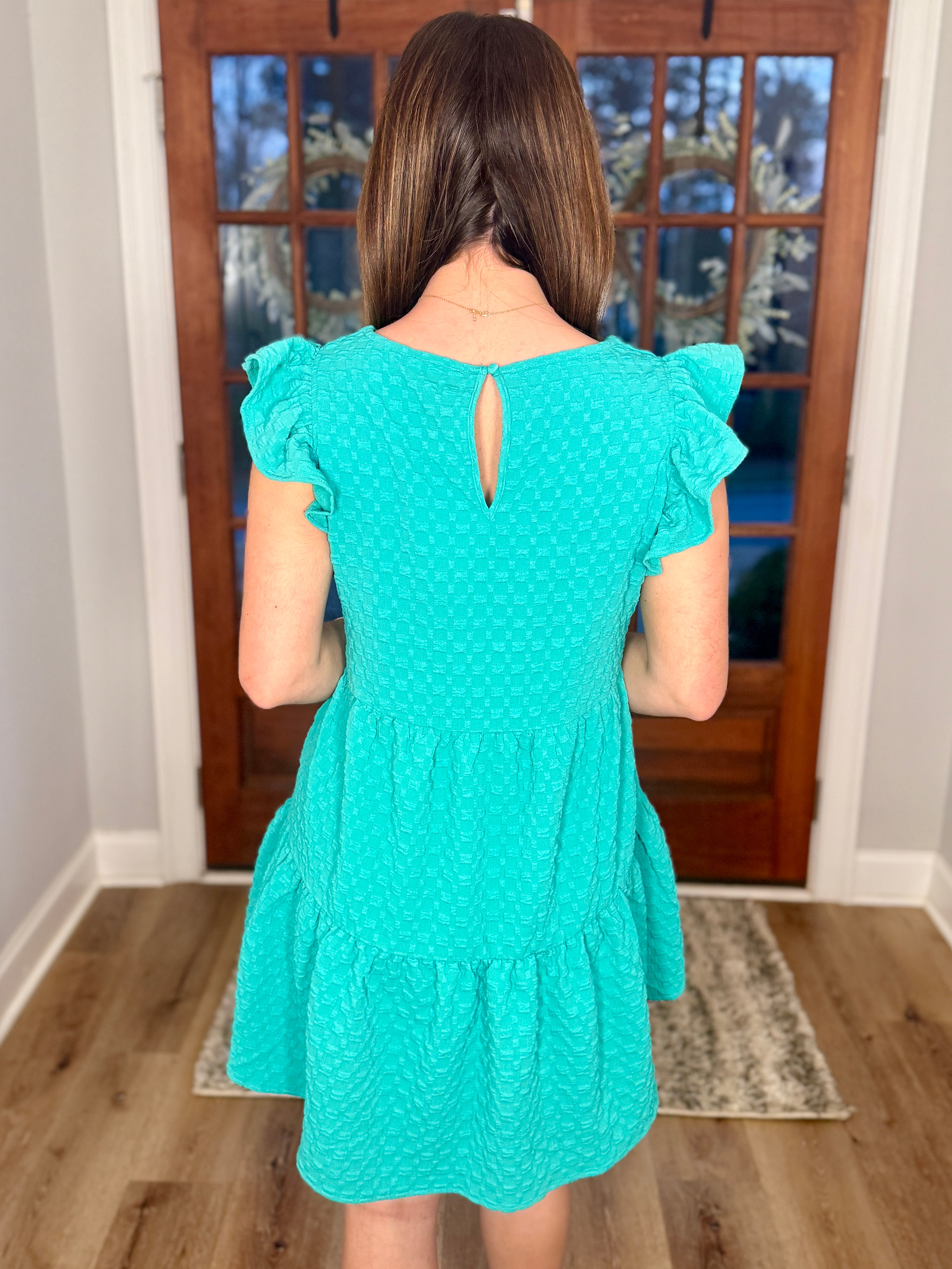 CAROLINE Textured Ruffle Dress (Green)