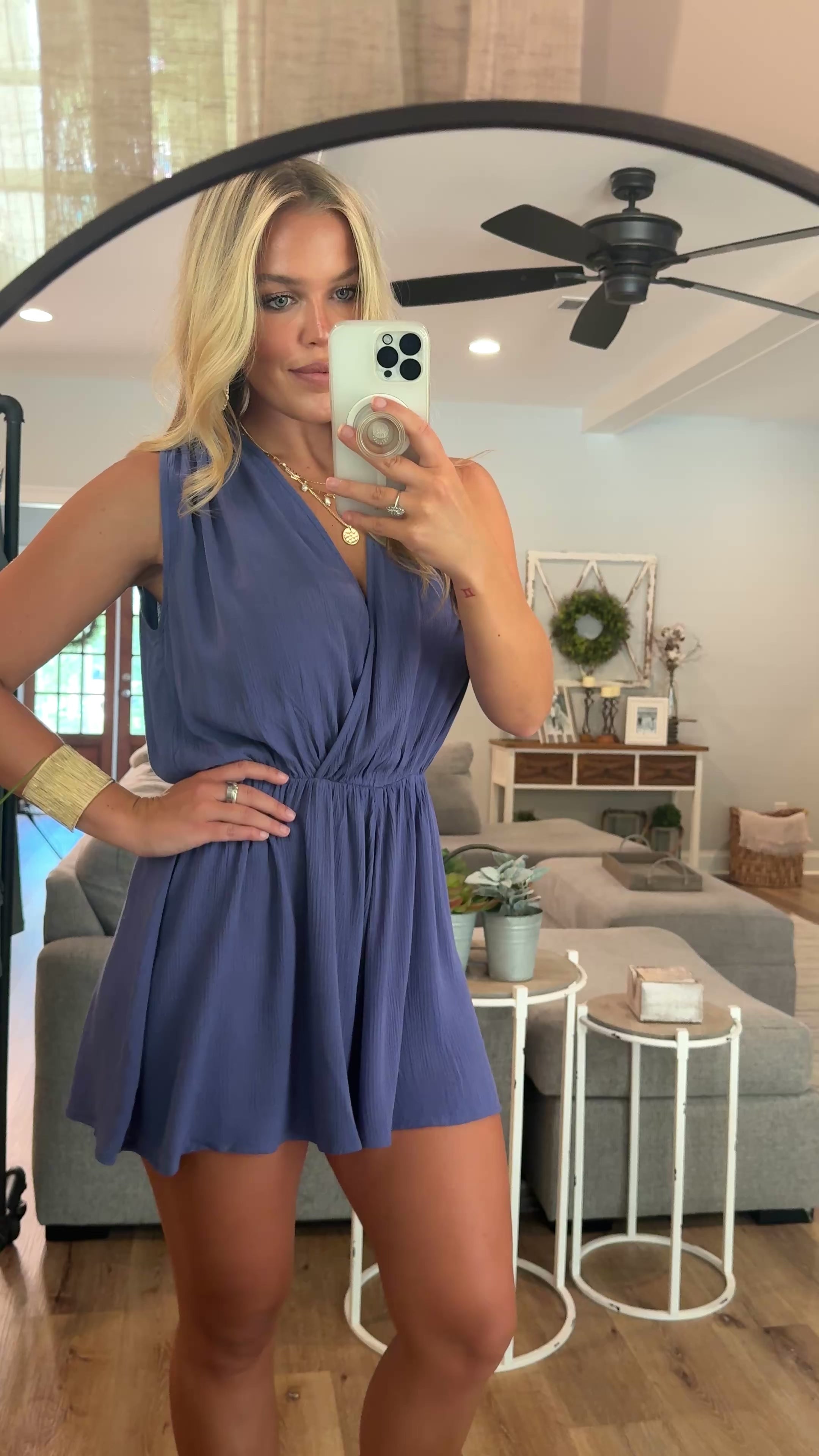 This playful draped romper in a vibrant blue features a comfortable elastic waist and a charming tie-open back for a flirty touch. Crafted from lightweight, textured fabric with little stretch, it offers breezy comfort and effortless style perfect for sunny days and fun outings.