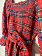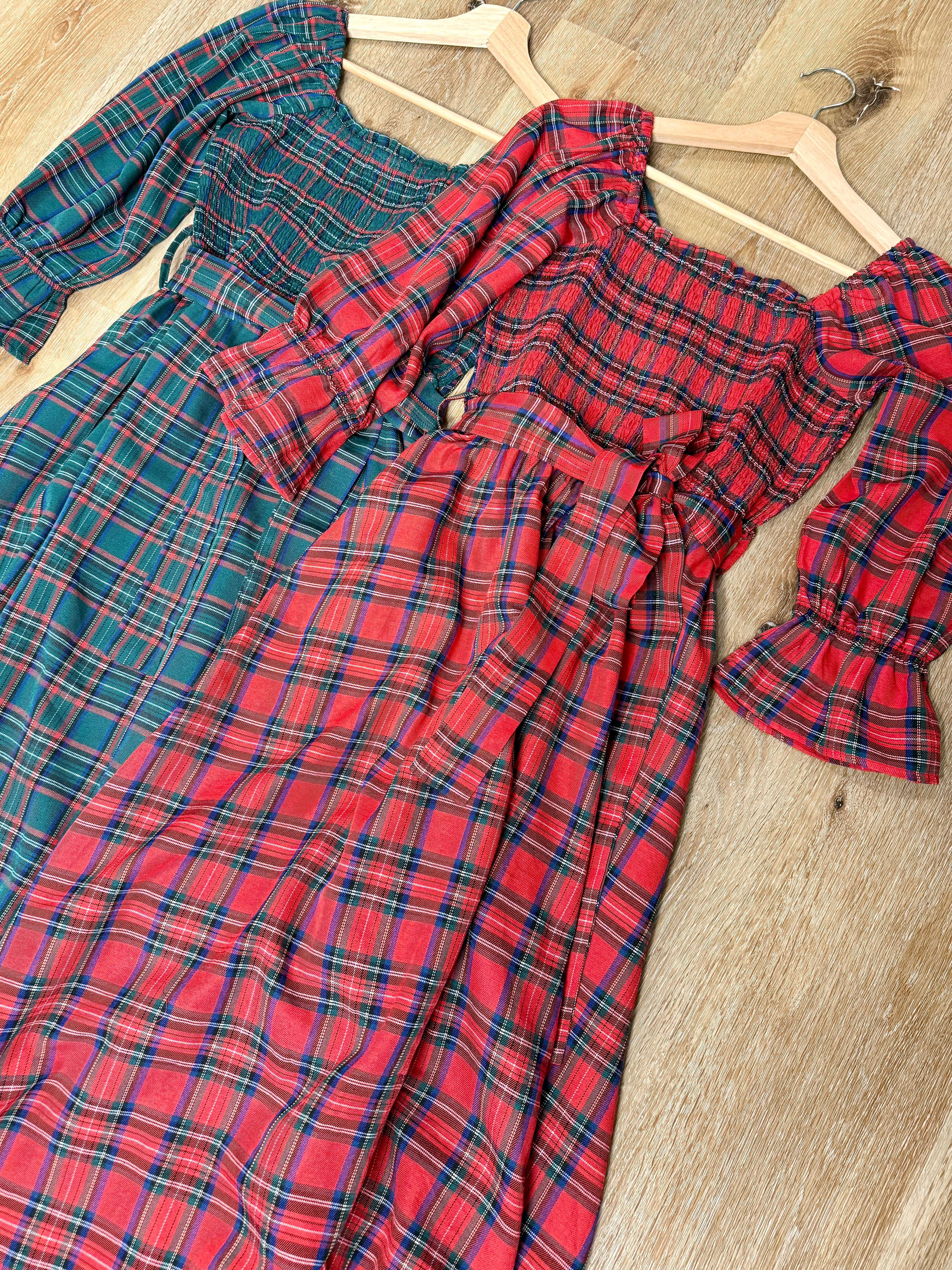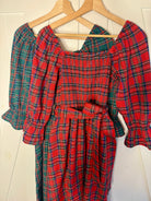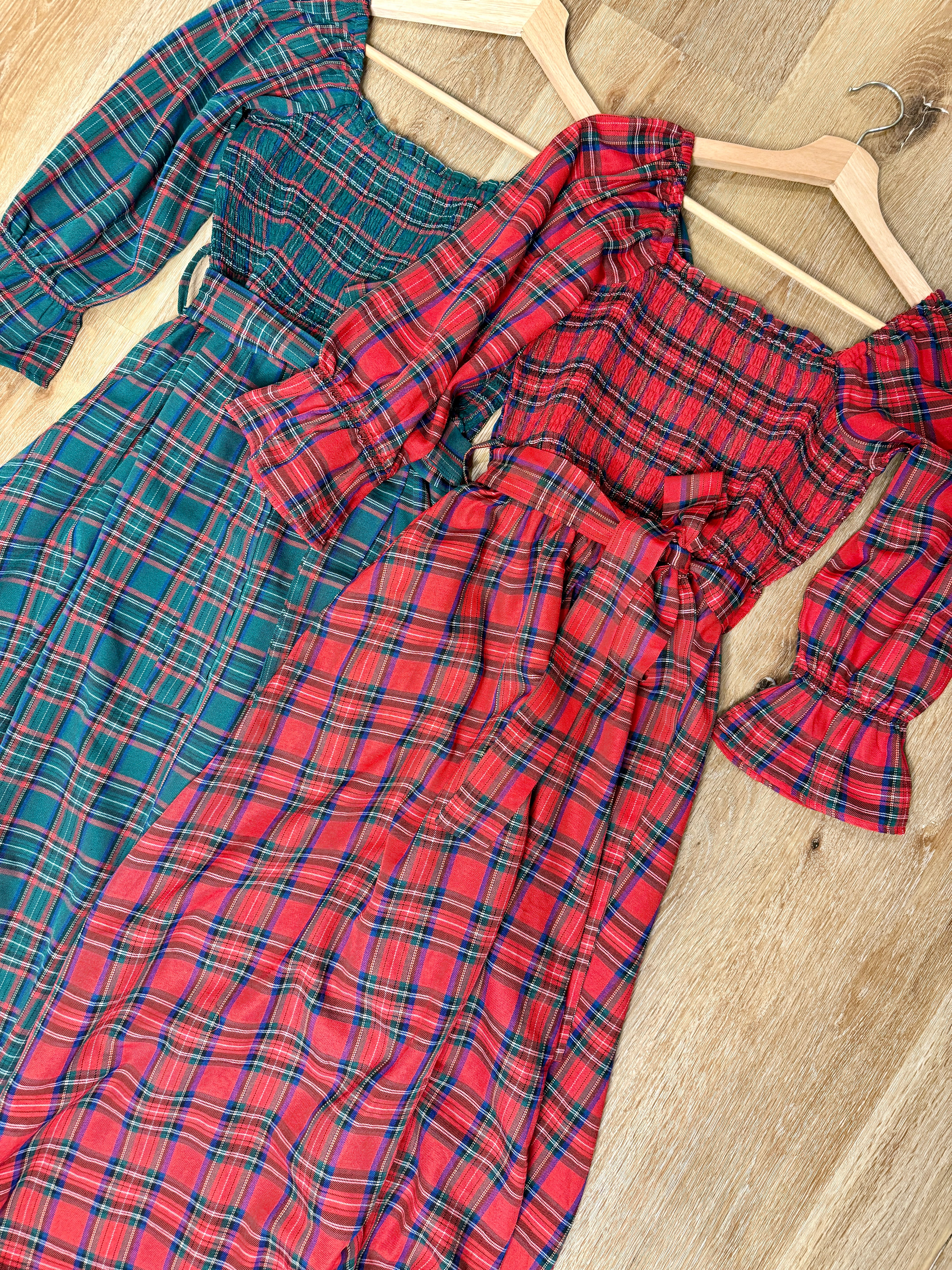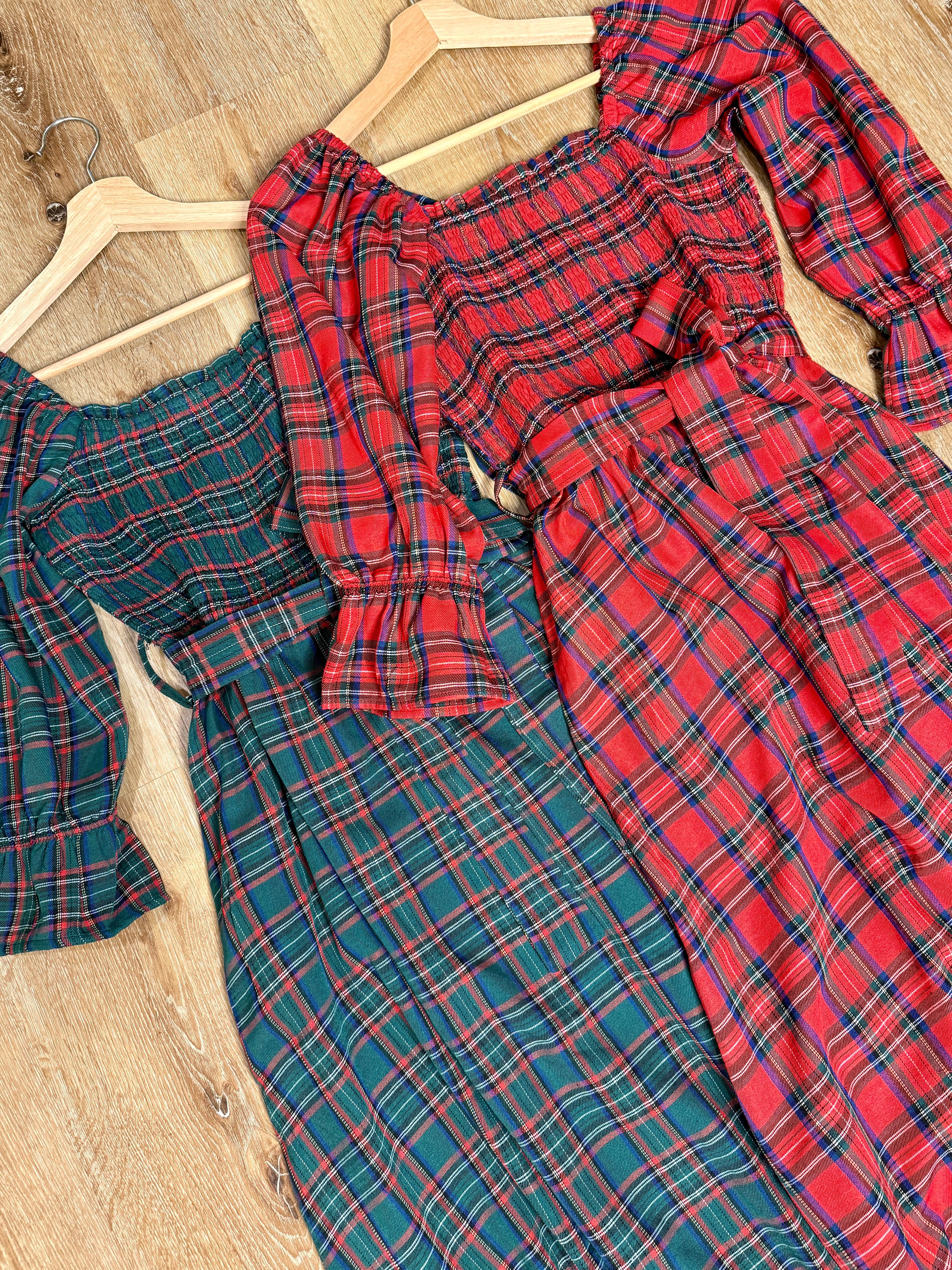Twirl into joy with this charming plaid midi dress that's equal parts sweet and sassy! Featuring adorable puffy ruffle sleeves and a smocked chest detail, this dress brings vintage-inspired charm to your wardrobe. The soft, comfortable fabric moves with you all day long, while the self-tie belt lets you cinch your waist just right. Available in classic red or forest green plaid, this midi-length beauty is perfect for everything from brunch dates to weekend adventures. Comfort meets style in the most delightful way!