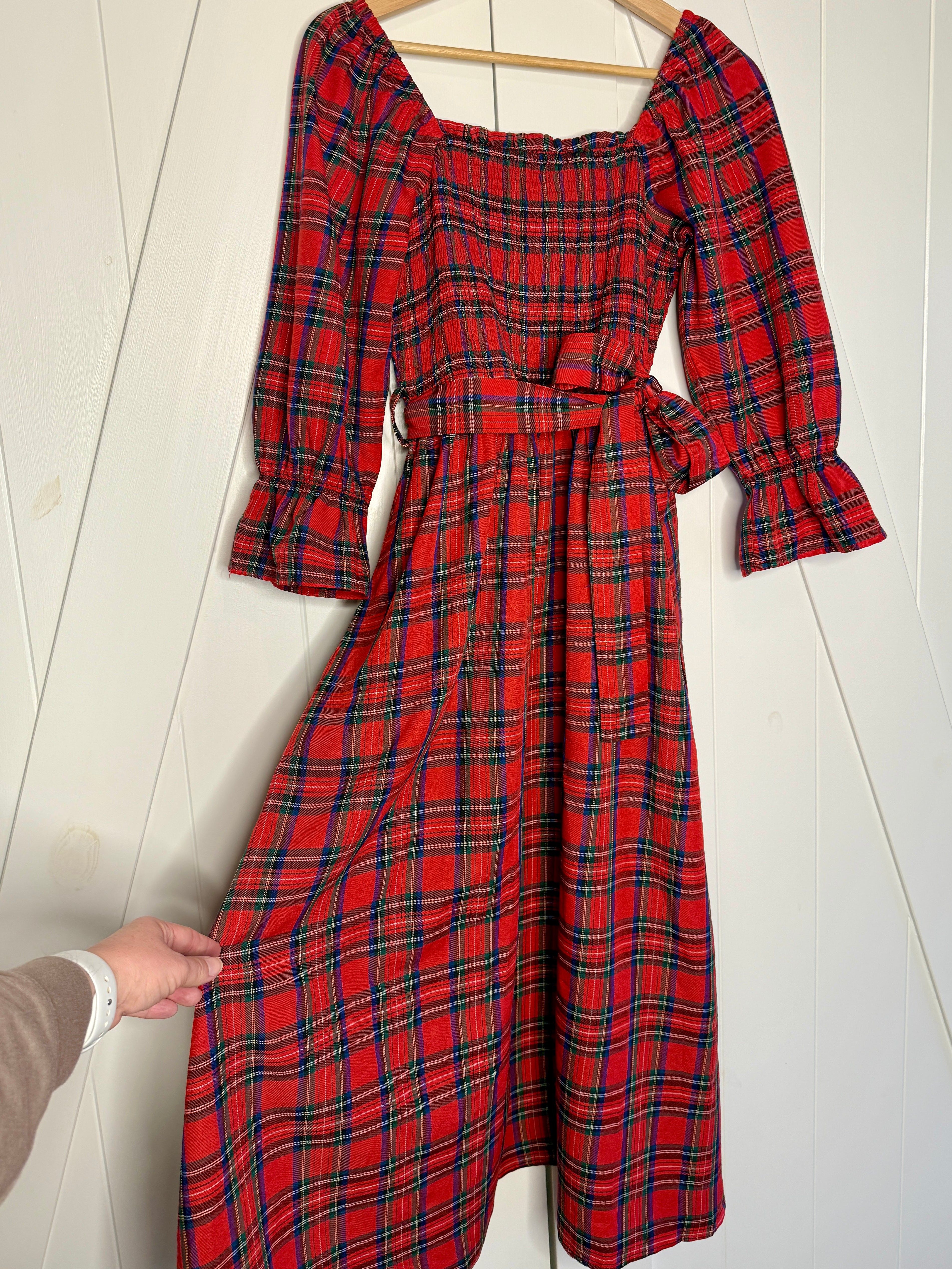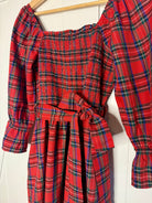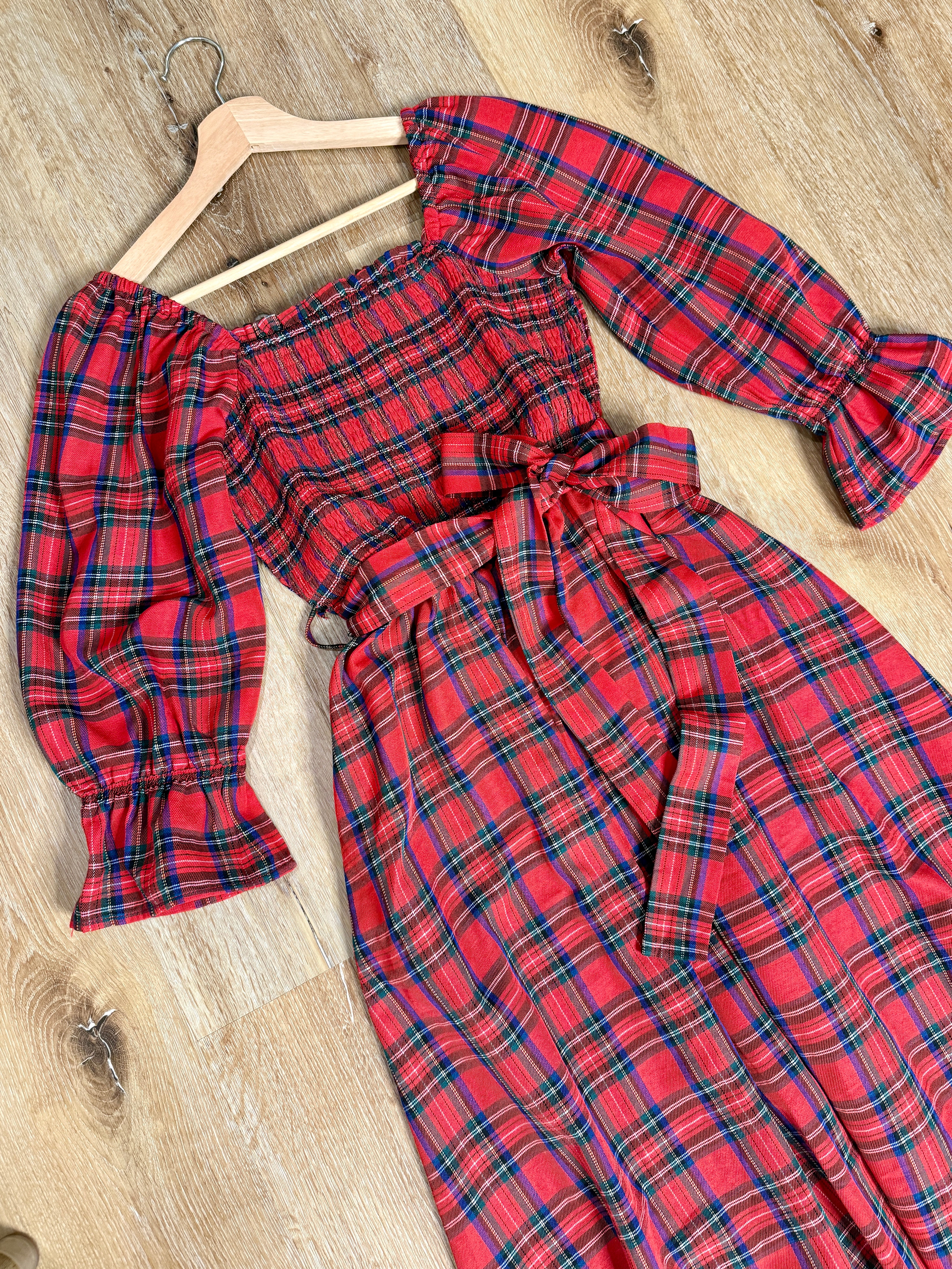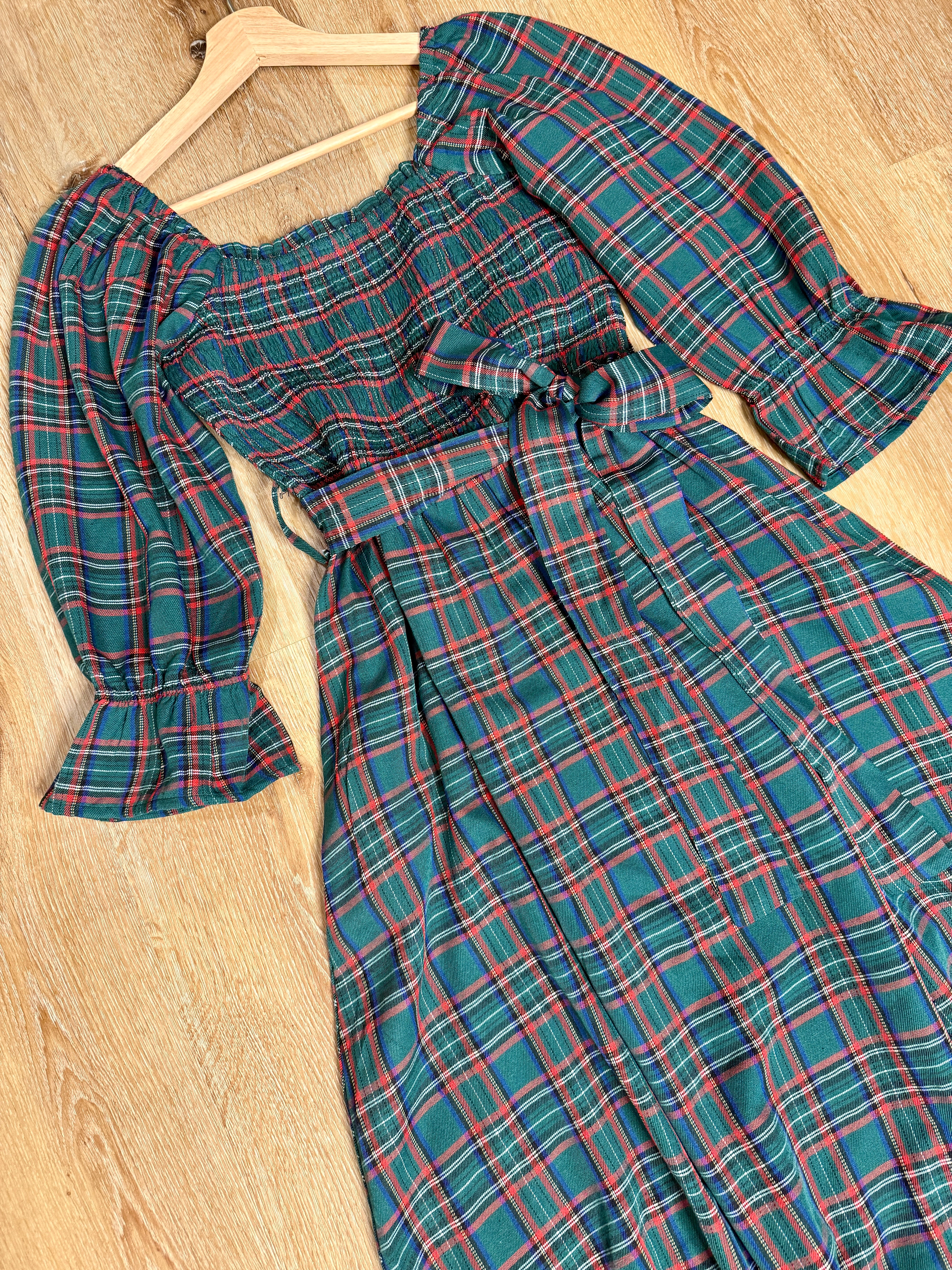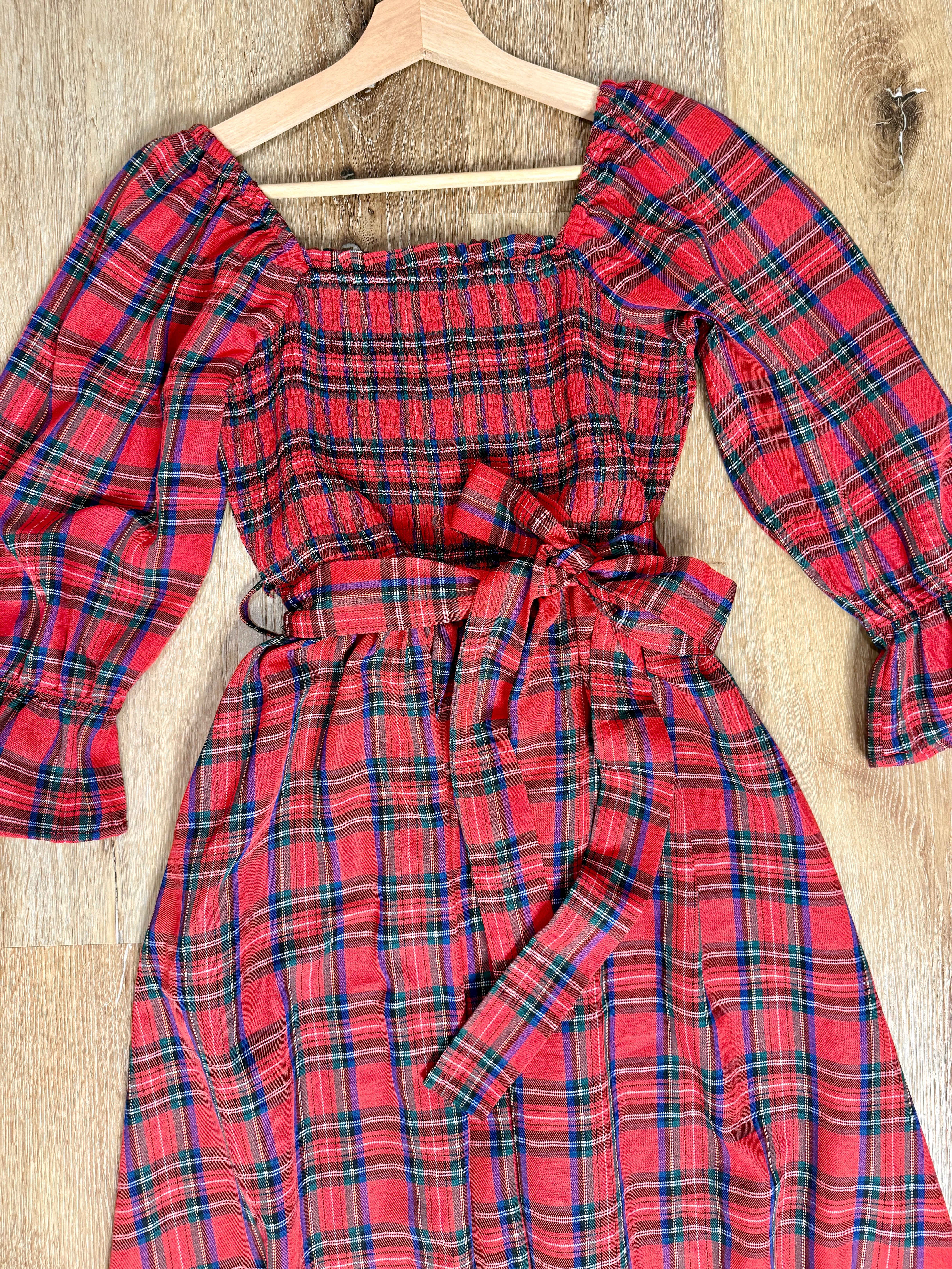 Twirl into joy with this charming plaid midi dress that's equal parts sweet and sassy! Featuring adorable puffy ruffle sleeves and a smocked chest detail, this dress brings vintage-inspired charm to your wardrobe. The soft, comfortable fabric moves with you all day long, while the self-tie belt lets you cinch your waist just right. Available in classic red or forest green plaid, this midi-length beauty is perfect for everything from brunch dates to weekend adventures. Comfort meets style in the most delightful way!