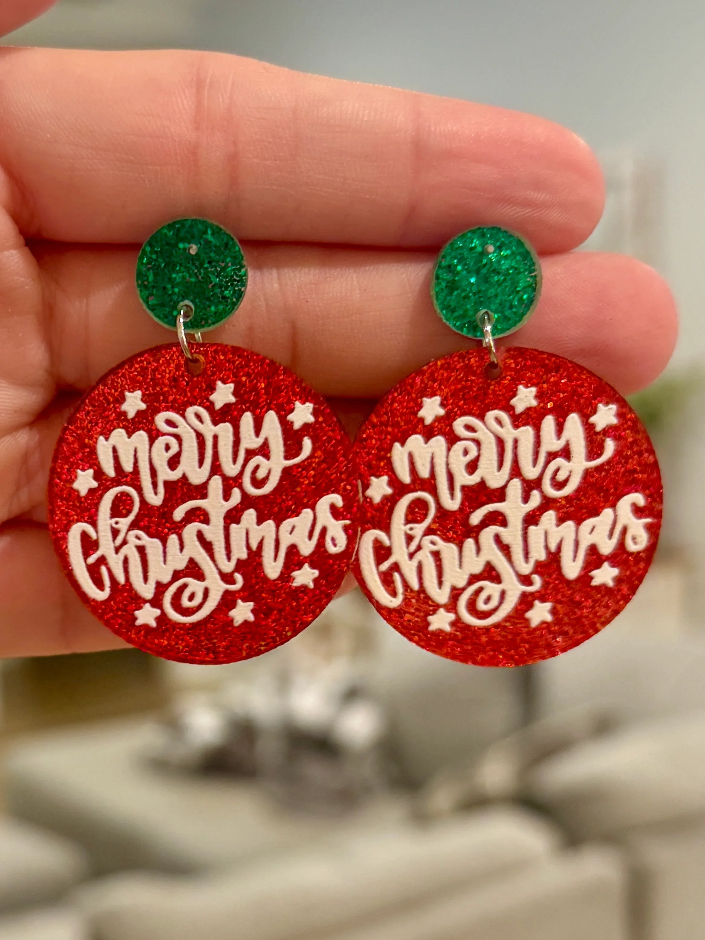Round Merry Christmas Earrings