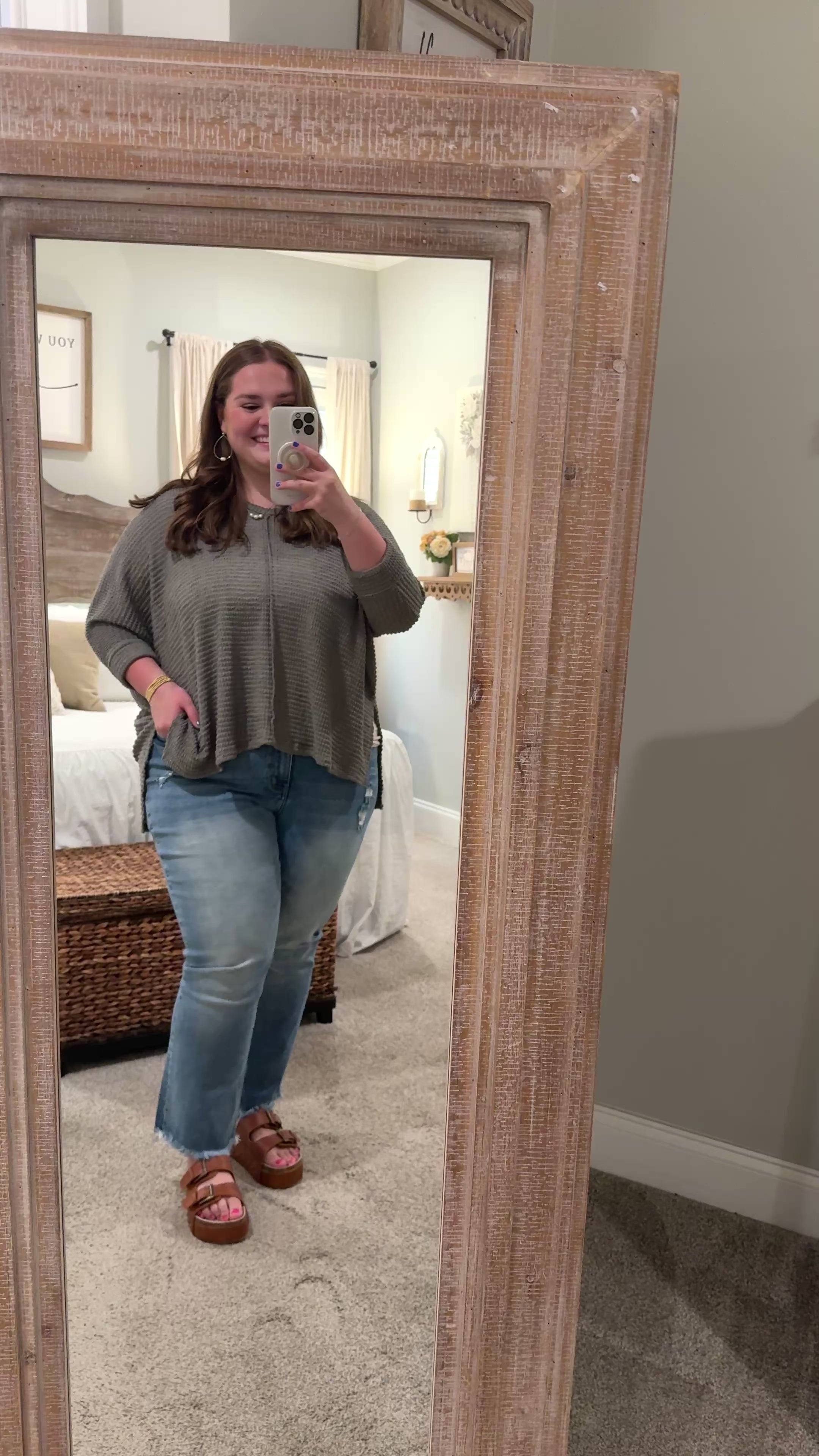 MIA Plus Size 3/4 Sleeve Lightweight Sweater (Light Olive)