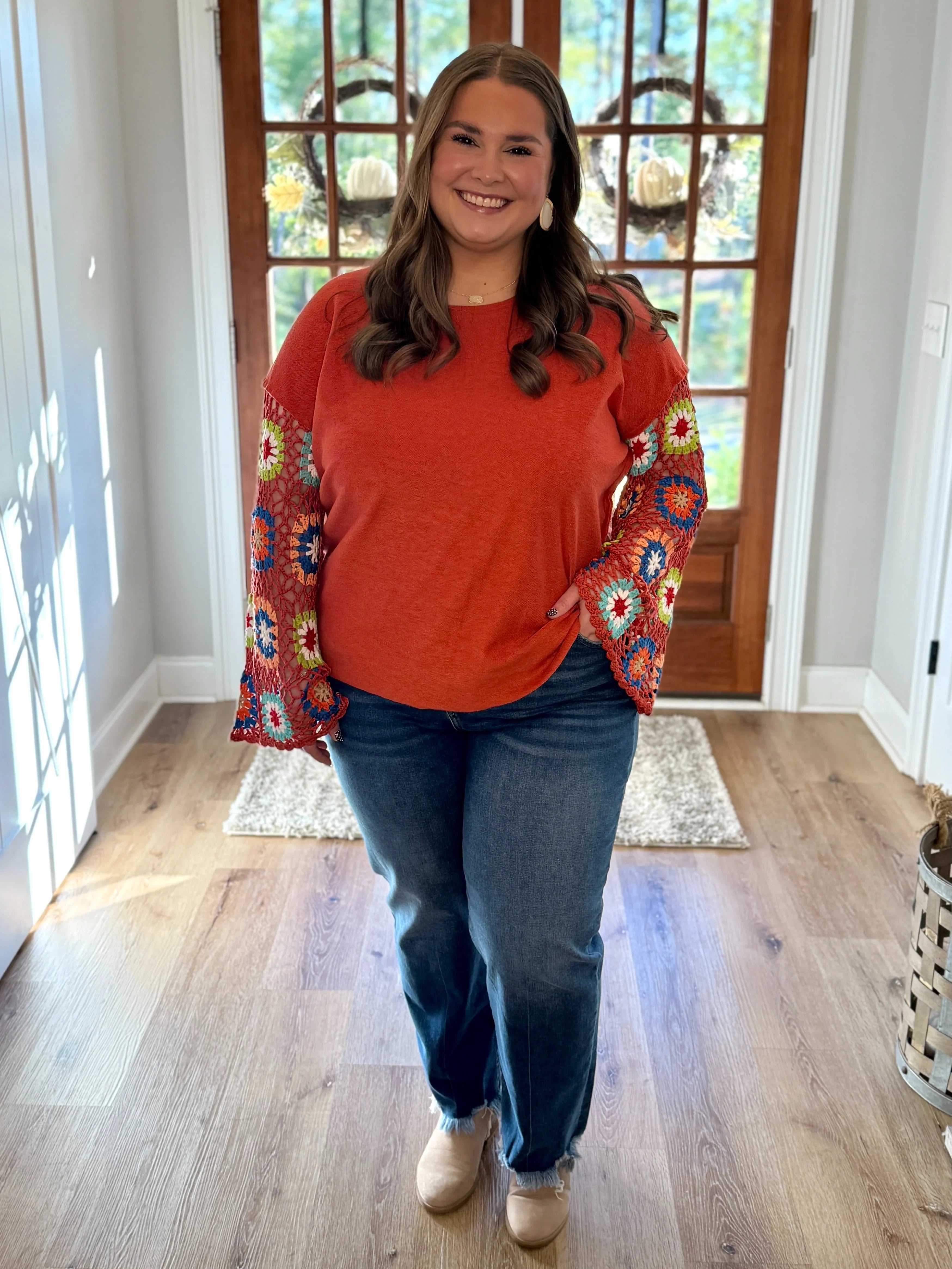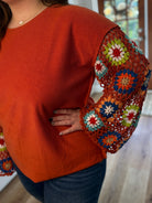 This Plus Size Crochet Sleeve Top combines cozy French Terry fabric with charming hand-knit crochet details on the sleeves, adding a splash of color and texture to your look. The raw hemline gives it a relaxed, effortlessly cool vibe perfect for casual days. Comfortable and playful, it’s an easy way to brighten your wardrobe while enjoying soft, breathable wear all day long.