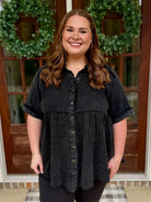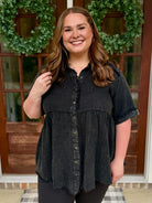 PAYTON Plus Size Mineral Washed Button Down Top