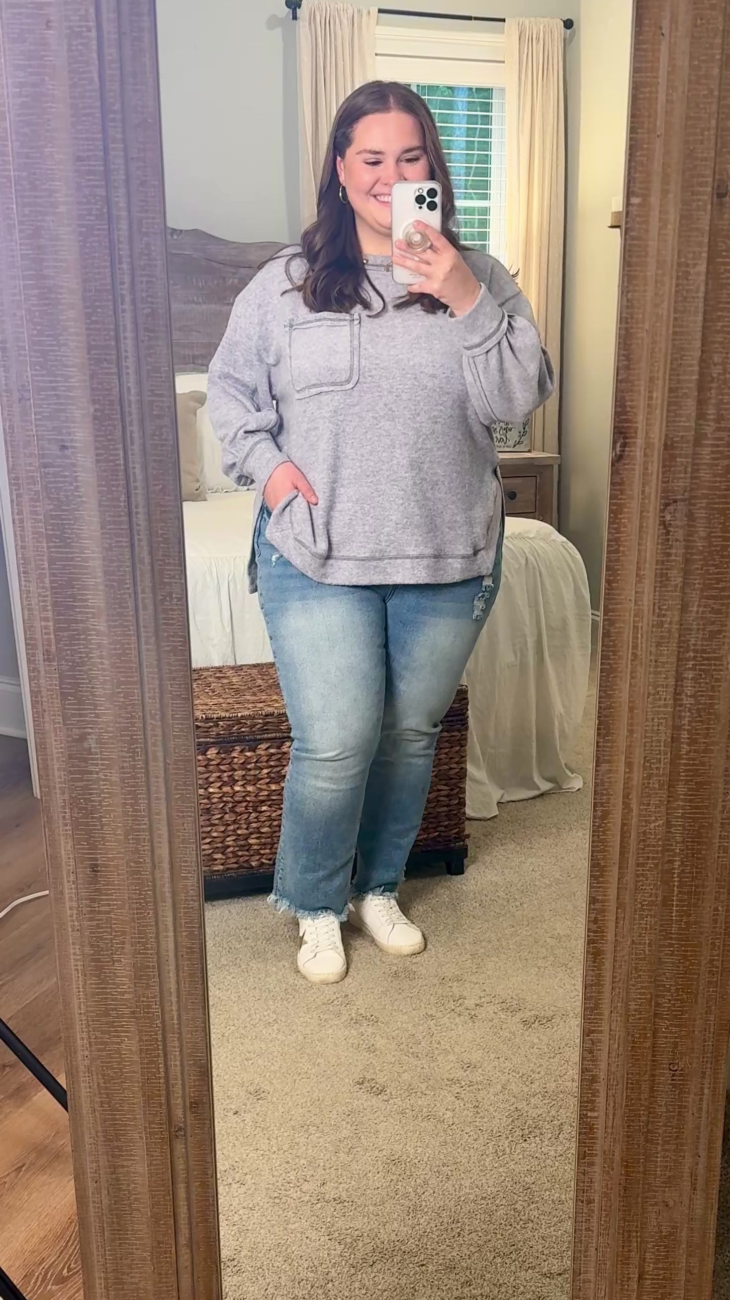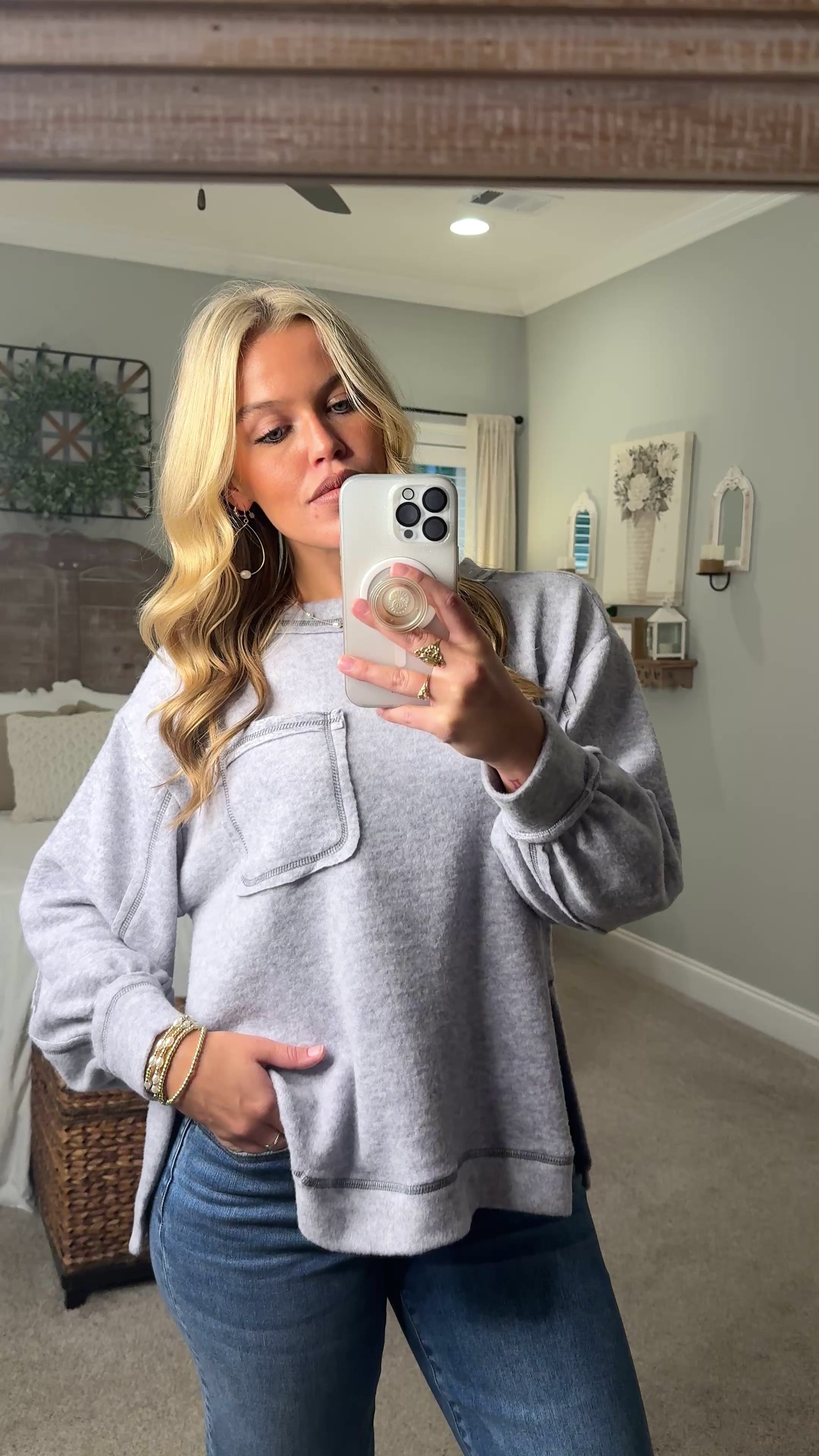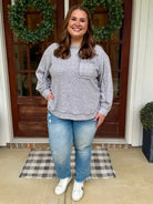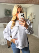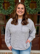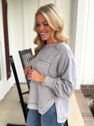 LAYLA Side Slit Pocket Brushed Sweater Top (Grey) (S-3X)