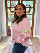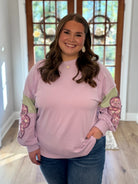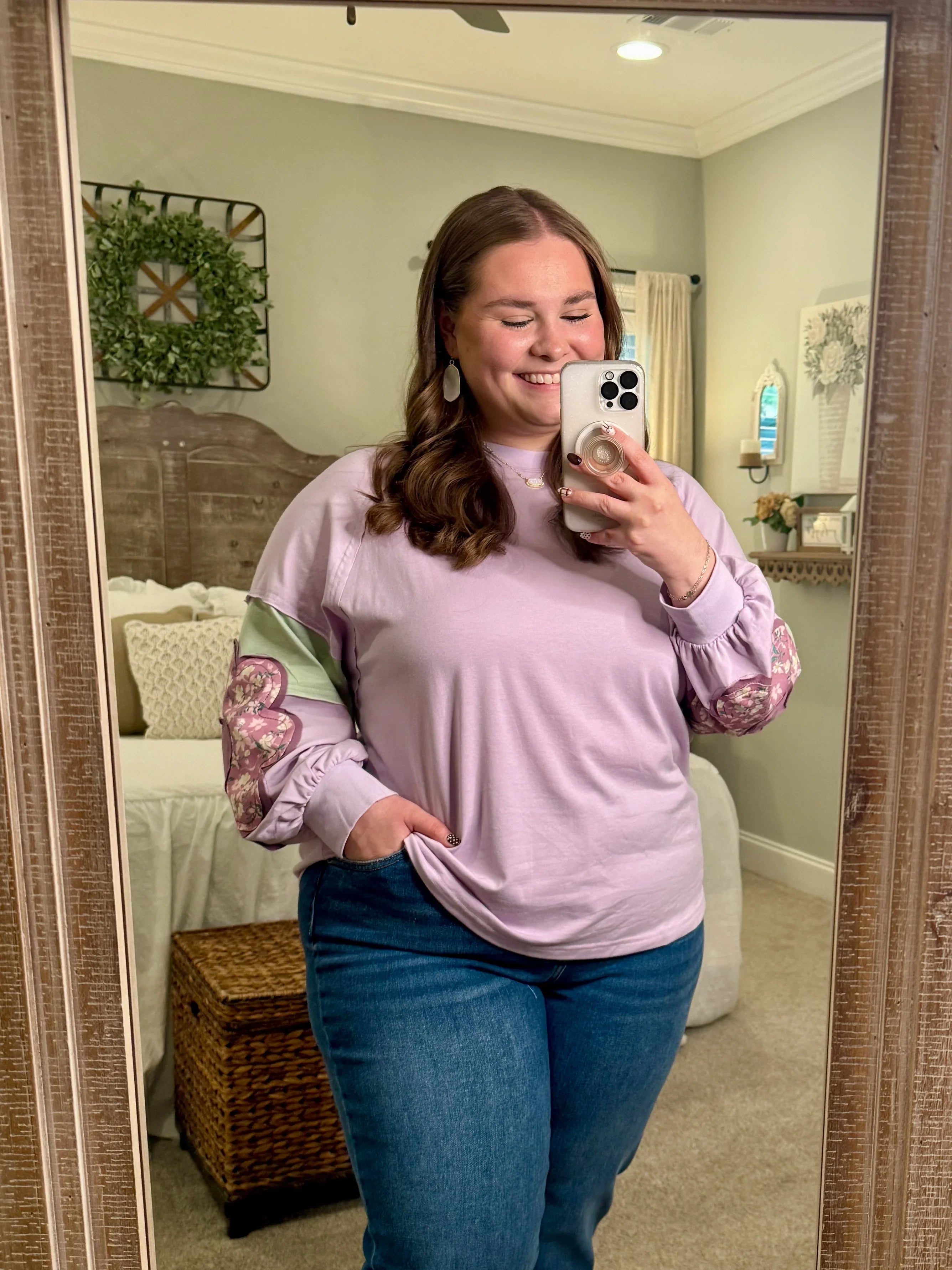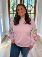 Embrace comfort and charm with the ANNA Plus Size Lavender Flower Patch Top. Soft and cozy, this top features a delightful lavender flower patch that adds a fresh, playful touch to your outfit. Perfect for lounging or casual days out, it blends comfy vibes with a burst of floral fun to brighten your wardrobe.