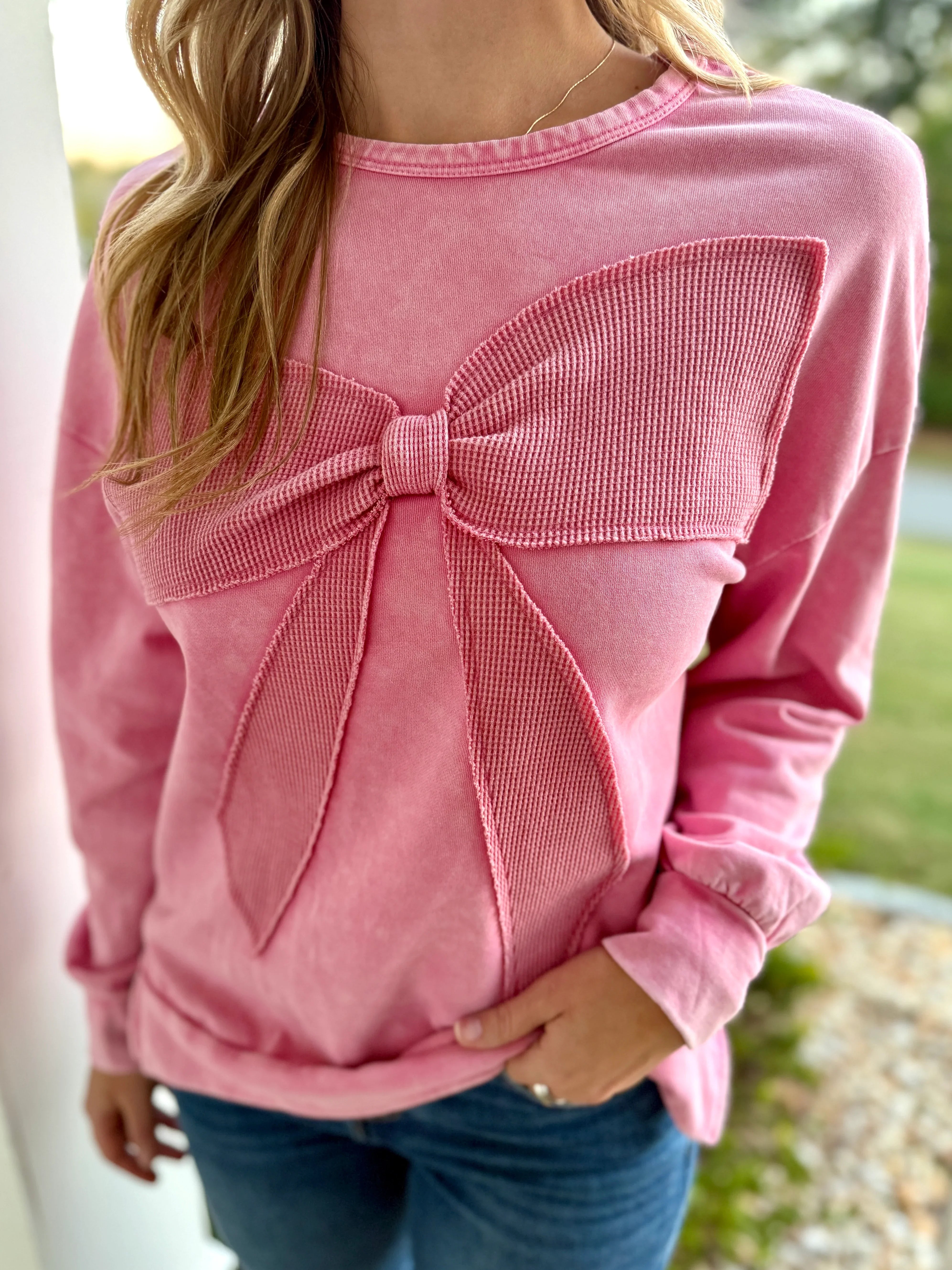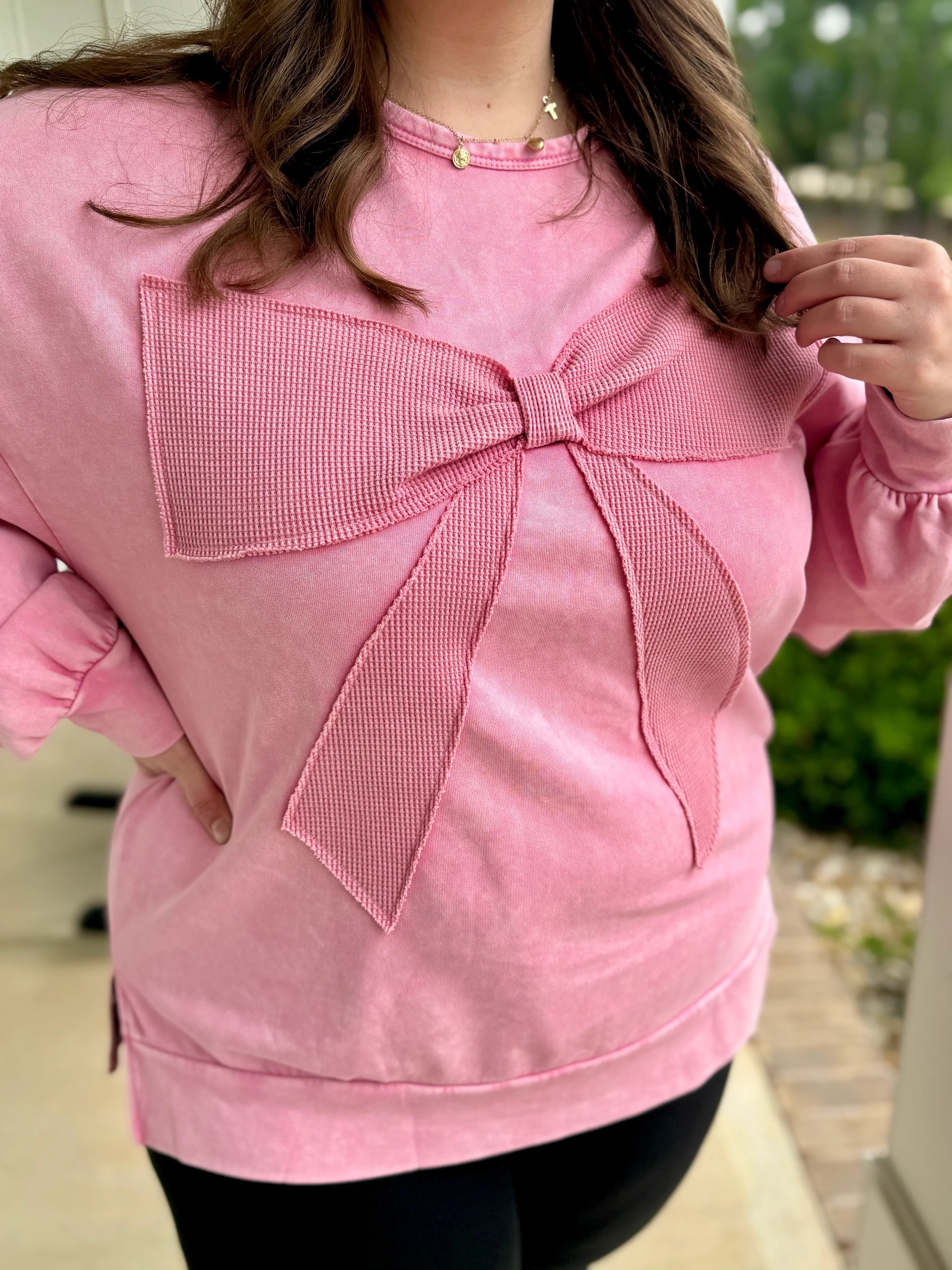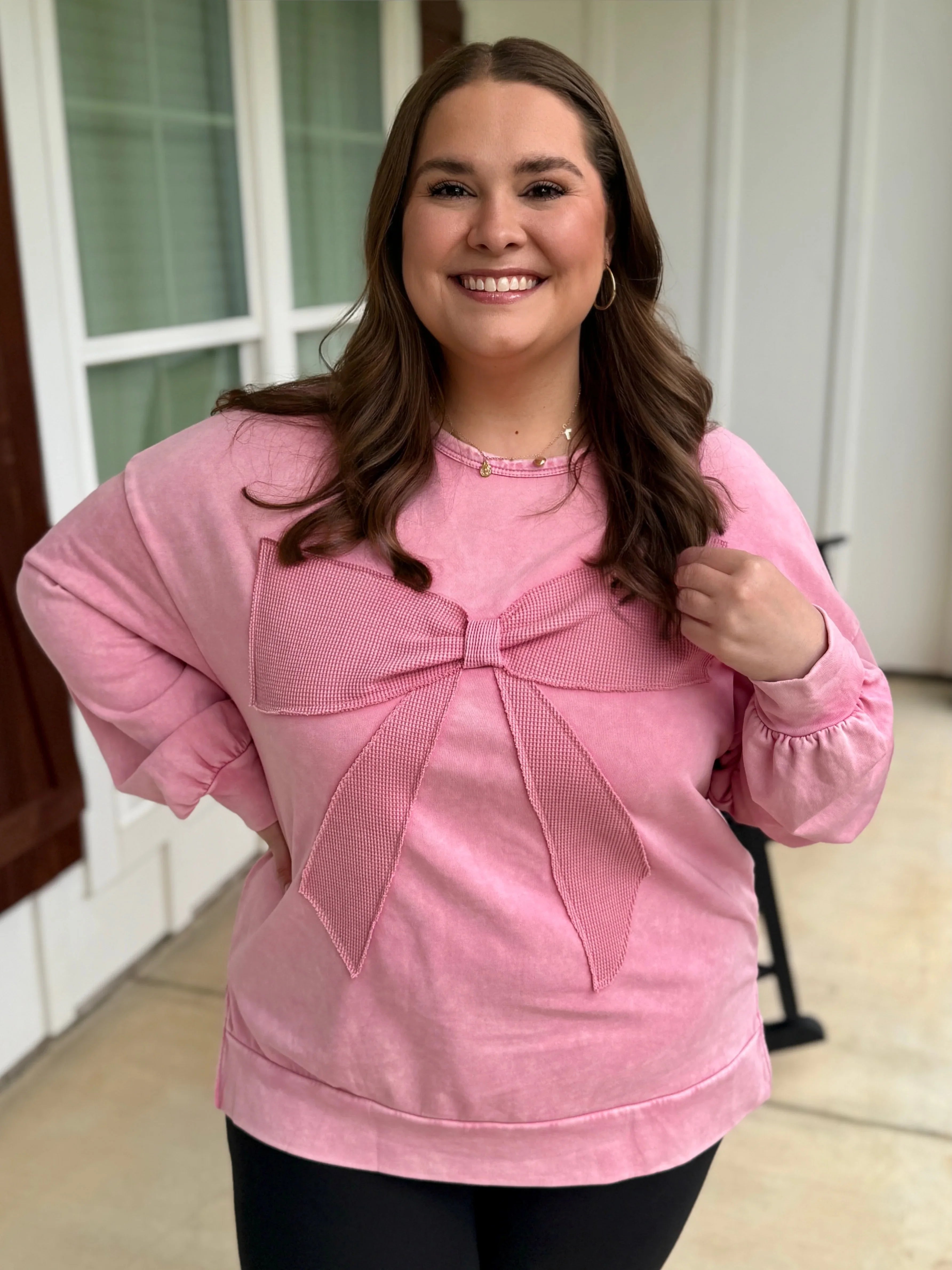 MAGGIE Pink Bow Sweatshirt Top (S-3X)