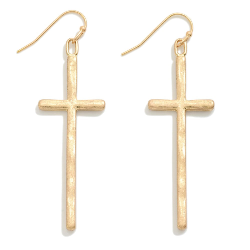 Lightly Hammered Cross Drop Earrings