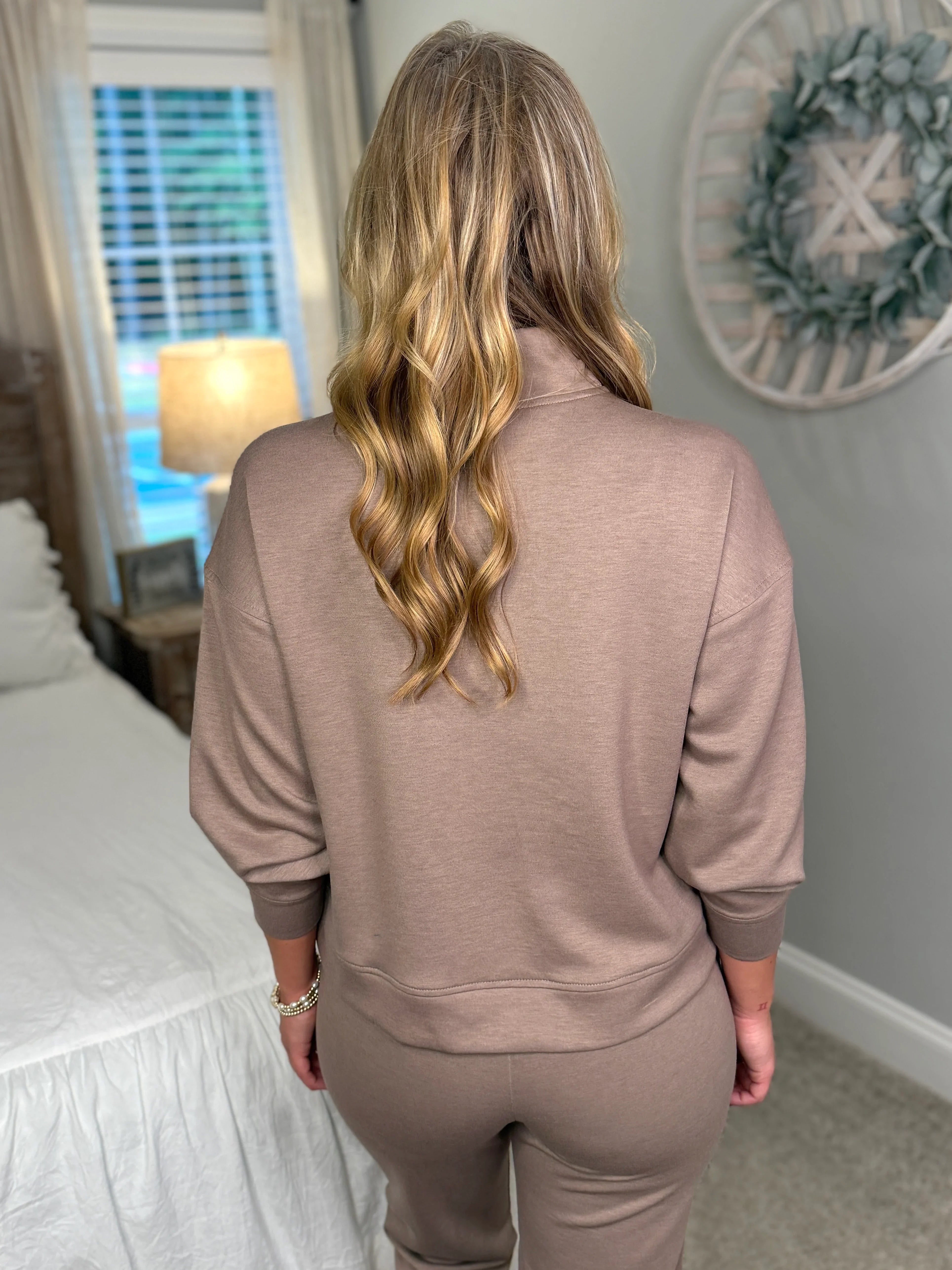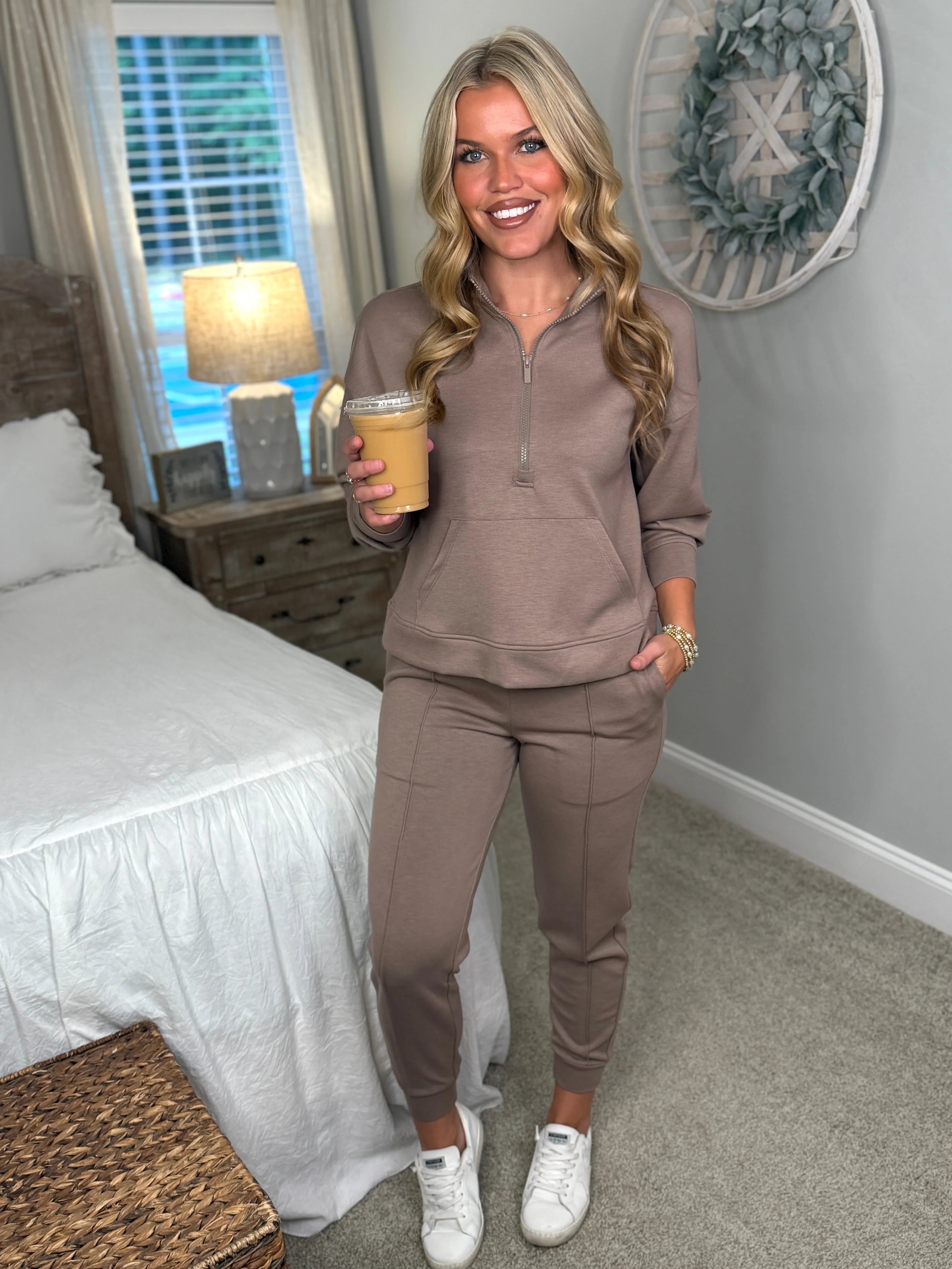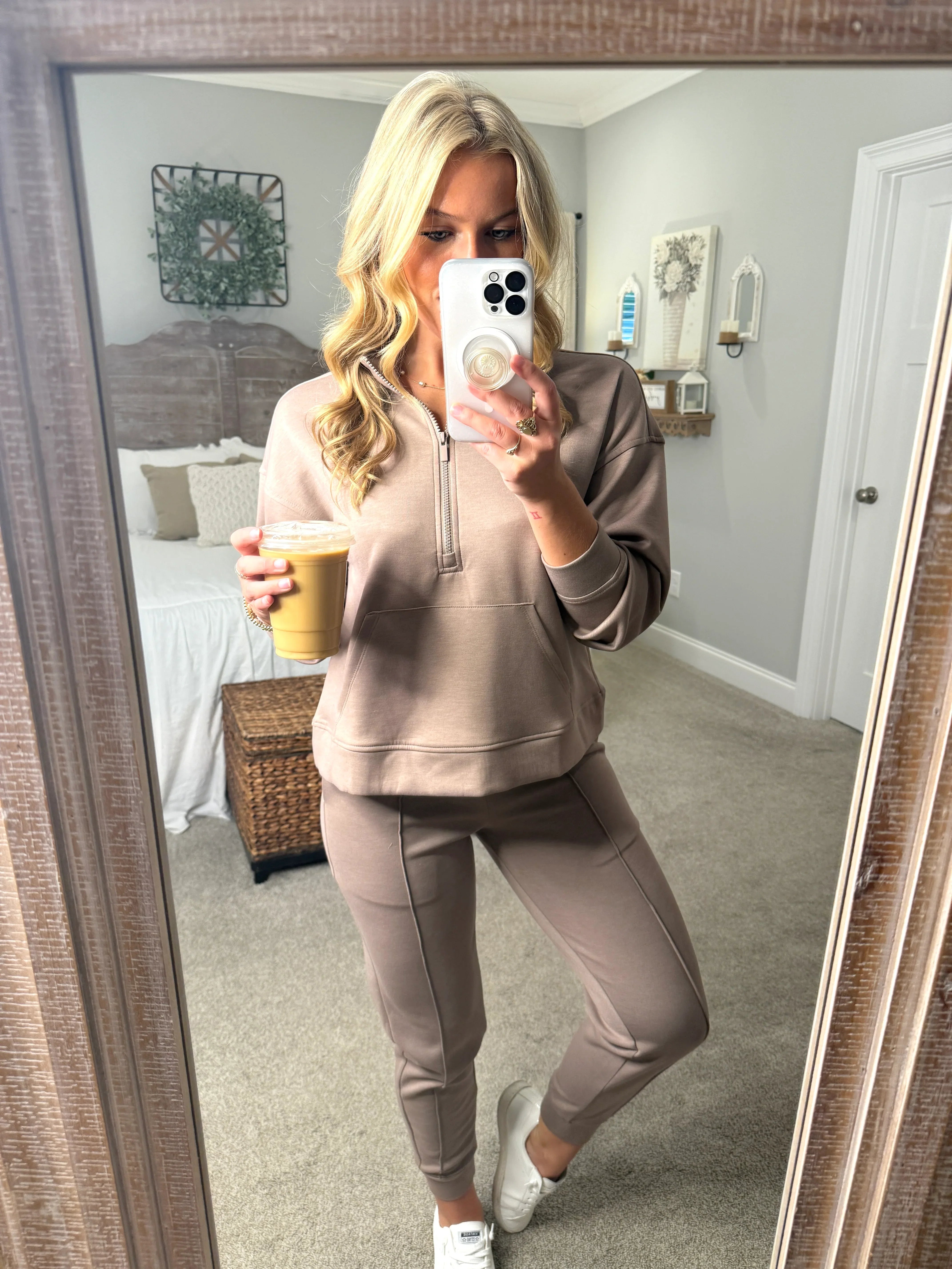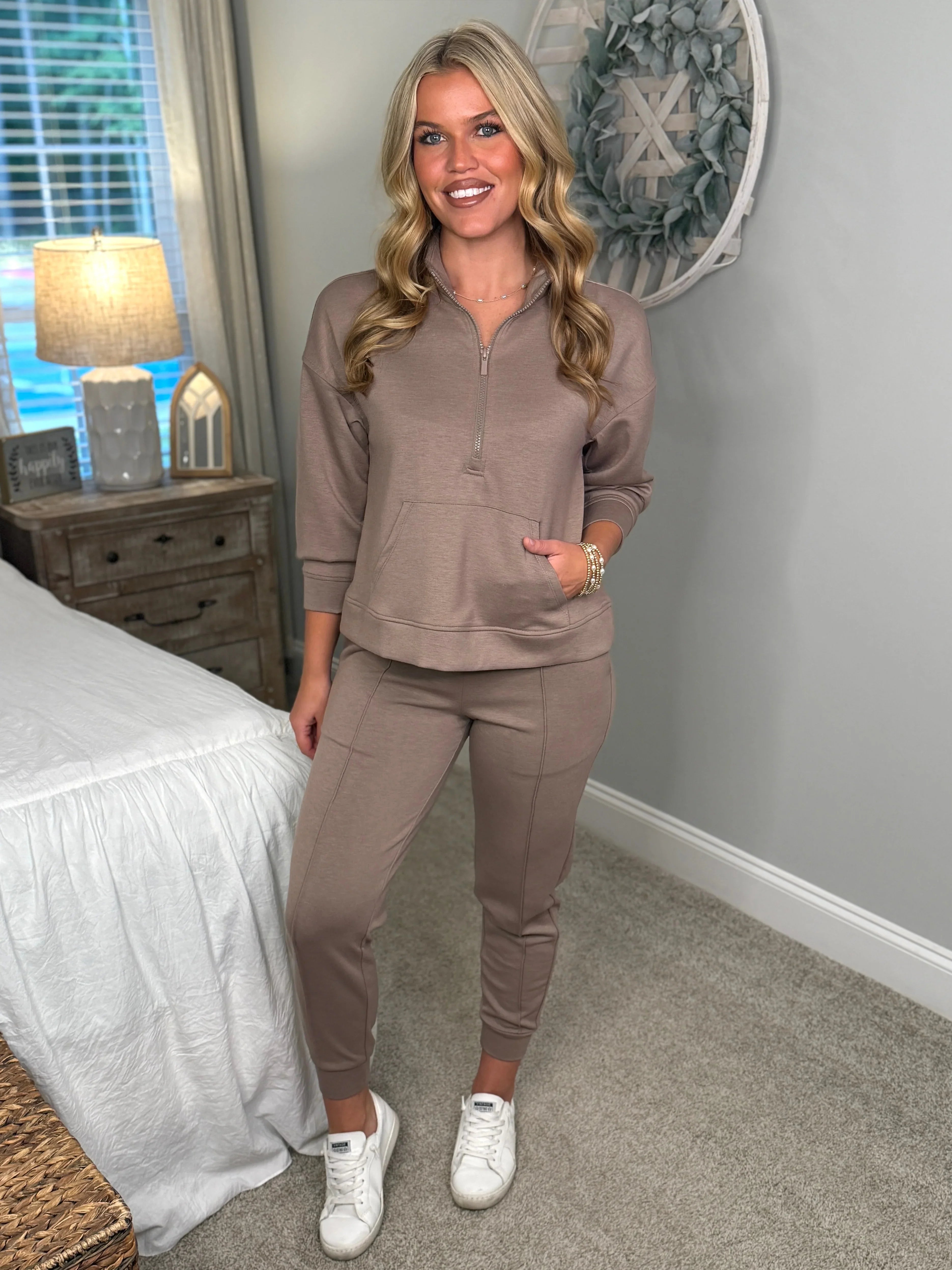 AMELIA Zip Pullover Top/Jogger Set (Taupe)