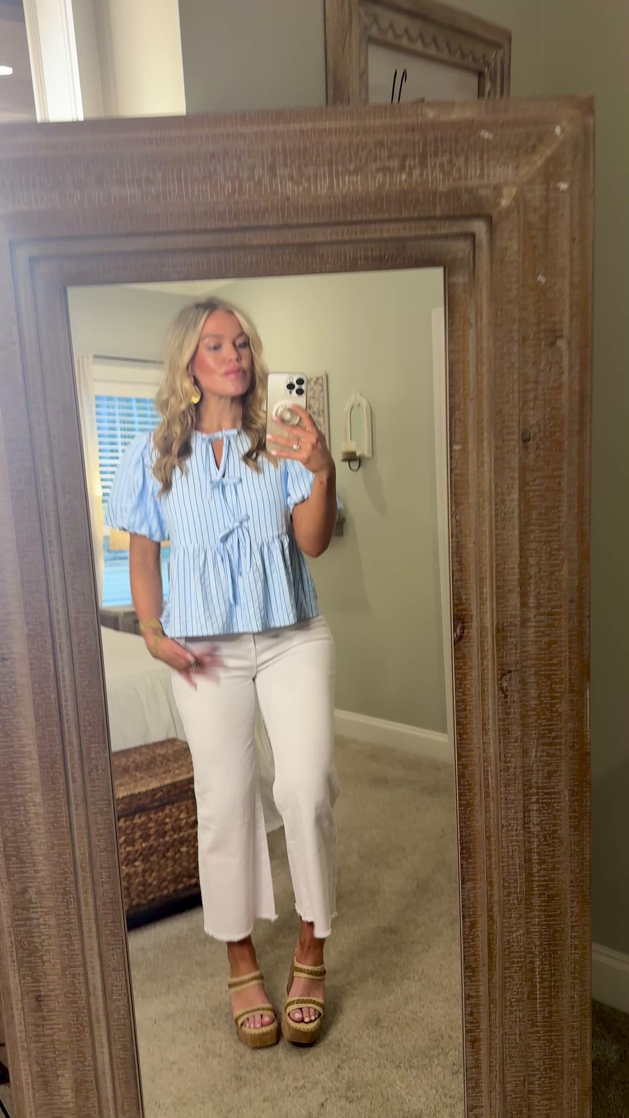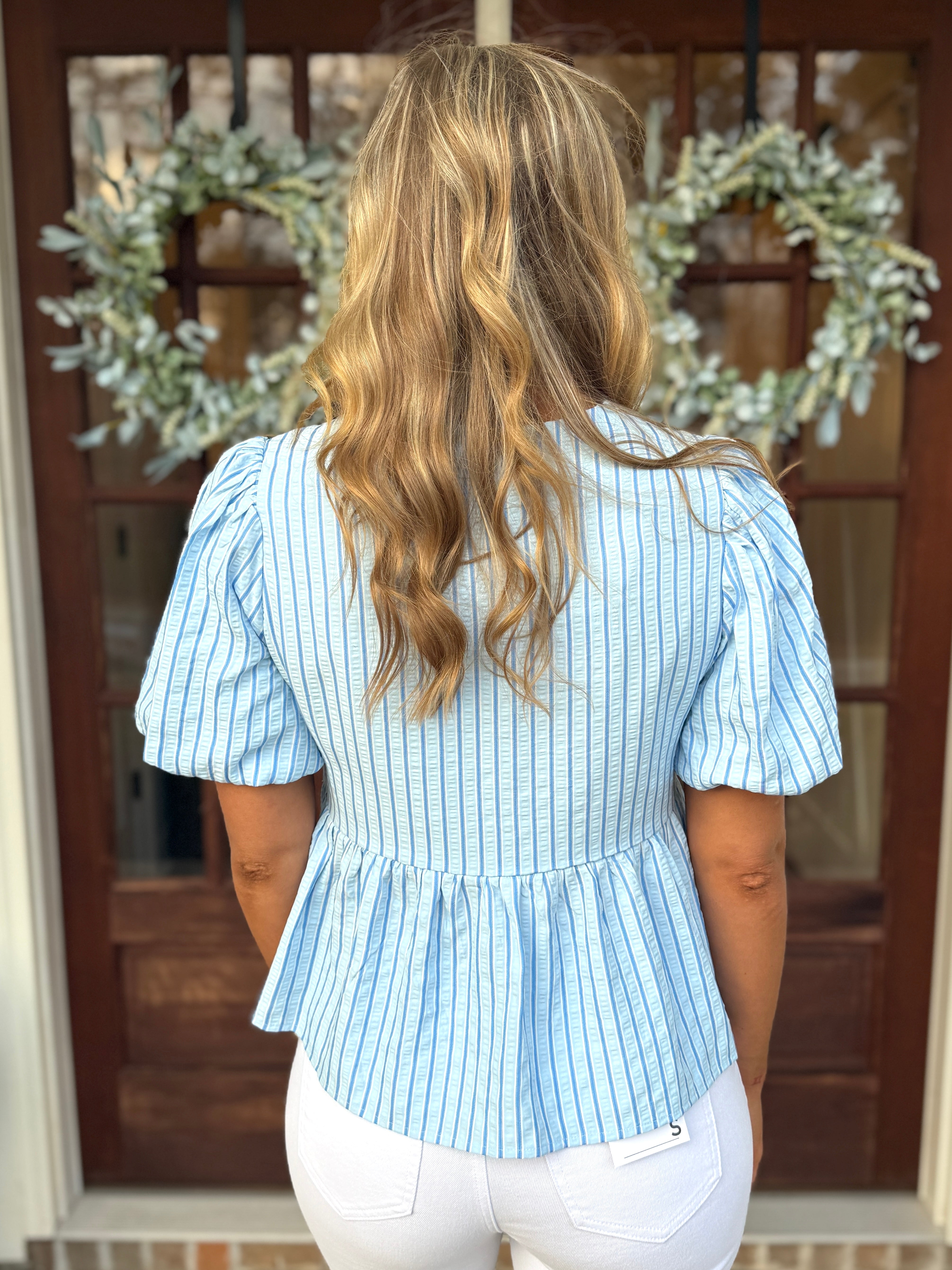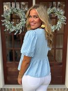 BLAKELY Light Blue Striped Bow Top