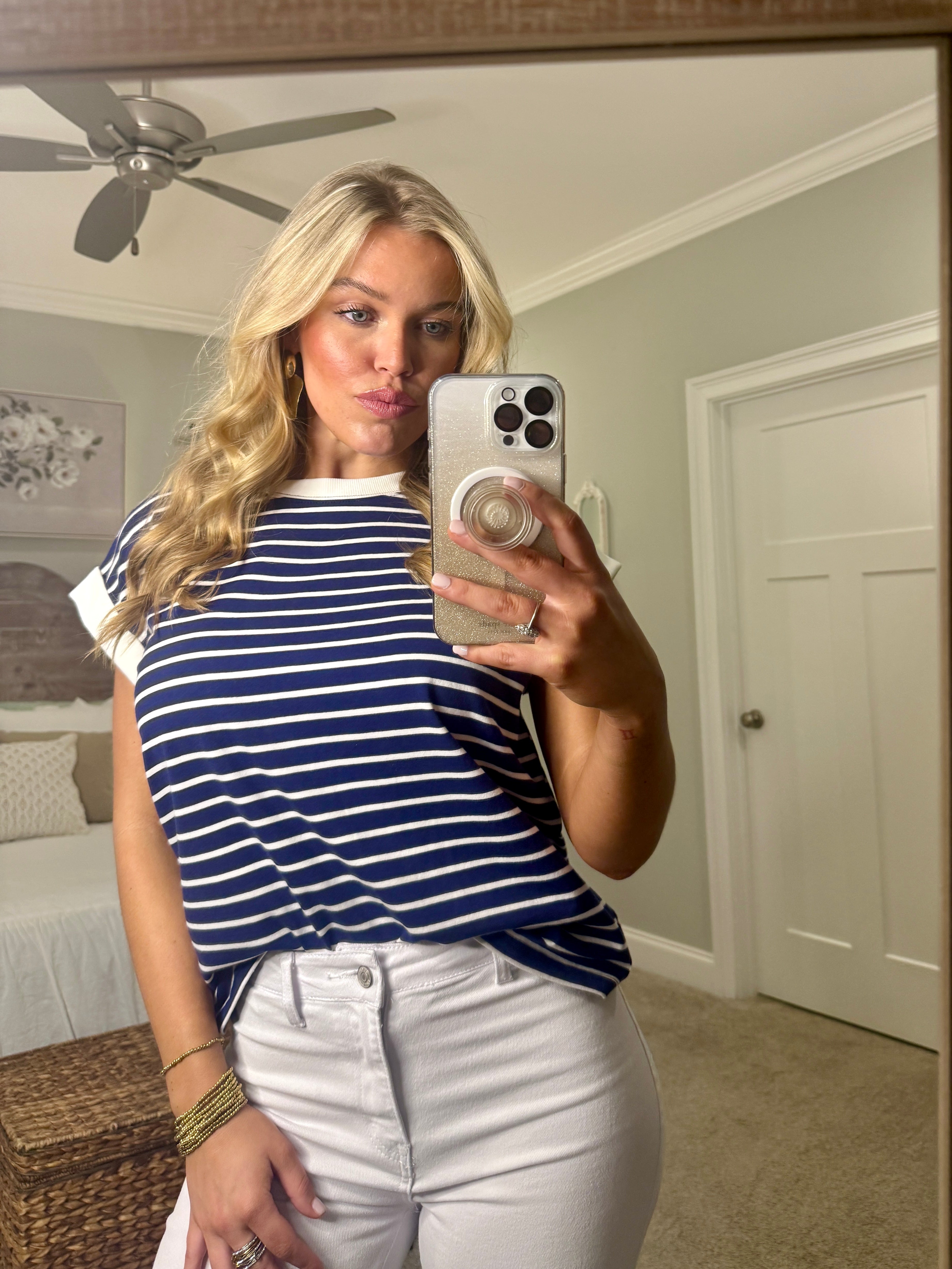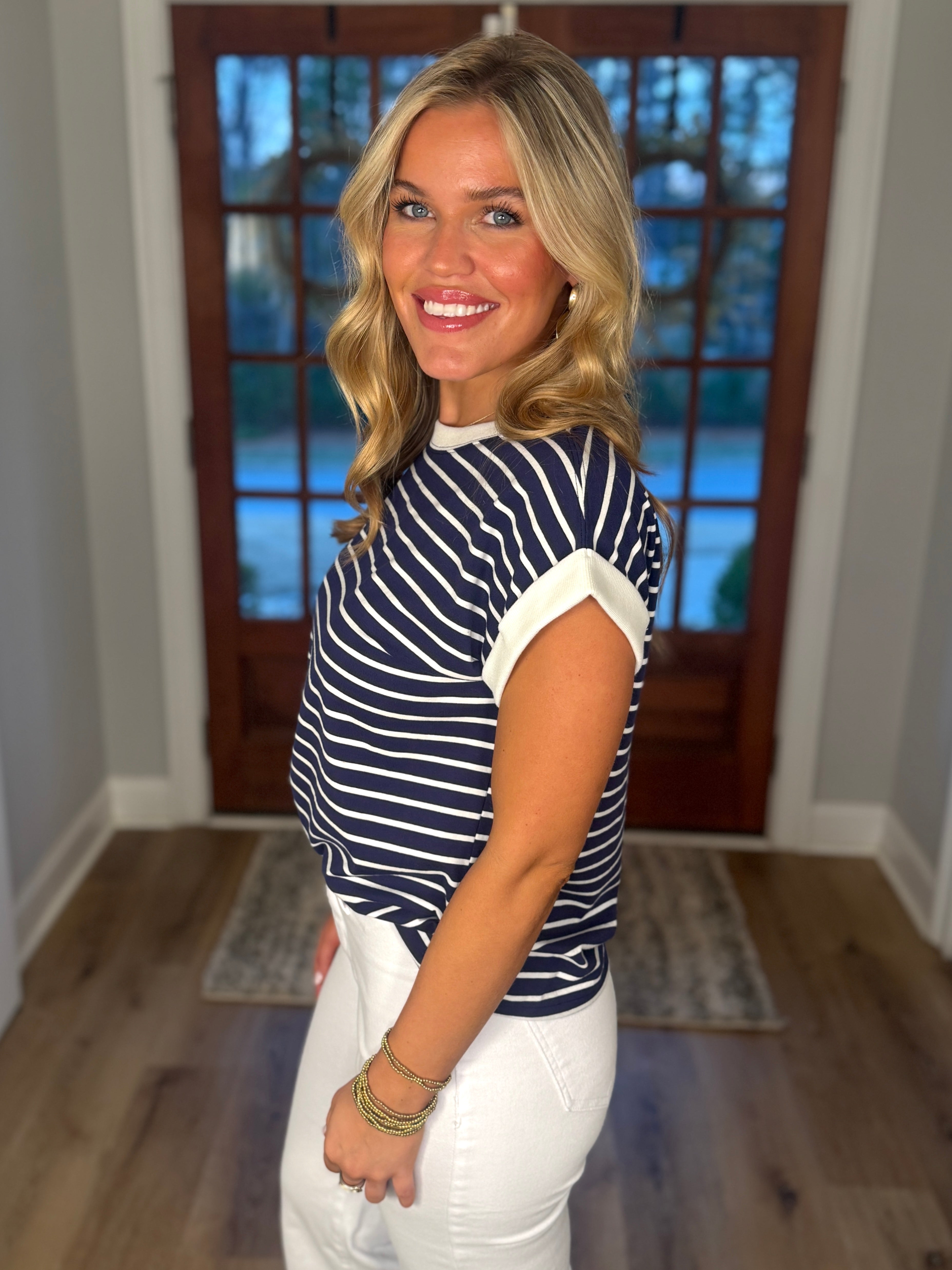BRIANNA Navy Blue Striped Top