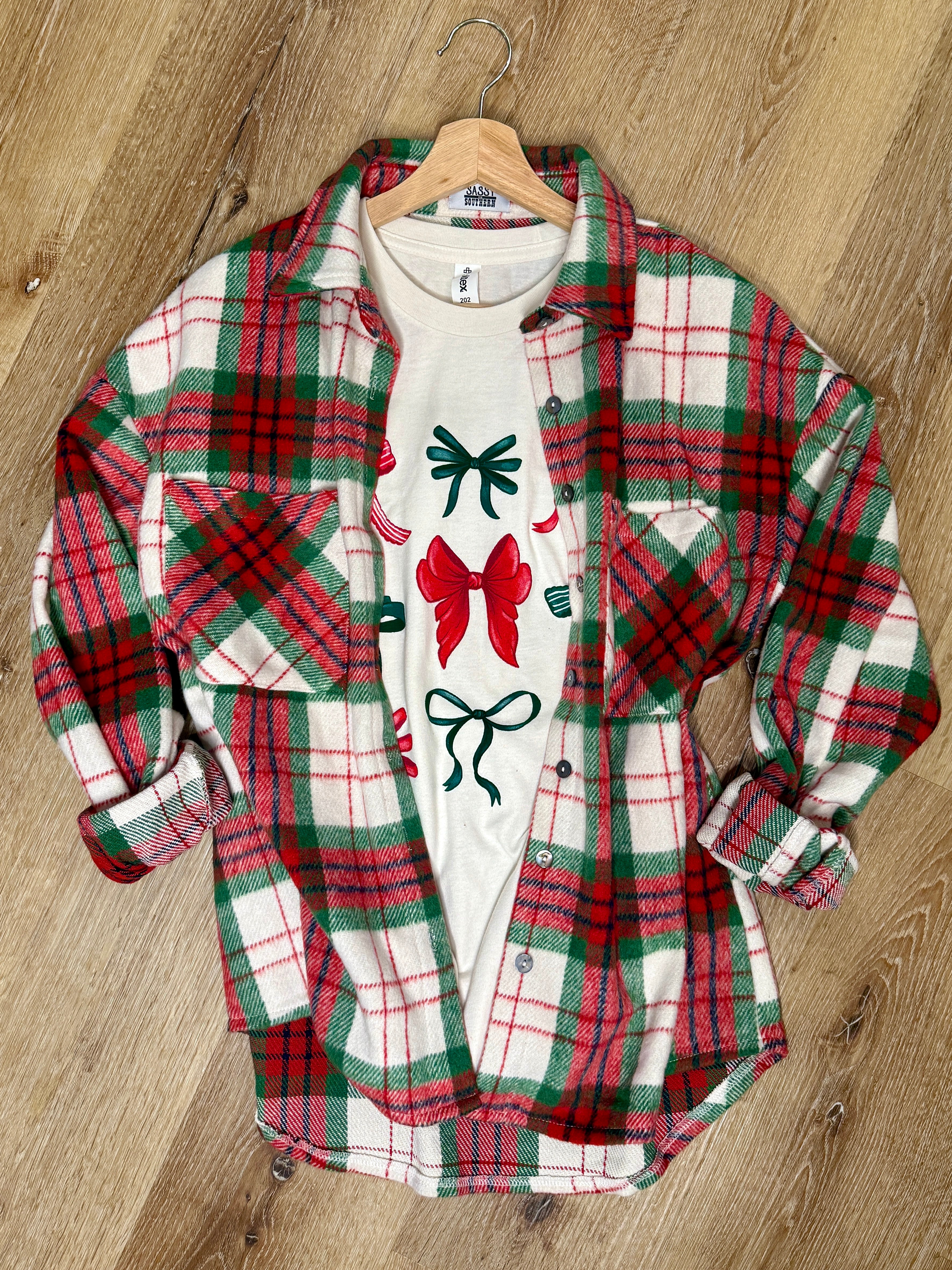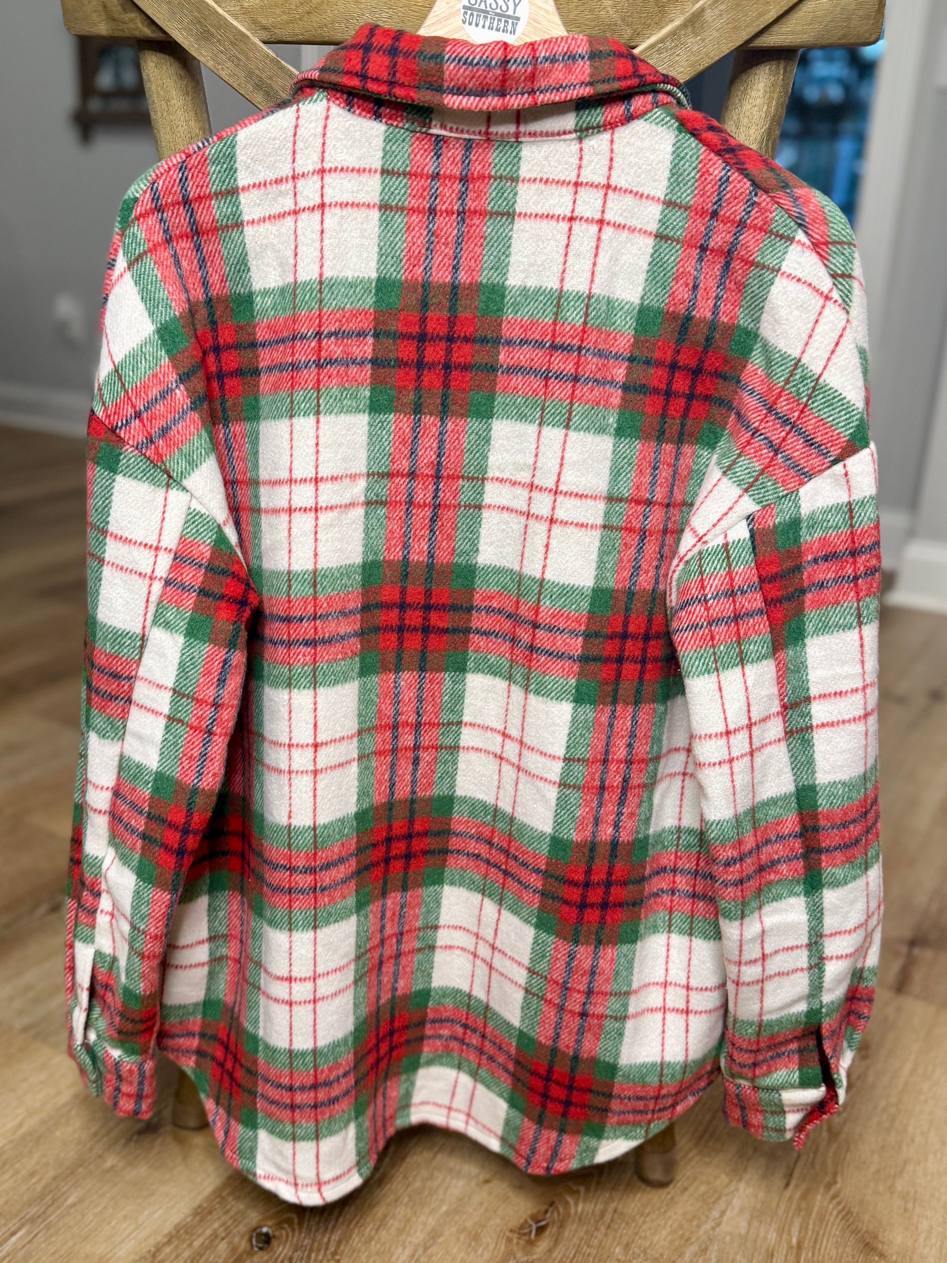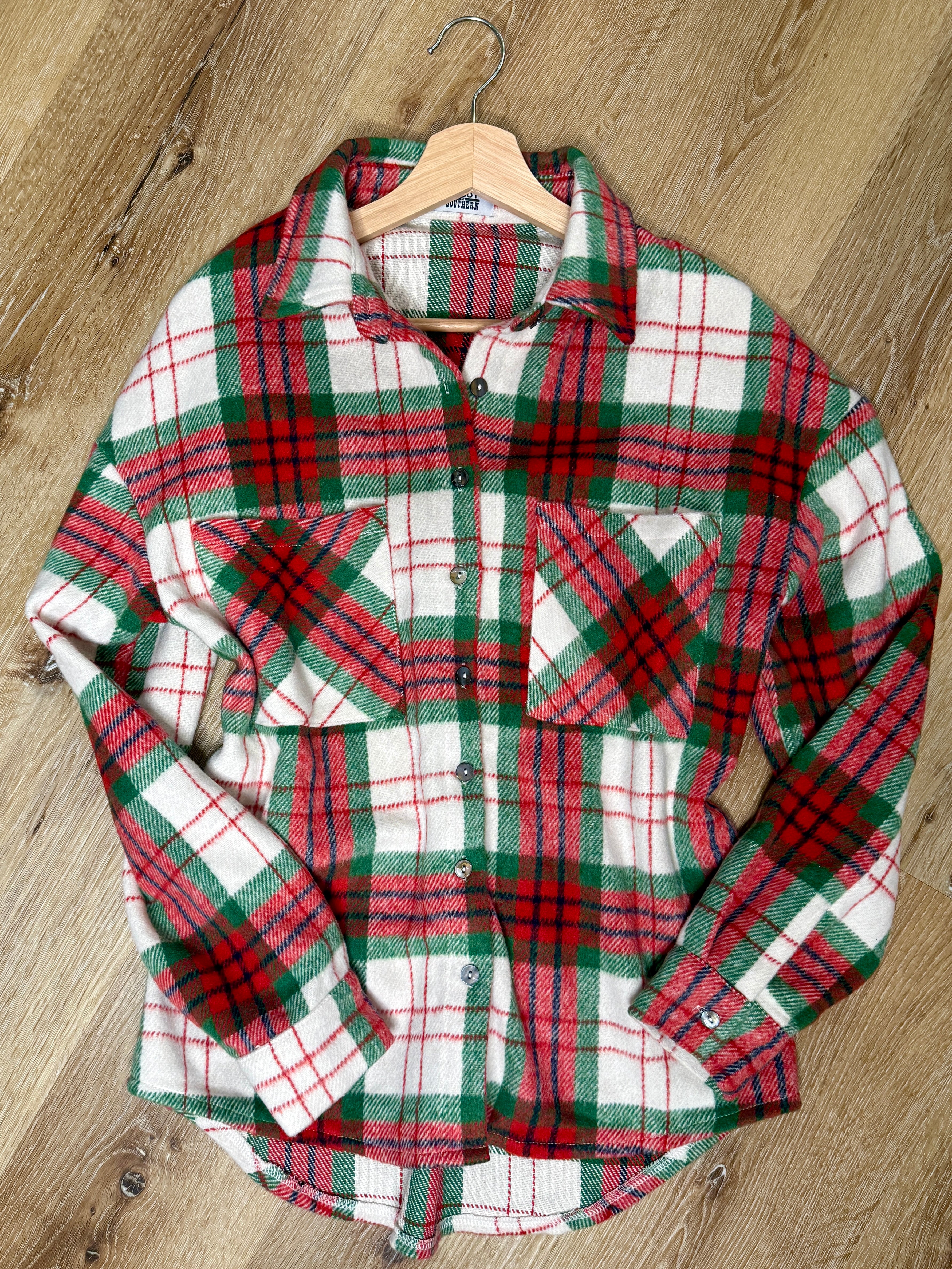 HOLLY Red/Green Plaid Fleece Shacket/Jacket