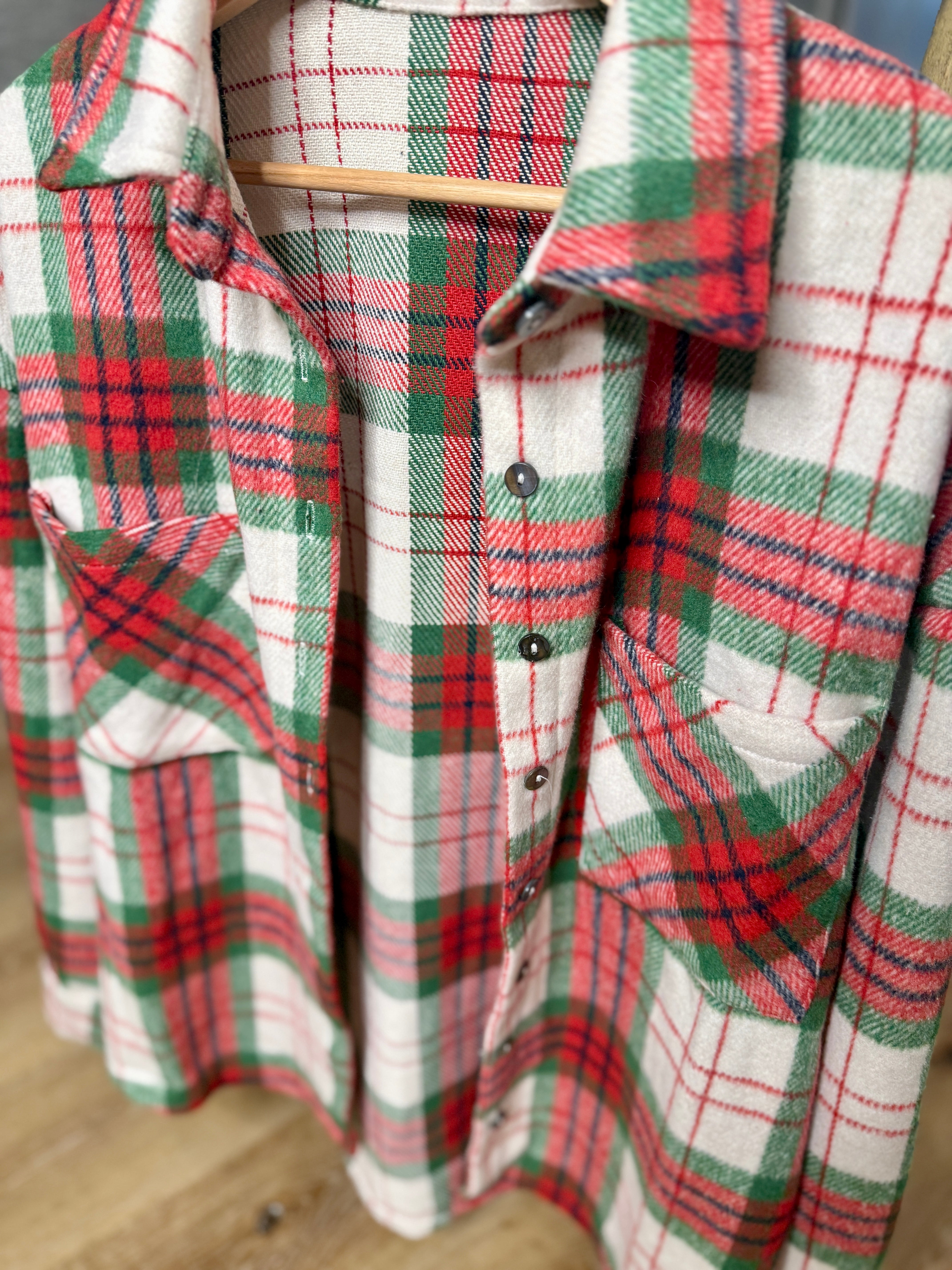 Layer up in style with this cozy red and green plaid fleece shacket—the perfect piece for those chilly days when you can't decide between a shirt and a jacket. Rock it buttoned up as a standalone statement, or throw it over your favorite top for extra warmth and that effortlessly put-together vibe. The soft fleece keeps you comfortable while the classic plaid pattern adds that timeless charm. Whether you're running errands or hanging with friends, this versatile shacket is about to become your new go-to.