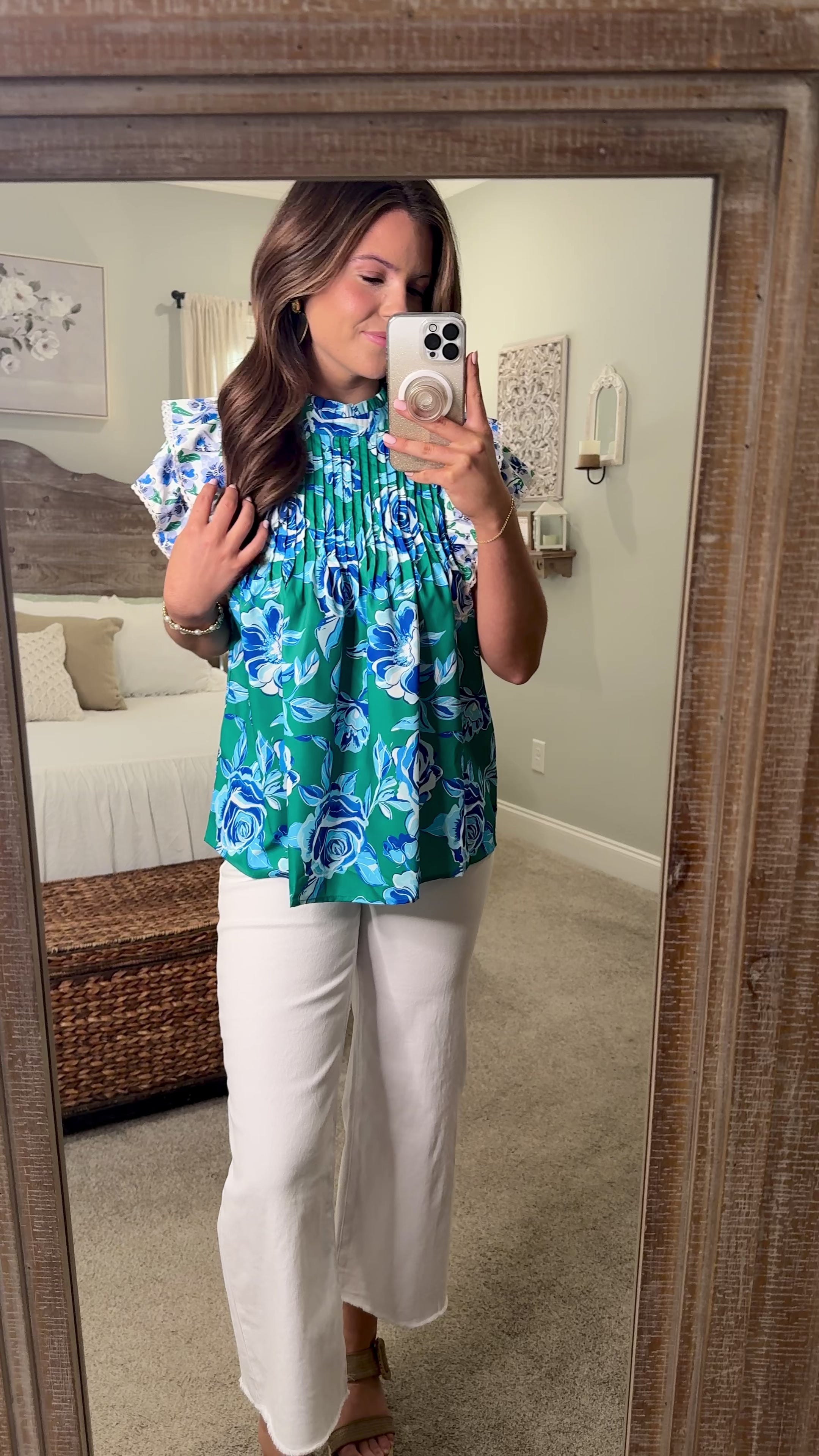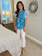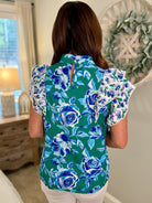 Elevate your wardrobe with the REMI Mixed Green/Blue Floral Print Top! Adorned with vibrant floral patterns and playful ruffle sleeves, this top is perfect for making a statement. Embrace the beauty of nature in your style, and let each wear inspire confidence and joy!