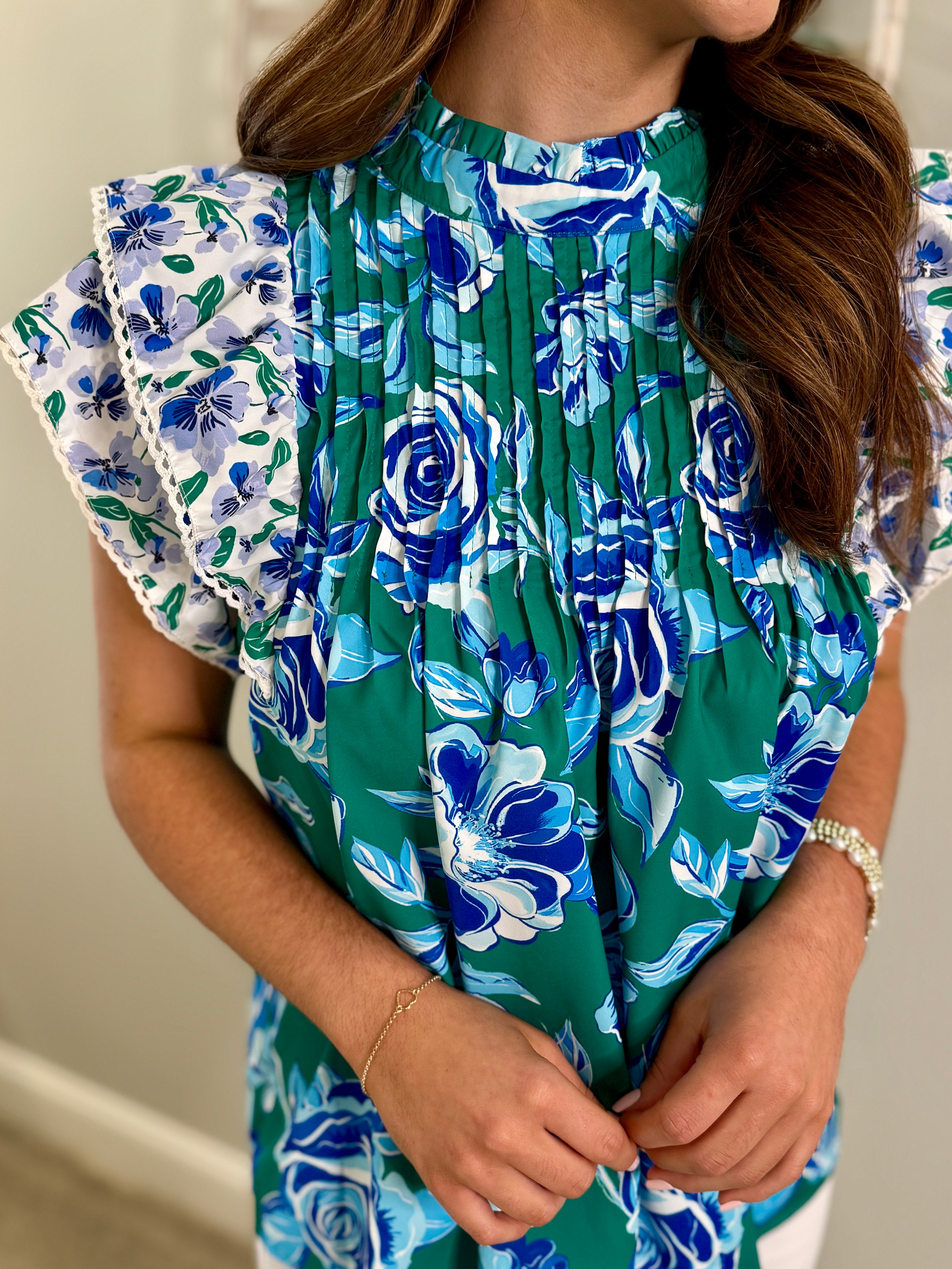 REMI Mixed Green/Blue Floral Print Top
