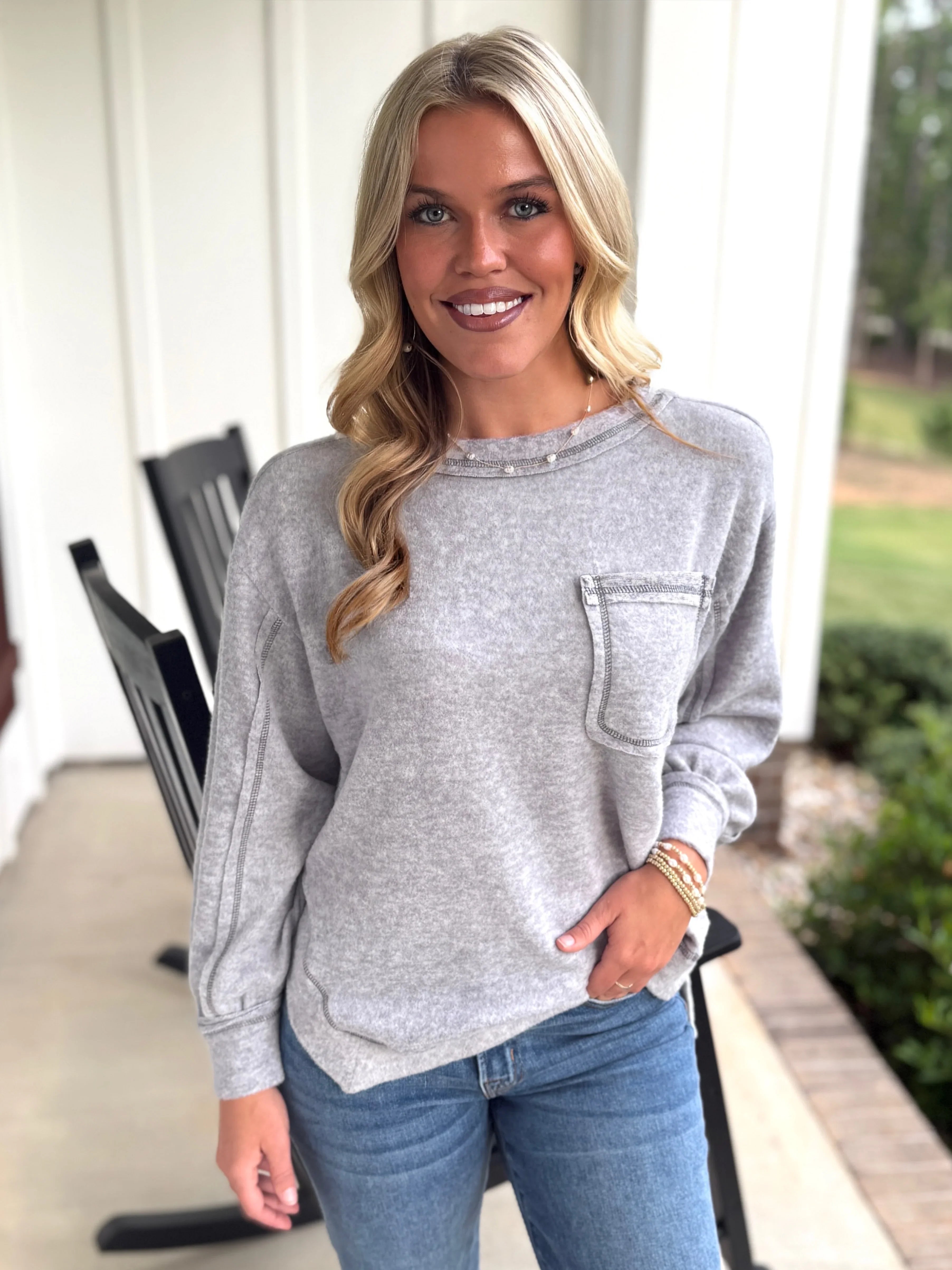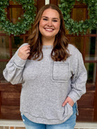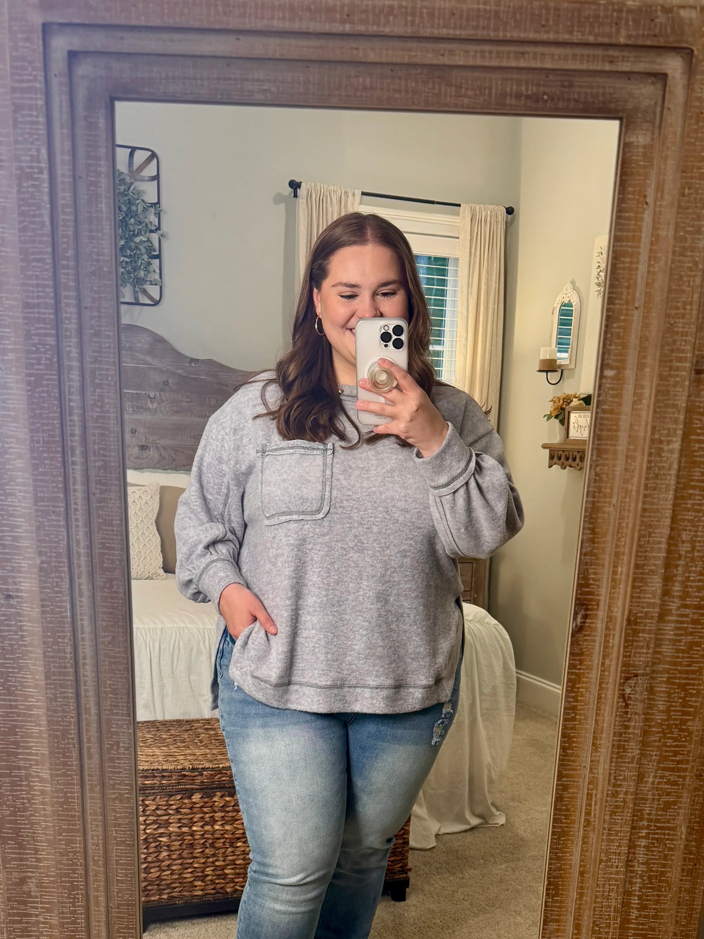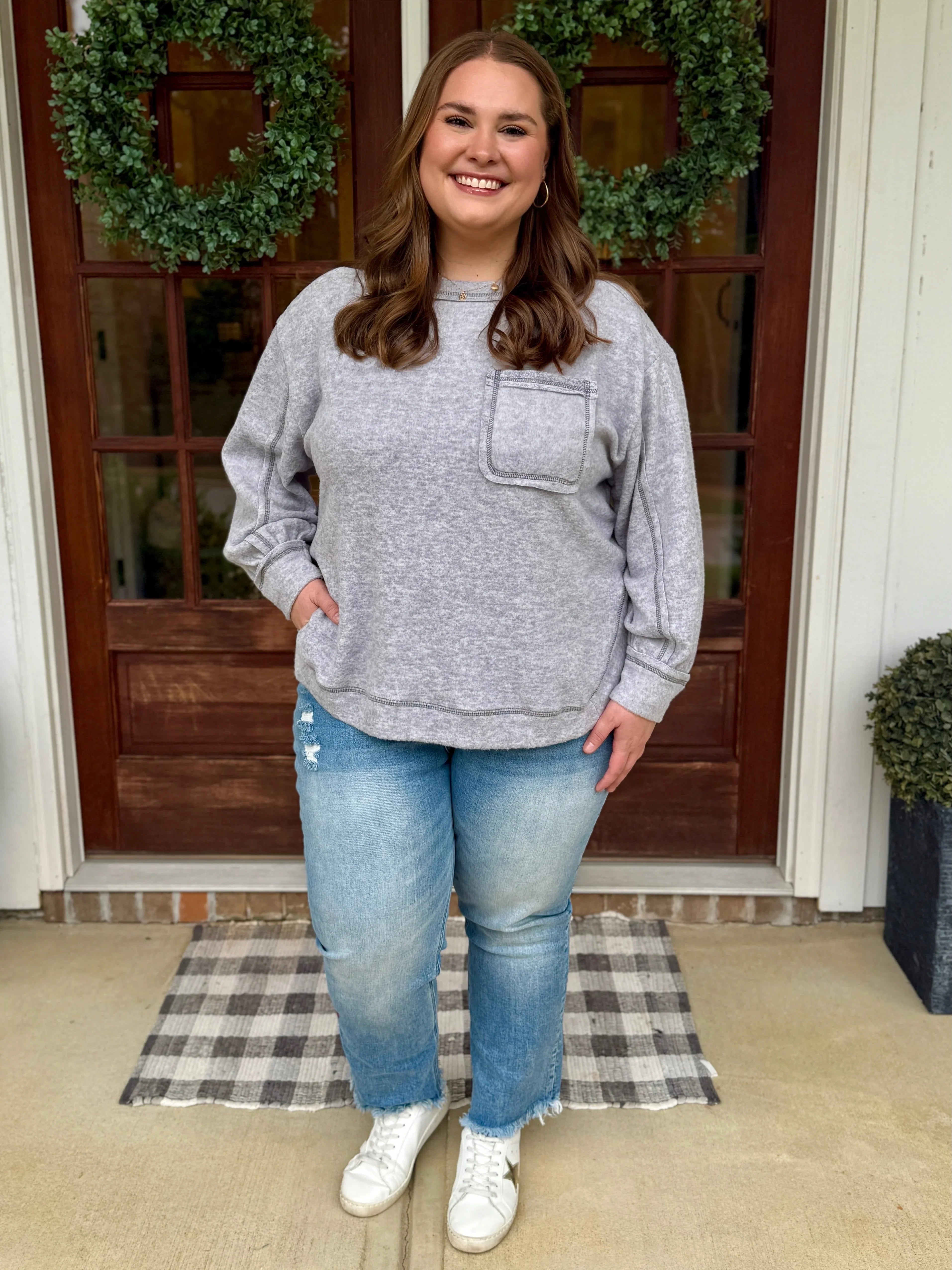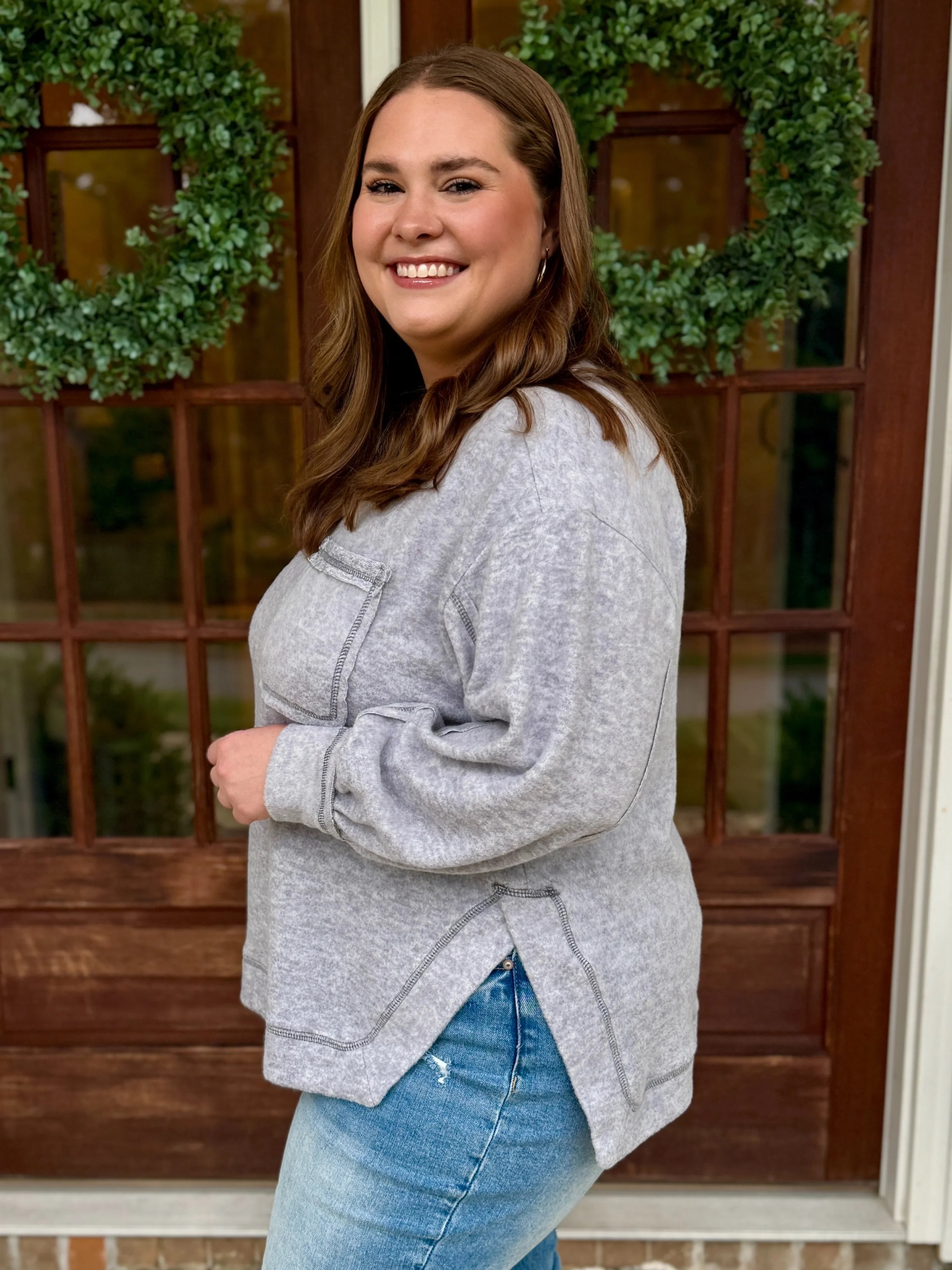 LAYLA Side Slit Pocket Brushed Sweater Top (Grey) (S-3X)