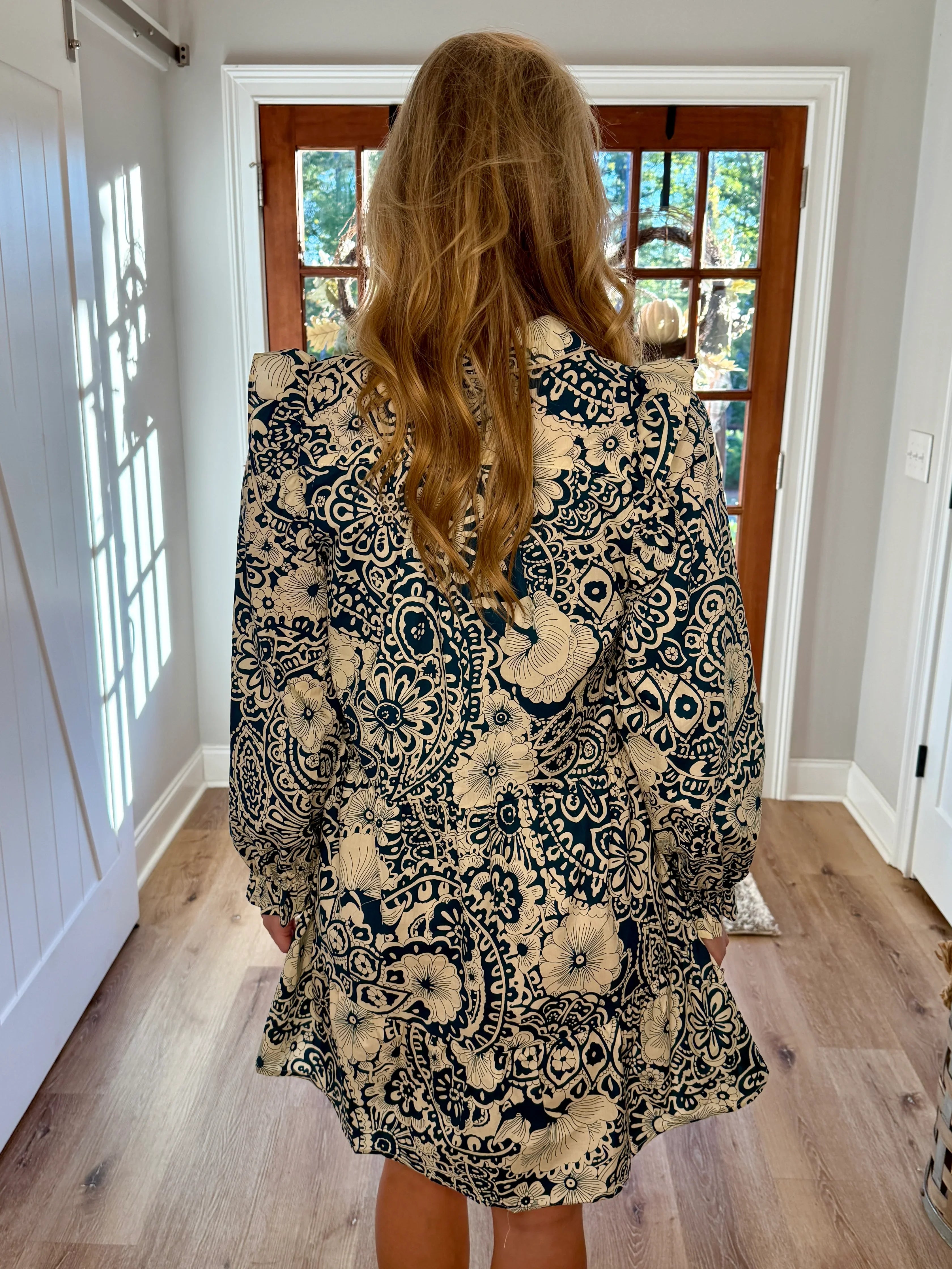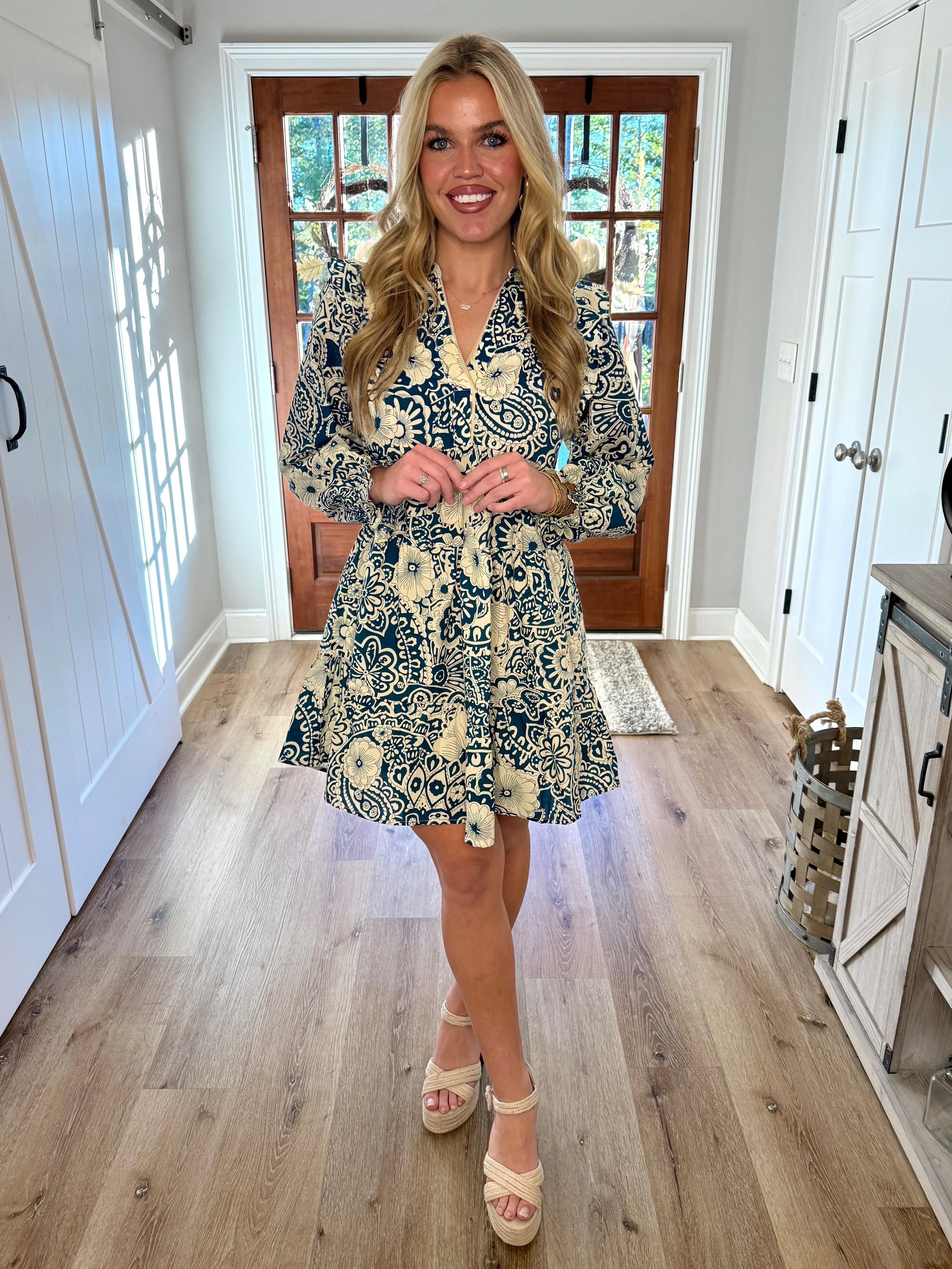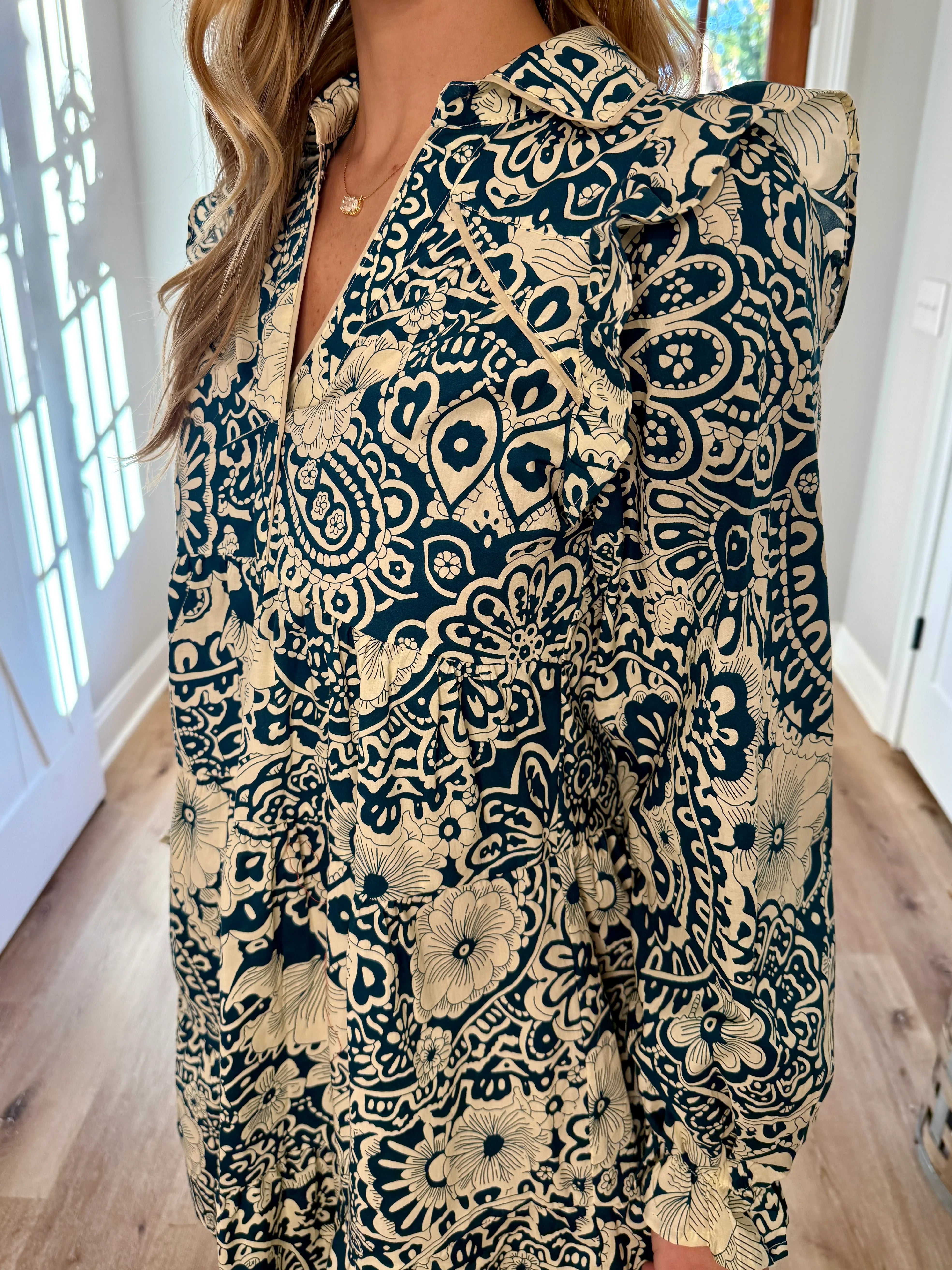 PAISLEY Mixed Print Ruffle Dress (Peacock)