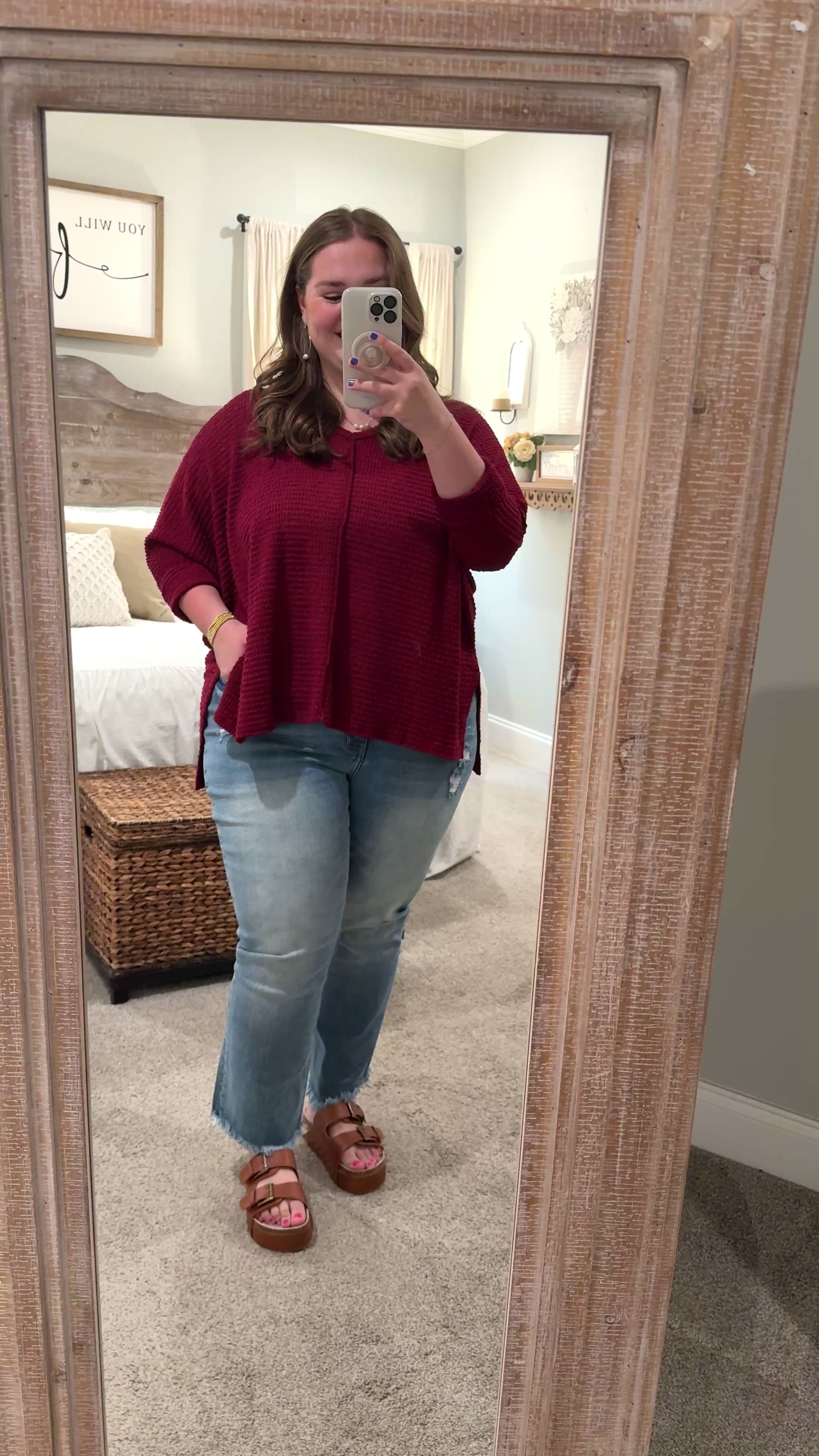 MIA Plus Size 3/4 Sleeve Lightweight Sweater (Burgundy)