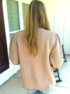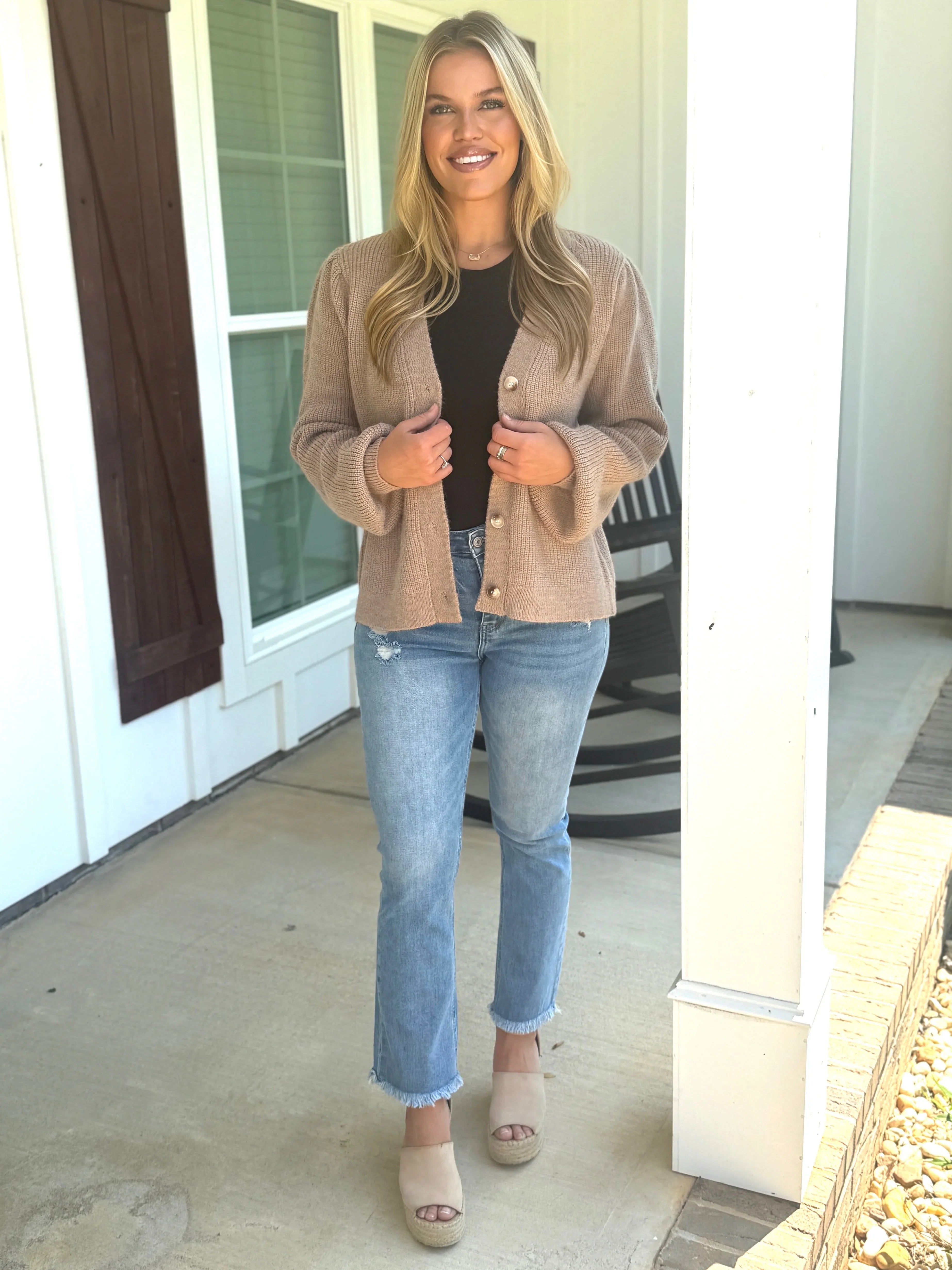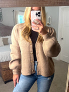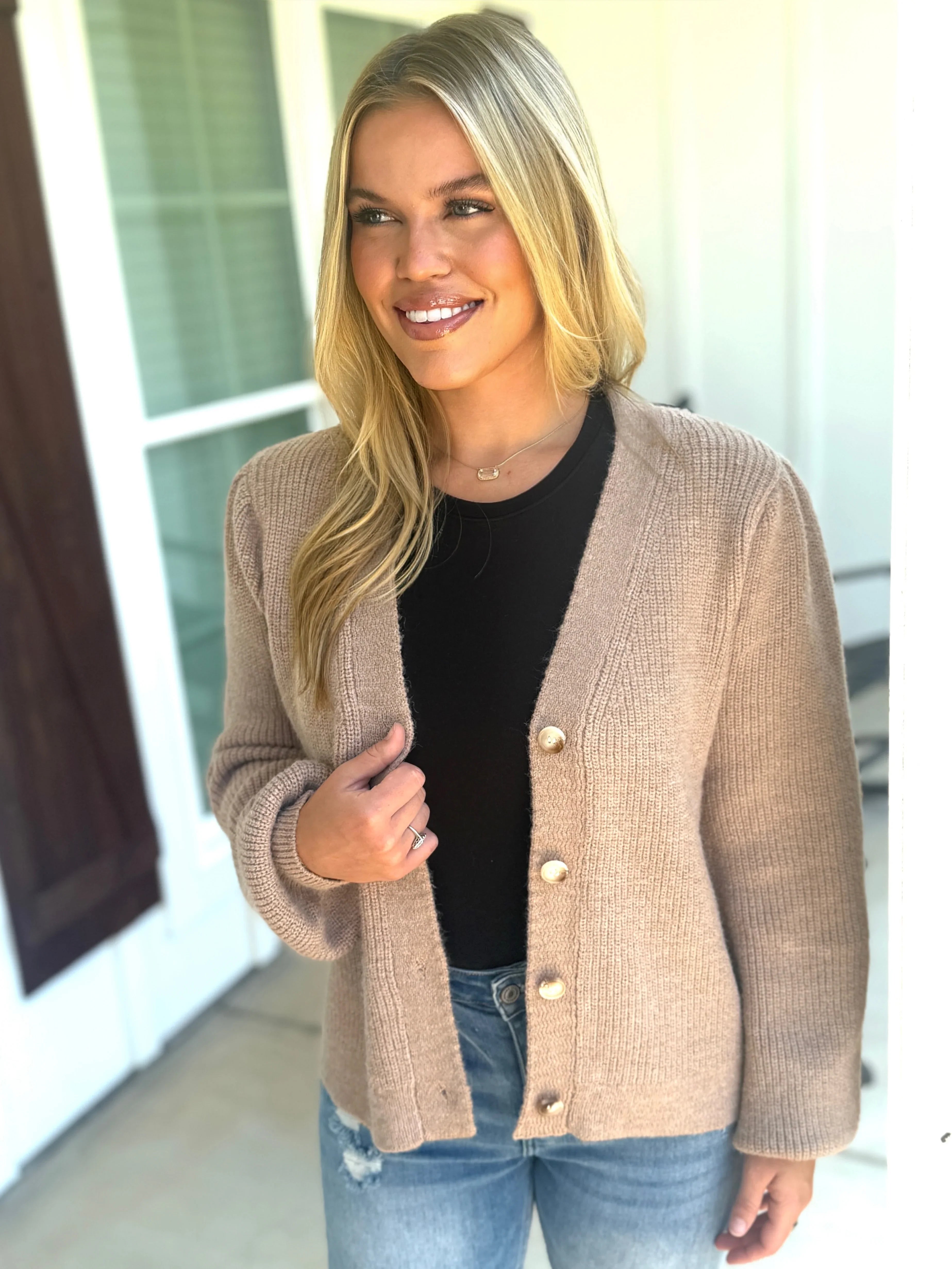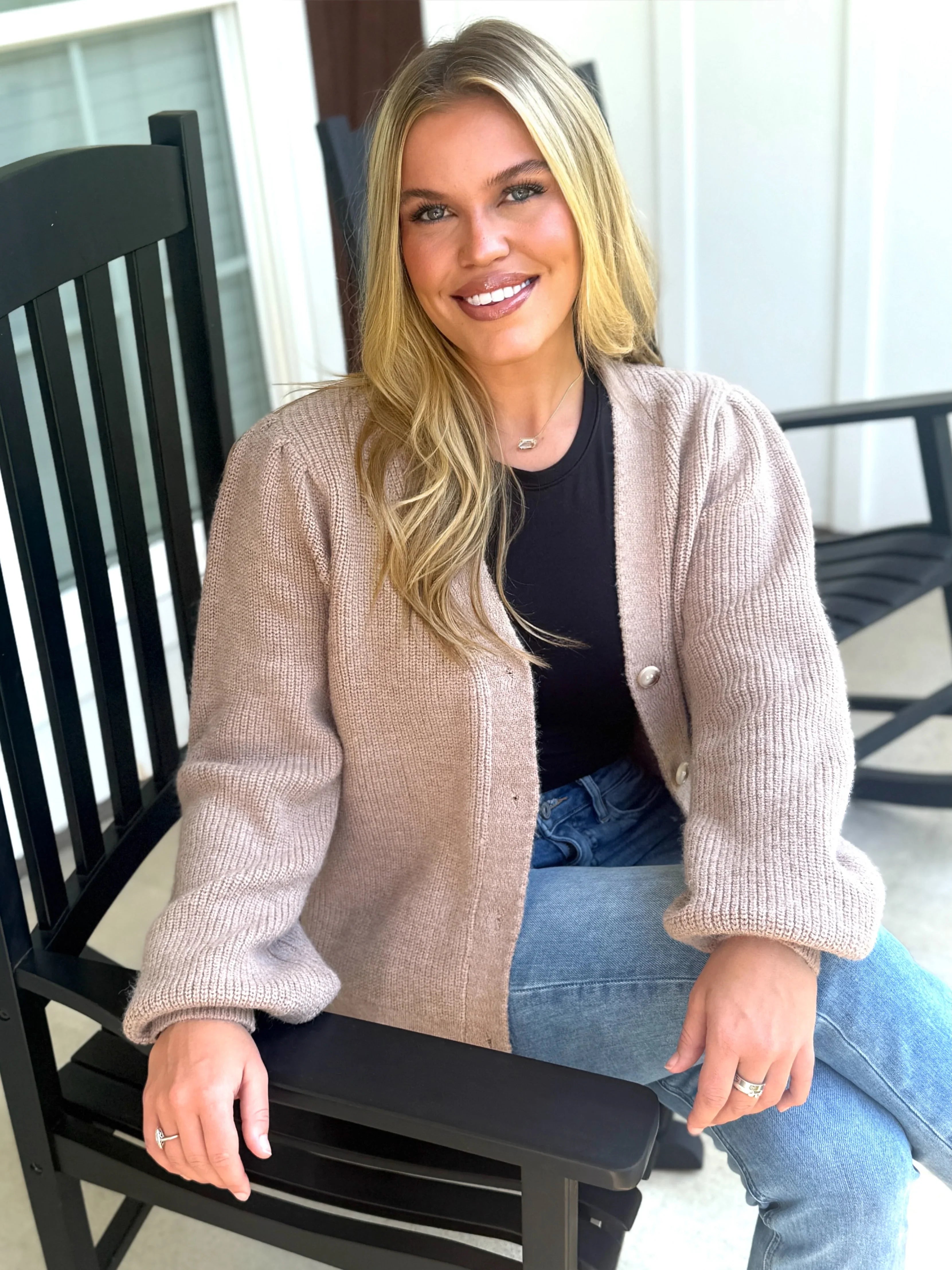 PALMER Puffy Sleeve Taupe Cardigan Sweater